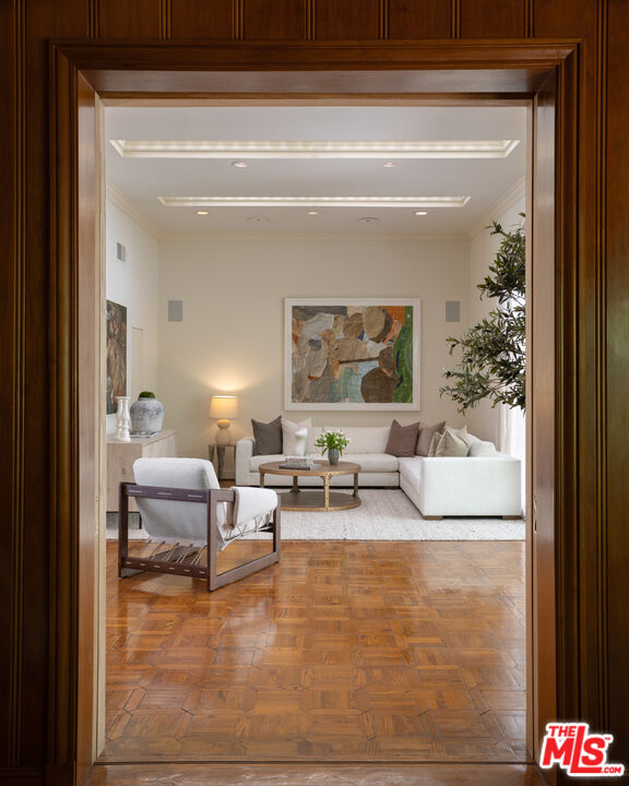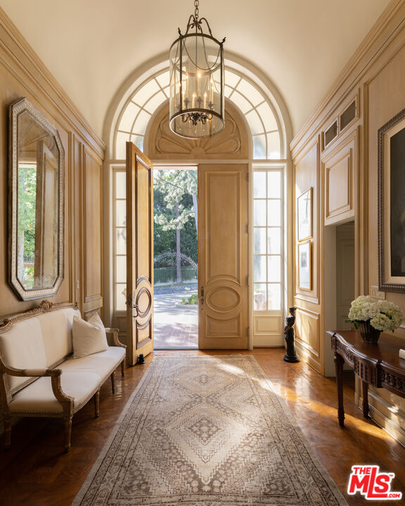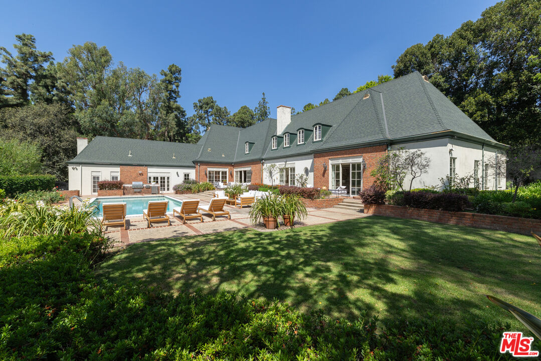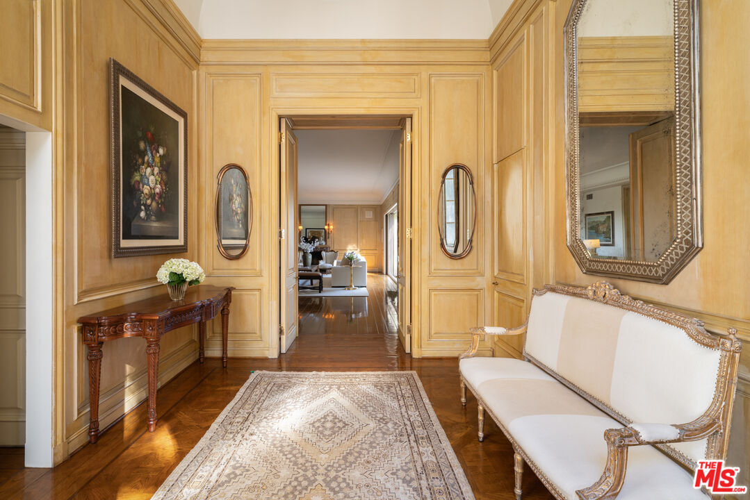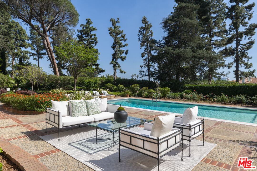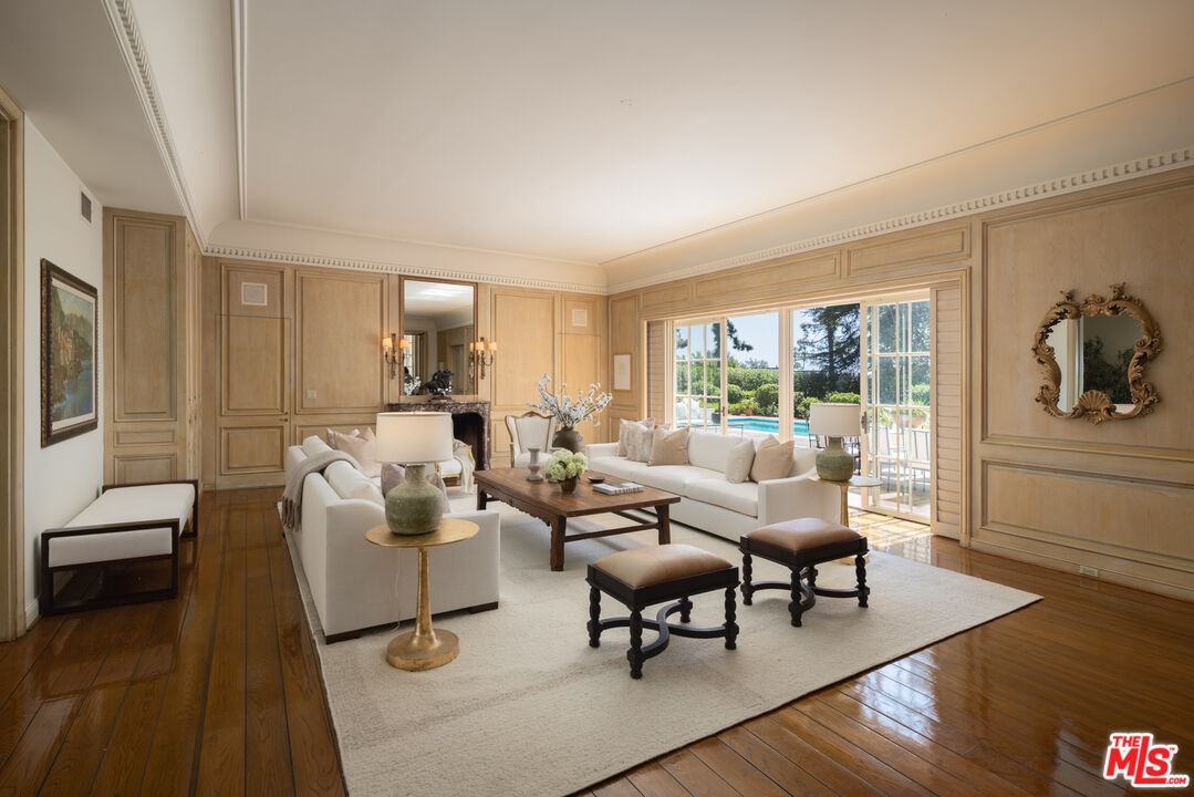 First time available in 50+ years, exceptional estate one block from Beverly Hills Hotel. Sited on 37,766 sq ft corner lot, this Regency Gem offers soaring high ceilings and is spectacular in scale. Excellent for entertaining, all public rooms open to the gardens beyond. A wood paneled library and sun lit den compliment the grand living room. Primary suite offers sitting area, two large walk-in closets and marble bath. Two additional guest bedrooms with baths en-suite and two staff bedrooms complete this rare offering. Gated motor court with ample off-street parking, vast lawns and sun-drenched pool area. Ready for the next chapter, this estate is one of the finest locations in Beverly Hills. Shown only to prequalified buyers.