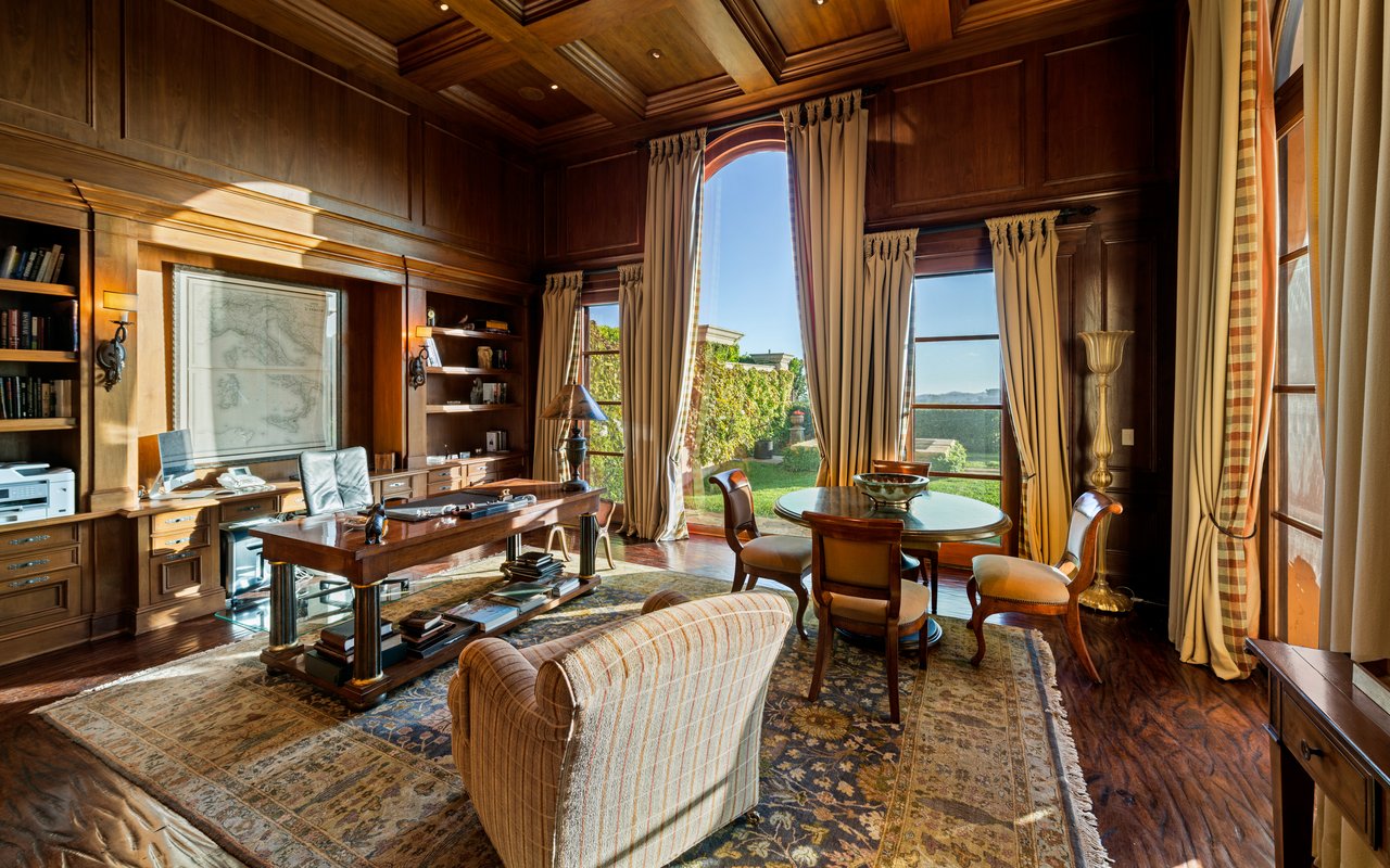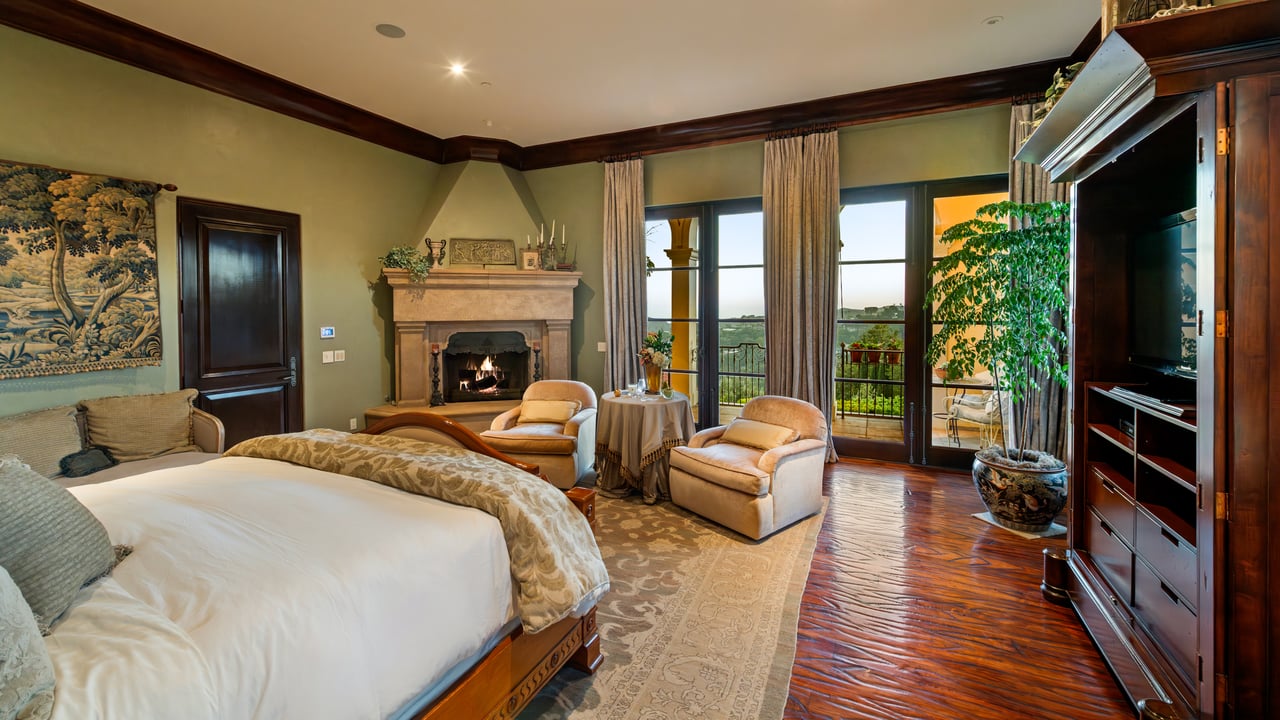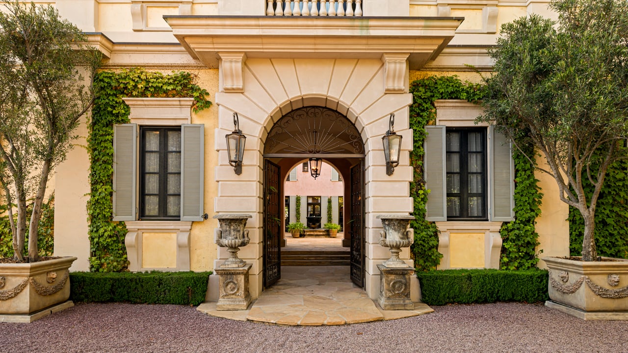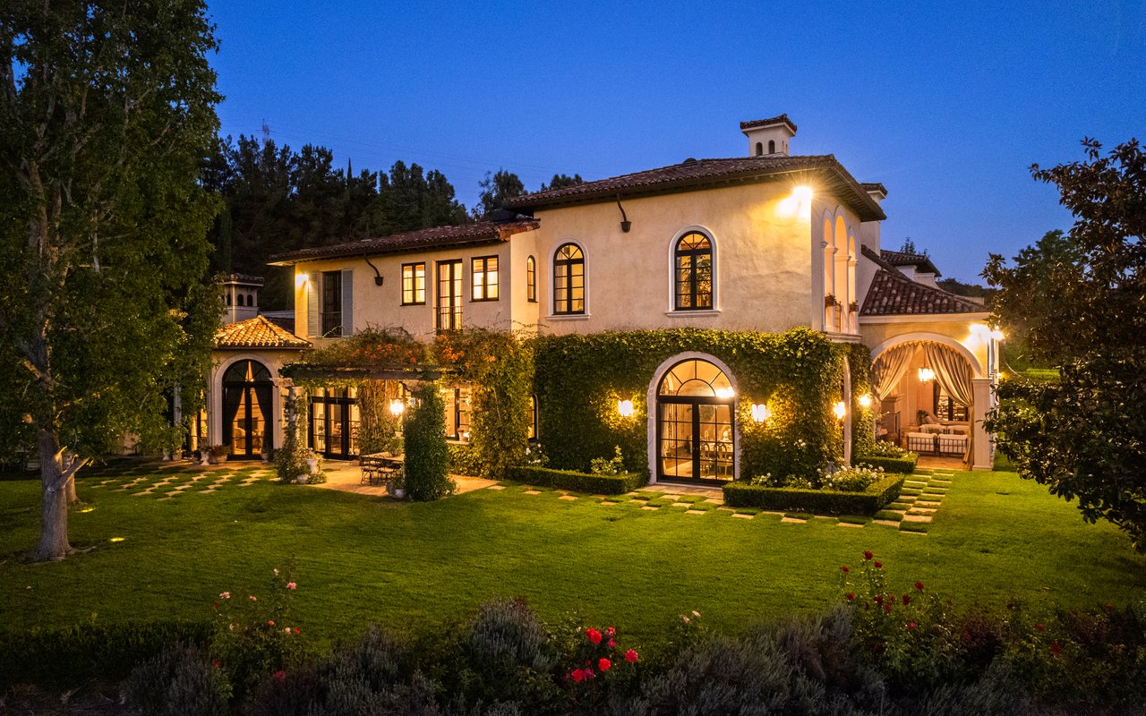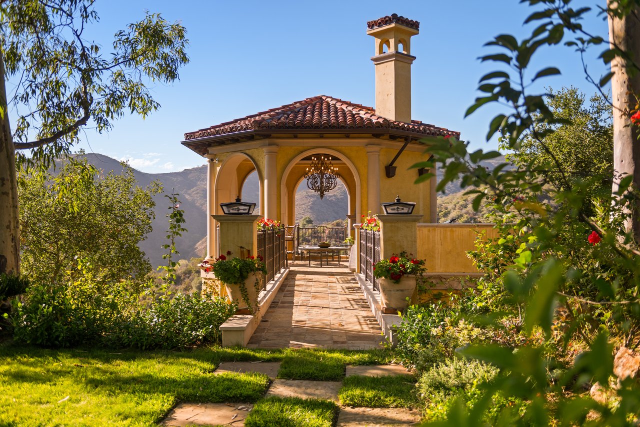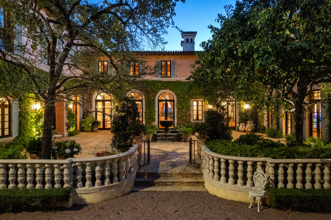 Set within the ultra-exclusive enclave of Brentwood Country Estates, a guard-gated community of just thirteen residences celebrated for 24/7 security, privacy, and sweeping vistas, this remarkable estate evokes the timeless romance of a European chateau. Encompassing approximately 9,400 square feet of living space on an expansive 6.13 acre lot, the property offers a rare combination of seclusion, scale, and architectural elegance. A private gate opens to a stately gravel motor court, instantly transporting you to the Tuscan countryside. Beyond an arched entry, a central courtyard unfolds, where vined walls, manicured gardens, a serene fountain, and flagstone pathways create an atmosphere of refined tranquility. Inside, the residence reveals exceptional craftsmanship throughout, featuring intricate marble floors, soaring ceilings, and the classic proportions of a true European manor. A dramatic two-story formal living room with stone fireplace and coffered, beamed ceilings flows seamlessly into an elegant formal dining room. The chef's country kitchen is anchored by a substantial center island, professional-grade appliances, and opens to both a charming breakfast room and an inviting family room with fireplace. A richly appointed wood-paneled office and library, two powder rooms, a guest suite, a generous playroom or bonus room, and a large, dedicated storage space thoughtfully positioned between levels enhance the functionality of the main residence. Upstairs, the primary suite serves as a private sanctuary, offering a fireplace, walls of French doors opening to a romantic terrace, dual custom walk-in closets, and a luxurious spa-like bath. A dedicated gym and three additional en-suite bedrooms provide comfort and flexibility. The resort-quality grounds are truly exceptional, featuring expansive lawns, covered patios, a sparkling pool and spa, and a rotunda gazebo crowning the landscape. Below the gazebo, a temperature-controlled wine cellar and tasting room accommodating approximately 1,000 bottles create an intimate setting for entertaining. From nearly every vantage point, sweeping canyon and ocean views stretch endlessly, forming a breathtaking natural backdrop. A rare offering of grace, grandeur, and security, 12721 Chalon Road is a world-class European retreat nestled in the heart of Brentwood.