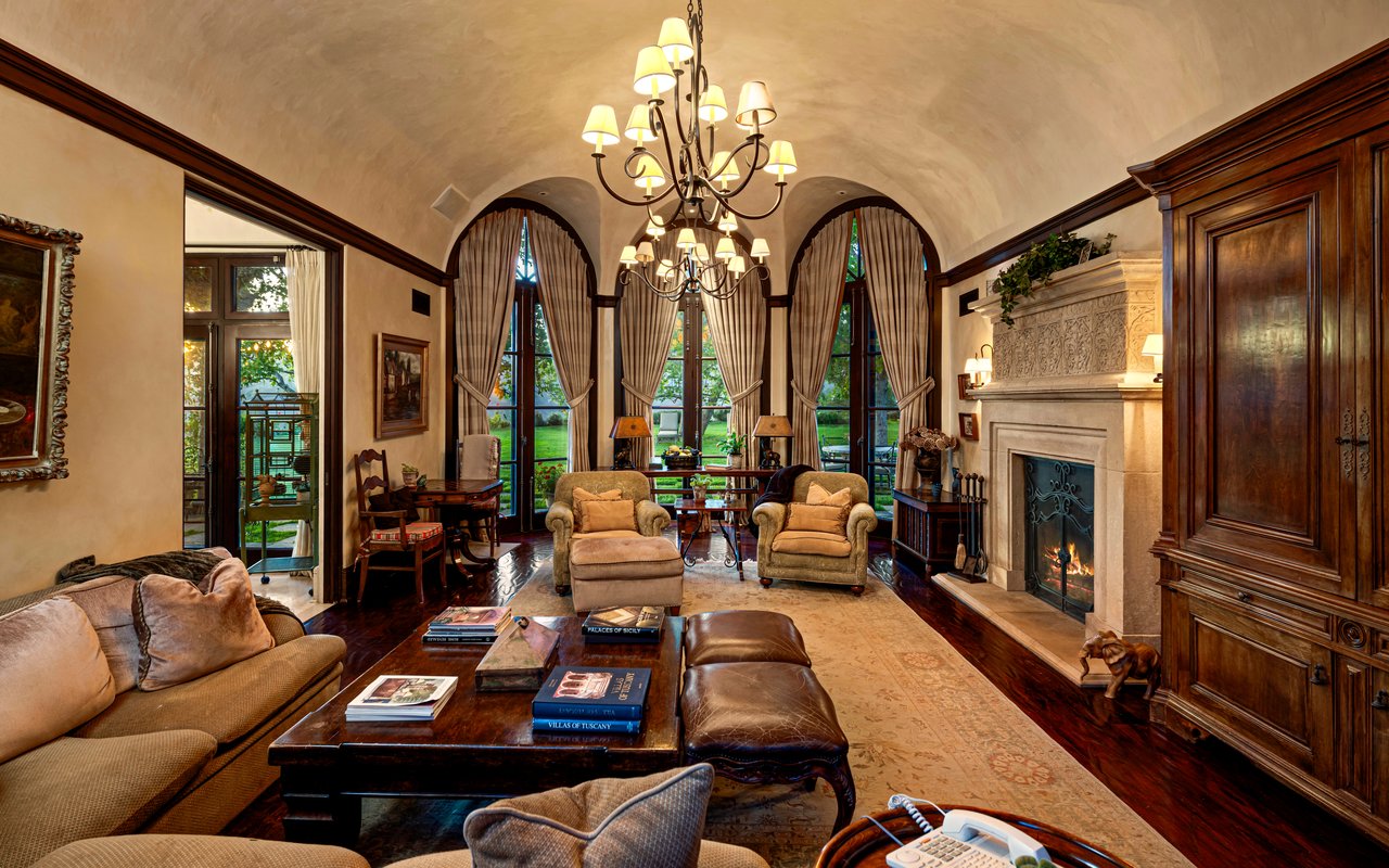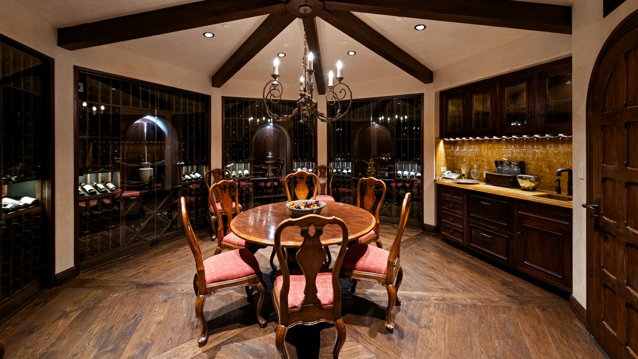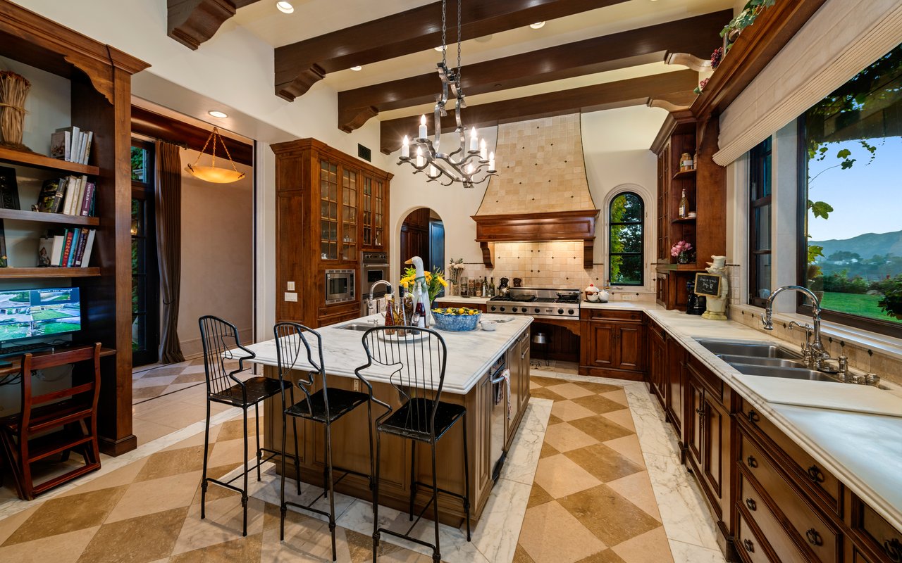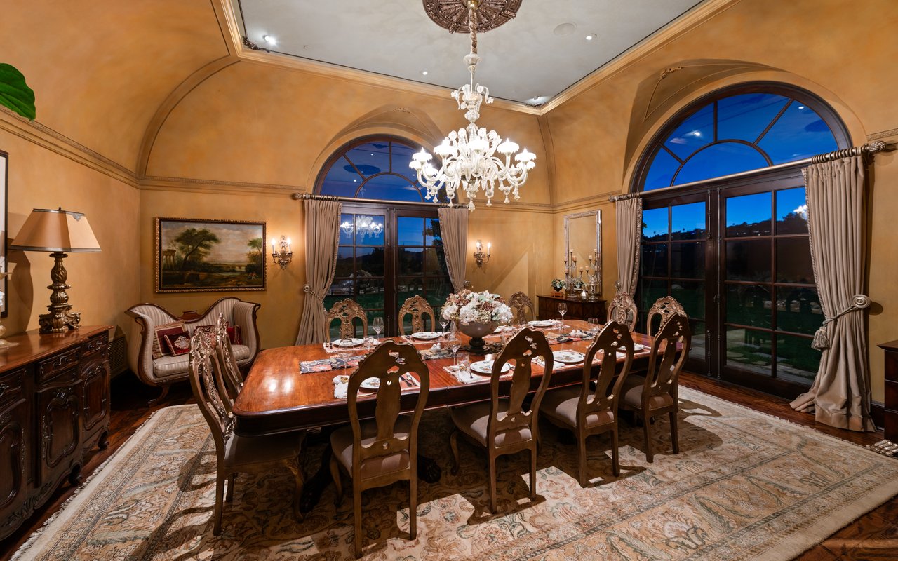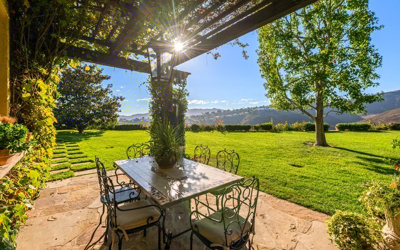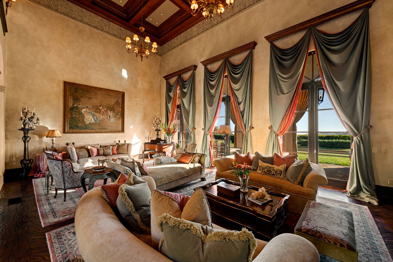 Set within the ultra-exclusive enclave of Brentwood Country Estates, a guard-gated community of just thirteen residences celebrated for 24/7 security, privacy, and sweeping vistas, this remarkable estate evokes the timeless romance of a European chateau. Encompassing approximately 9,400 square feet of living space on an expansive 6.13 acre lot, the property offers a rare combination of seclusion, scale, and architectural elegance. A private gate opens to a stately gravel motor court, instantly transporting you to the Tuscan countryside. Beyond an arched entry, a central courtyard unfolds, where vined walls, manicured gardens, a serene fountain, and flagstone pathways create an atmosphere of refined tranquility. Inside, the residence reveals exceptional craftsmanship throughout, featuring intricate marble floors, soaring ceilings, and the classic proportions of a true European manor. A dramatic two-story formal living room with stone fireplace and coffered, beamed ceilings flows seamlessly into an elegant formal dining room. The chef's country kitchen is anchored by a substantial center island, professional-grade appliances, and opens to both a charming breakfast room and an inviting family room with fireplace. A richly appointed wood-paneled office and library, two powder rooms, a guest suite, a generous playroom or bonus room, and a large, dedicated storage space thoughtfully positioned between levels enhance the functionality of the main residence. Upstairs, the primary suite serves as a private sanctuary, offering a fireplace, walls of French doors opening to a romantic terrace, dual custom walk-in closets, and a luxurious spa-like bath. A dedicated gym and three additional en-suite bedrooms provide comfort and flexibility. The resort-quality grounds are truly exceptional, featuring expansive lawns, covered patios, a sparkling pool and spa, and a rotunda gazebo crowning the landscape. Below the gazebo, a temperature-controlled wine cellar and tasting room accommodating approximately 1,000 bottles create an intimate setting for entertaining. From nearly every vantage point, sweeping canyon and ocean views stretch endlessly, forming a breathtaking natural backdrop. A rare offering of grace, grandeur, and security, 12721 Chalon Road is a world-class European retreat nestled in the heart of Brentwood.