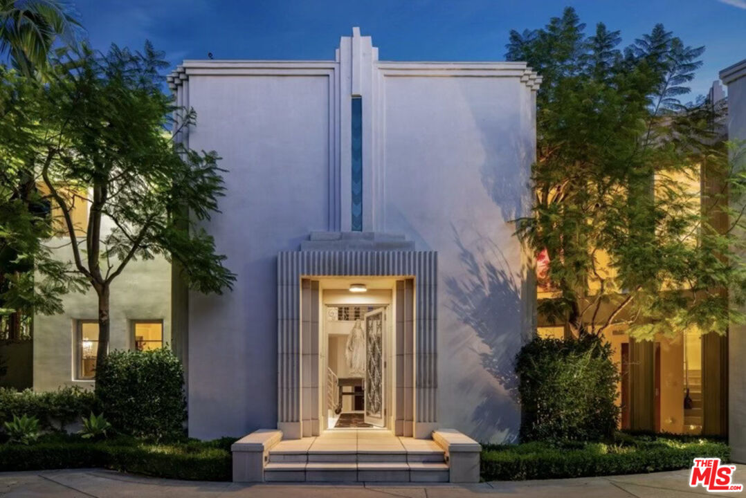 Inspired by some of the greatest Art Deco landmarks of our city, this rarified contemporary residence sits commandingly at the end of a gated private driveway flanked by an avenue of palm trees. The two-story entrance hall with its curving staircase leads to a sunken great room with disappearing ...