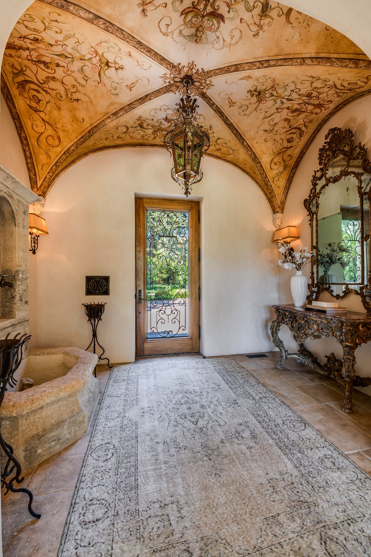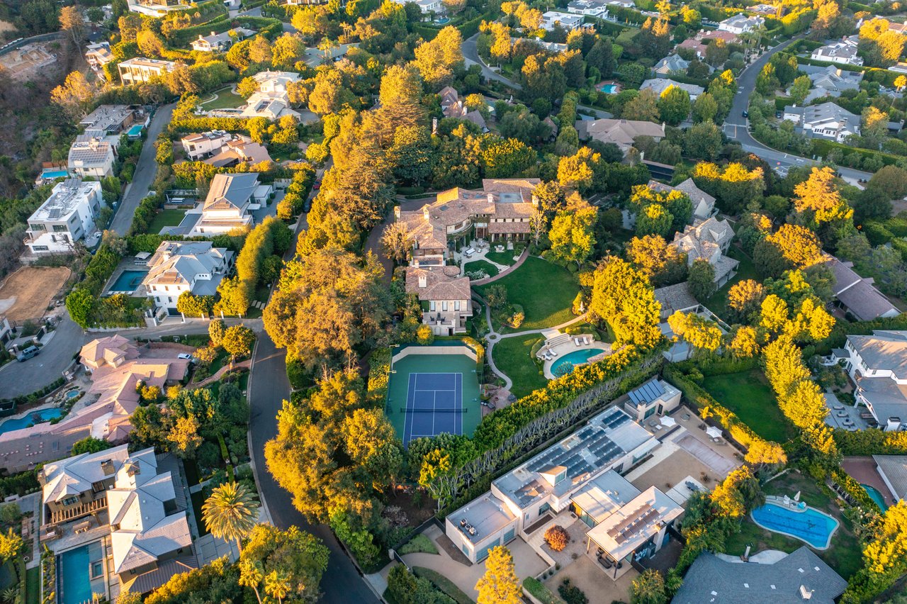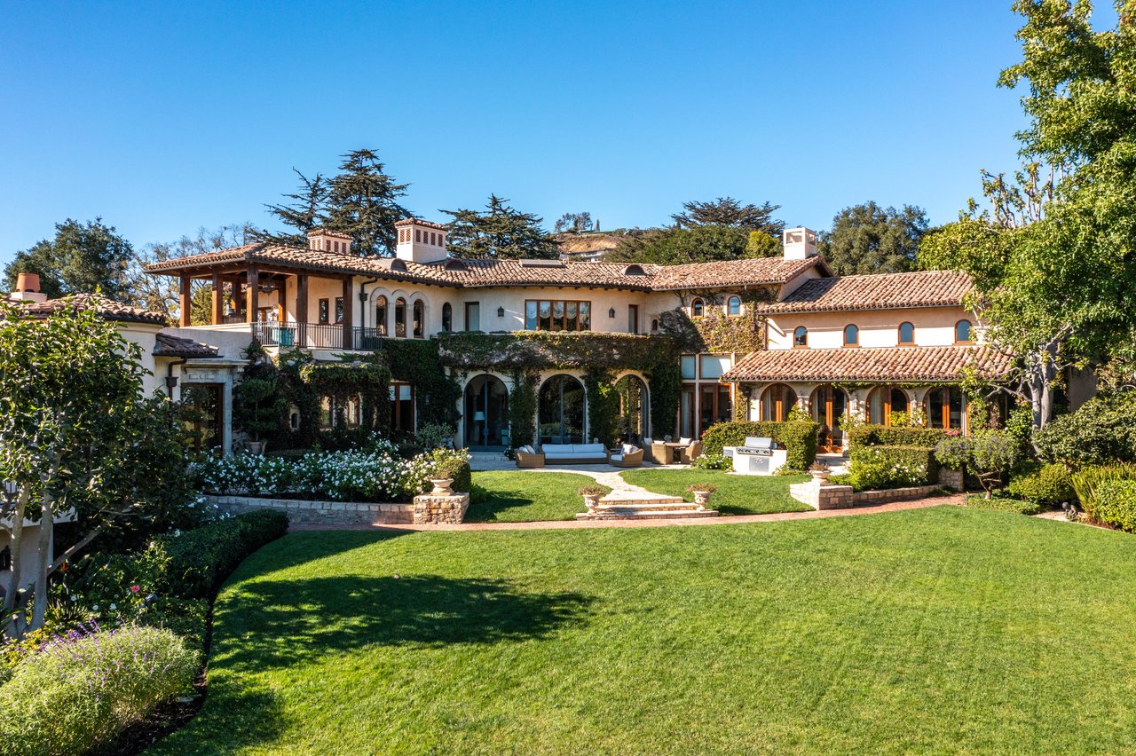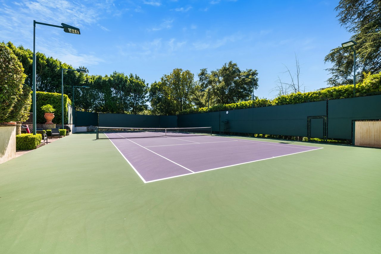 The Leonard Estate stands as the most important legacy property on the Westside - an extraordinary Italian villa of rare scale and pedigree, available once in a generation. Envisioned by world-renowned architect Richard Landry, this Florentine-inspired masterpiece was crafted with only the finest materials and exudes timeless elegance. Perched on nearly two acres of expansive, park-like grounds within the prestigious Palisades Riviera, the estate is hidden behind double gates, towering hedges, and a long private driveway, ensuring complete privacy and security. The ivy-clad facade opens to a grand motor court and sets the stage for over 16,700 square feet of exquisitely designed interiors. Vaulted ceilings, generous proportions, and seamless indoor-outdoor flow create a setting that is equally suited for intimate living or entertaining on a grand scale. The main residence features a dramatic two-story family room, a refined formal living room and dining room, a solarium, a gourmet kitchen with professional appliances and center island, and multiple wings devoted to leisure and entertaining, including a screening room, media room, and gym. There are seven bedrooms in total, with the primary suite serving as a private retreat offering a fireplace, spa-like bath, dressing rooms, and a terrace overlooking breathtaking ocean, canyon, and mountain views. The grounds are a world unto themselves: a sun-drenched oval pool and spa, lit tennis court with viewing pavilion, rolling lawns, meadow, putting green, and lush gardens framed by mature trees. A full two-story guesthouse adjacent to the pool includes a kitchen and guest accommodations, ideal for hosting visitors or poolside gatherings. The Leonard Estate is a true world-class residence that combines European romance with modern luxury, offering both sumptuous and serene living on one of the Riviera's most coveted streets.