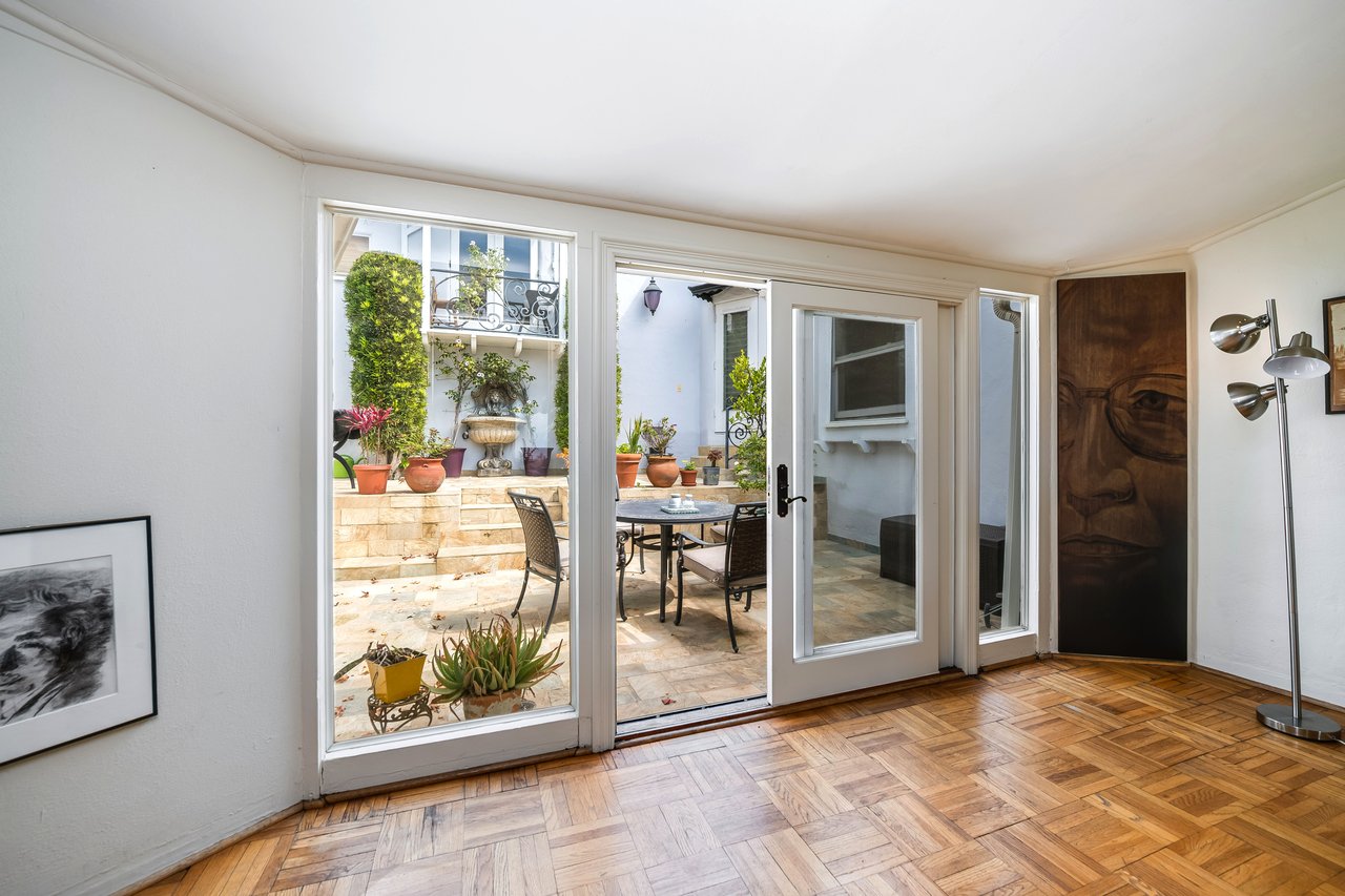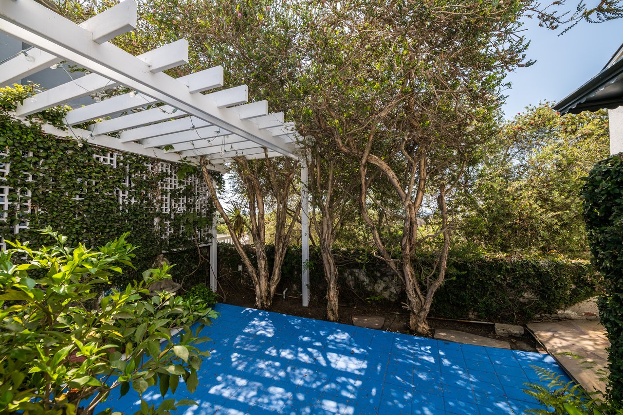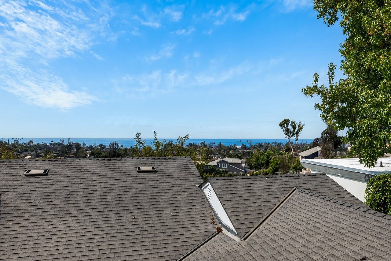 Enjoy beautiful ocean views from this light-filled Pacific Palisades residence that blends warmth, charm, and coastal tranquility. With just under 2,000 sq.ft. of living space, the home sits on a beautifully landscaped, elevated lot that enhances its privacy and natural light. At the heart of the home is an enchanting central courtyard, accessible from most rooms, creating a seamless indoor-outdoor flow perfect for relaxed California living. The main level features a spacious living room, a formal dining room, and a well-appointed kitchen with a breakfast area. The primary suite offers its own private patio with a soothing fountain and a remodeled en-suite bath. Upstairs are two additional bedrooms, including one currently used as an office with a Juliette balcony and ocean view, along with a bonus room and two additional bathrooms. Other highlights include a laundry room, an oversized two-car garage, and a new roof (done in 2022). A rare opportunity to own a warm and tranquil home, combining coastal charm with timeless comfort.