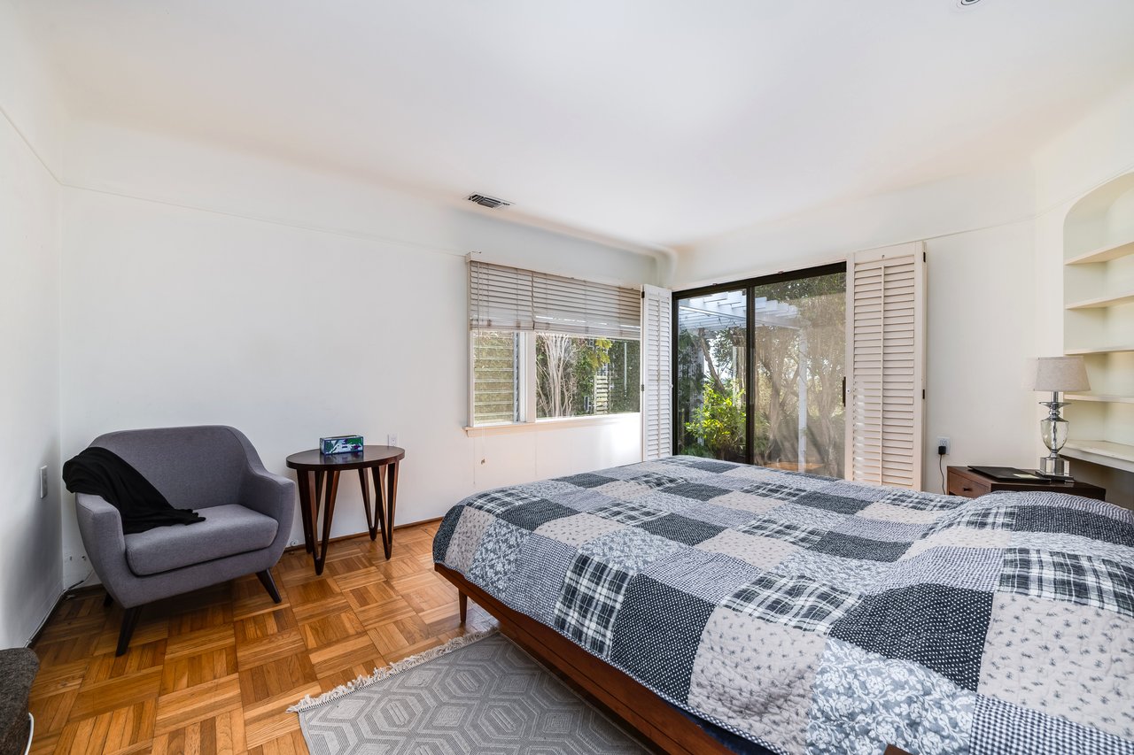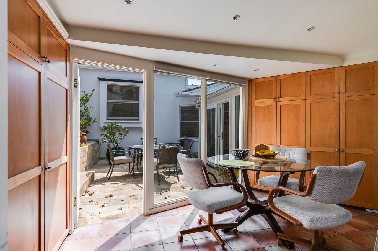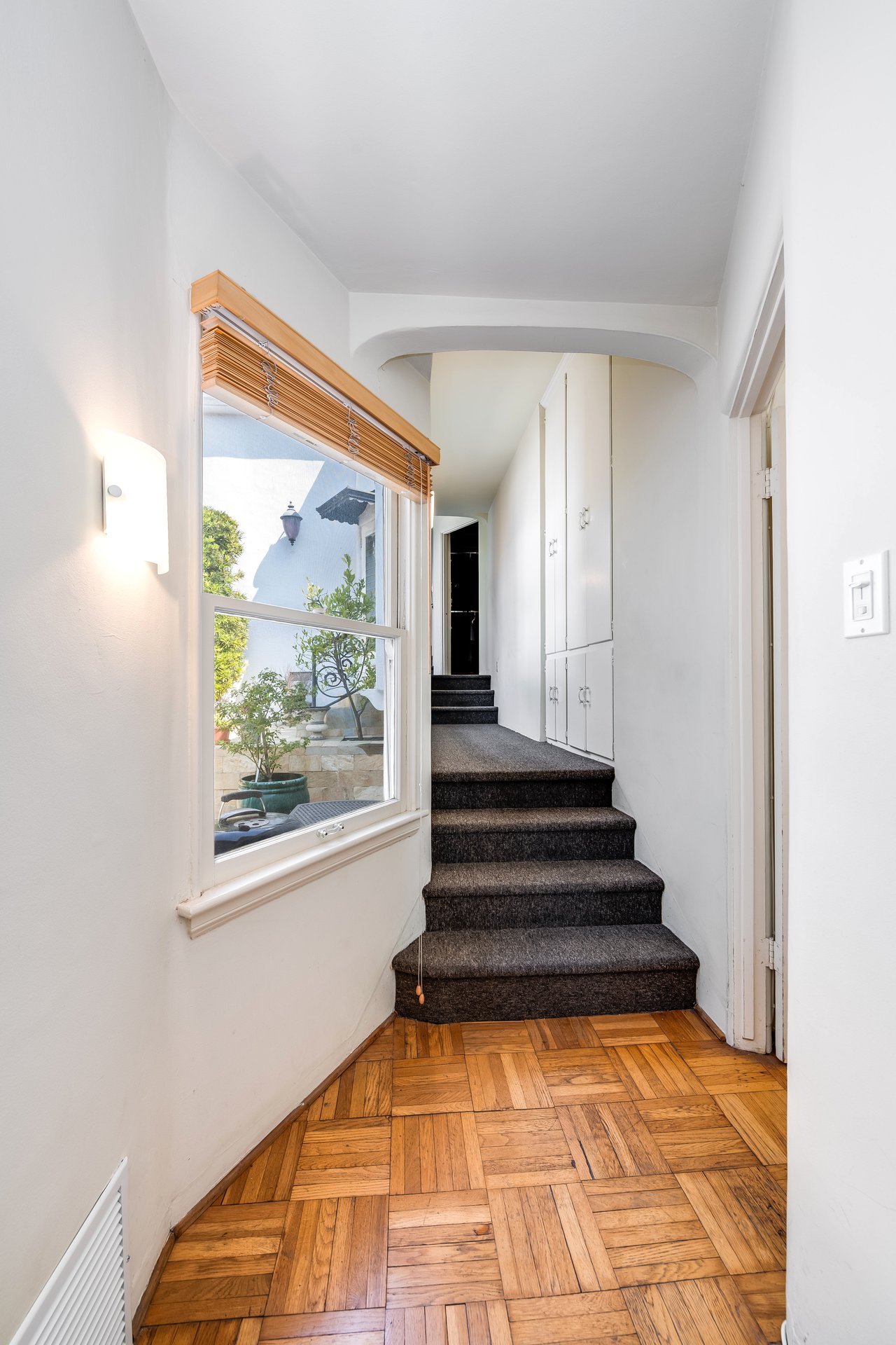 Enjoy beautiful ocean views from this light-filled Pacific Palisades residence that blends warmth, charm, and coastal tranquility. With just under 2,000 sq.ft. of living space, the home sits on a beautifully landscaped, elevated lot that enhances its privacy and natural light. At the heart of the home is an enchanting central courtyard, accessible from most rooms, creating a seamless indoor-outdoor flow perfect for relaxed California living. The main level features a spacious living room, a formal dining room, and a well-appointed kitchen with a breakfast area. The primary suite offers its own private patio with a soothing fountain and a remodeled en-suite bath. Upstairs are two additional bedrooms, including one currently used as an office with a Juliette balcony and ocean view, along with a bonus room and two additional bathrooms. Other highlights include a laundry room, an oversized two-car garage, and a new roof (done in 2022). A rare opportunity to own a warm and tranquil home, combining coastal charm with timeless comfort.