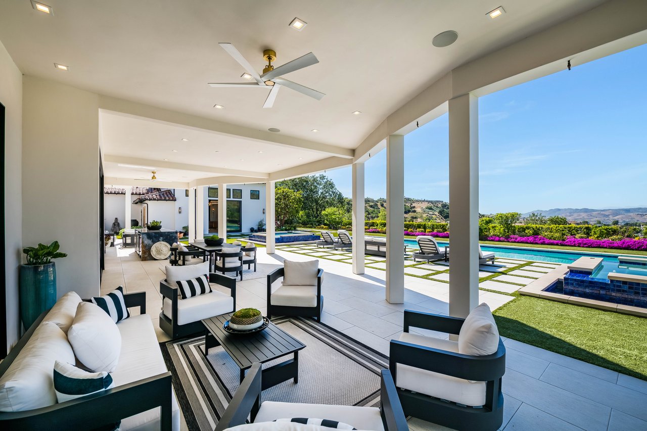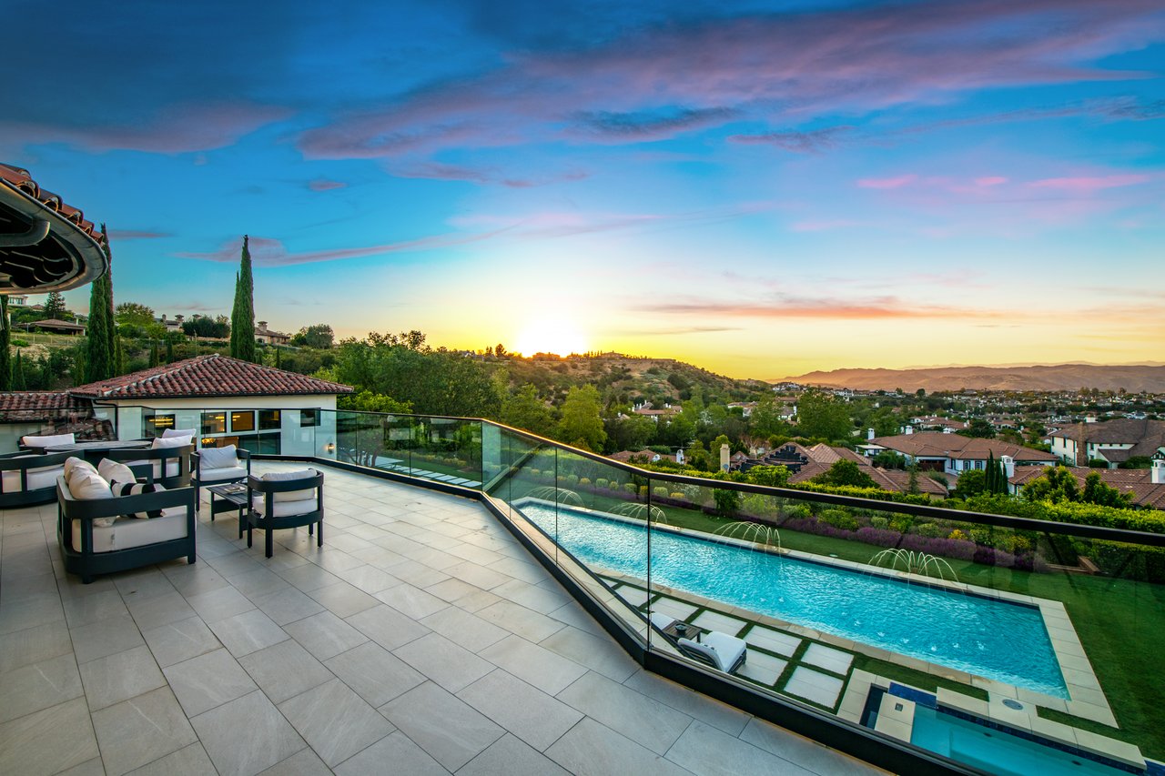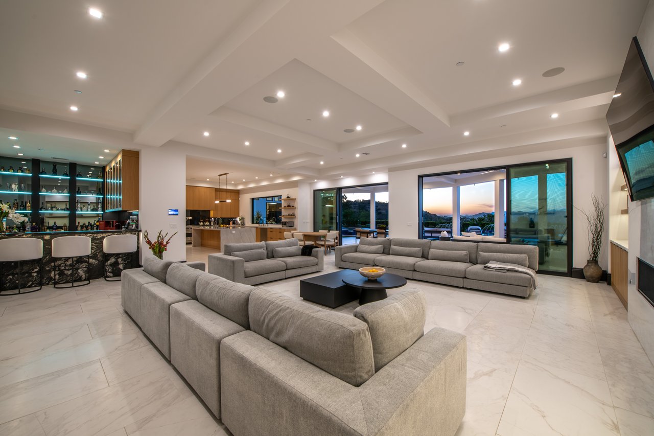 Tucked behind double gates with sweeping sunset views and 24-hour security, "The Estates at The Oaks" is an exceptionally exclusive enclave of approximately 50 homes. This remarkable warm Modern Villa presents a compelling blend of architectural scale, refined materials, and seamless indoor-outdo...
