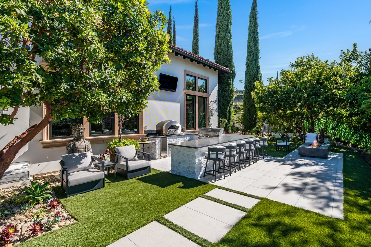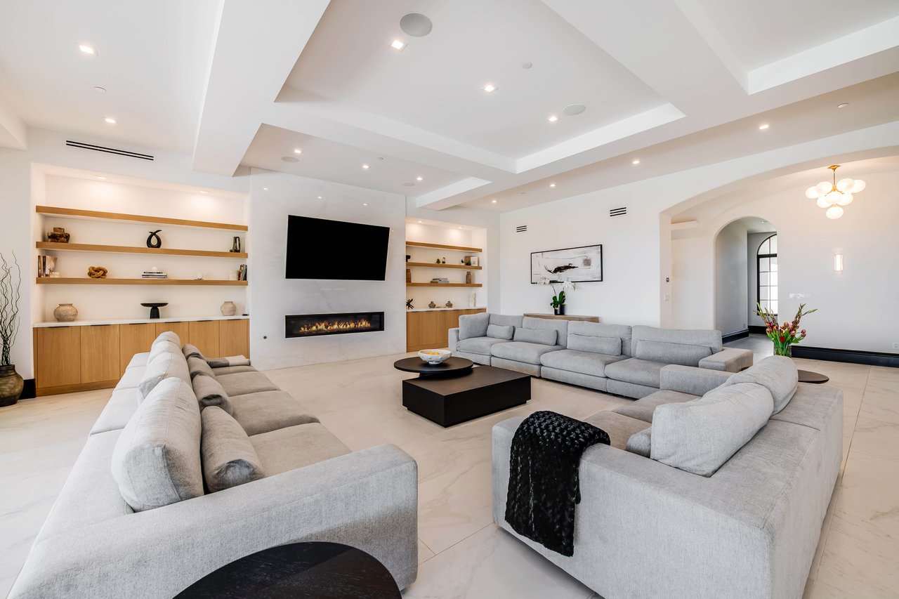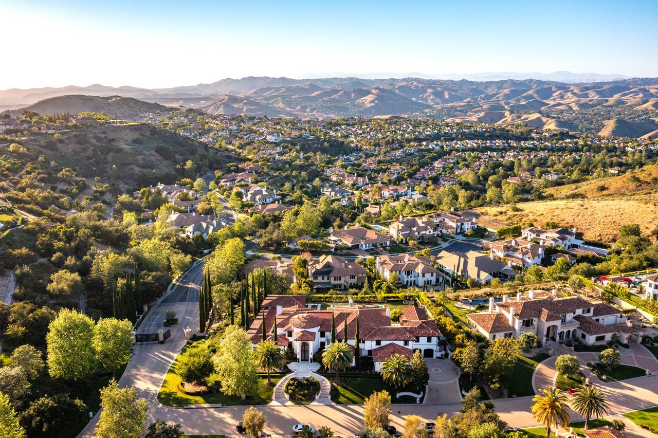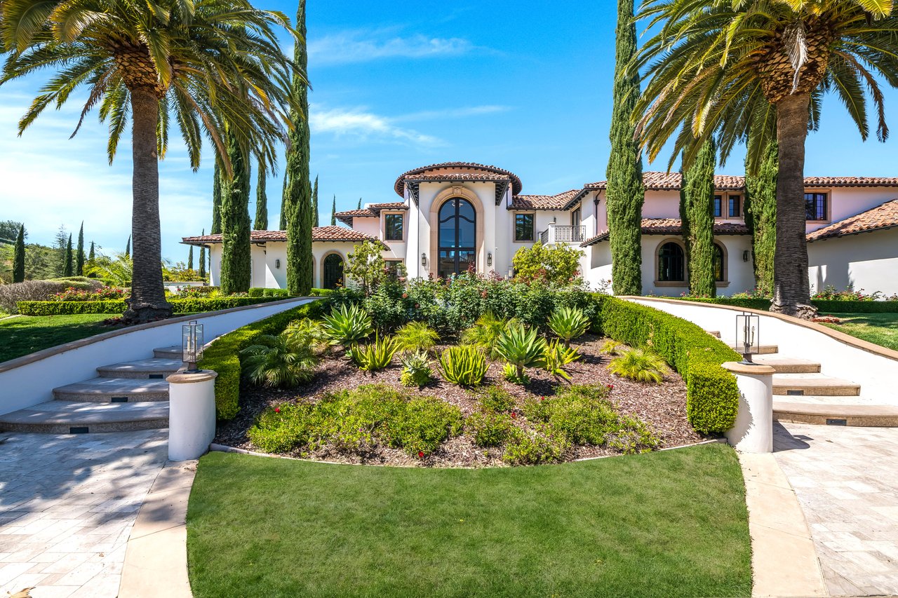 Tucked behind double gates with sweeping sunset views and 24-hour security, "The Estates at The Oaks" is an exceptionally exclusive enclave of approximately 50 homes. This remarkable warm Modern Villa presents a compelling blend of architectural scale, refined materials, and seamless indoor-outdo...