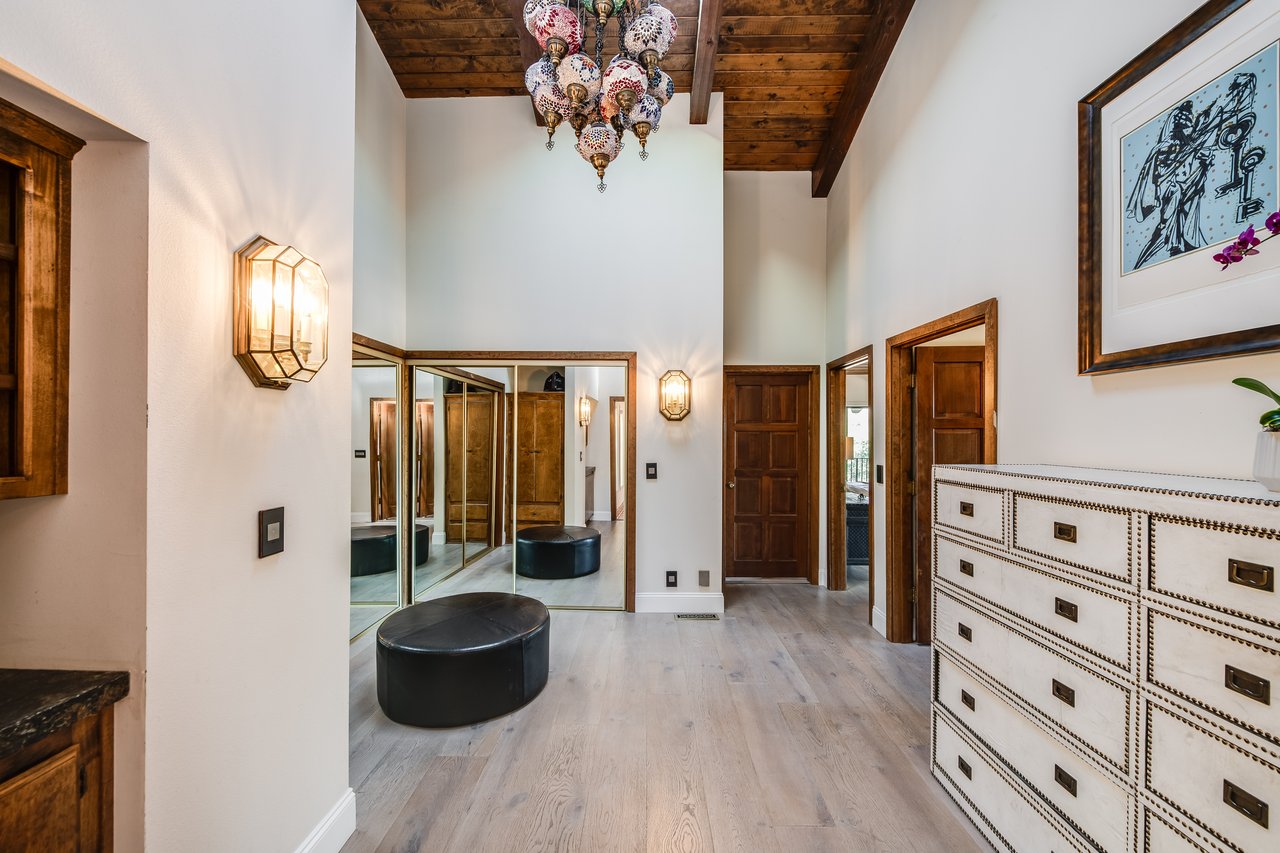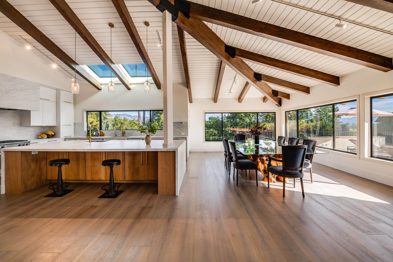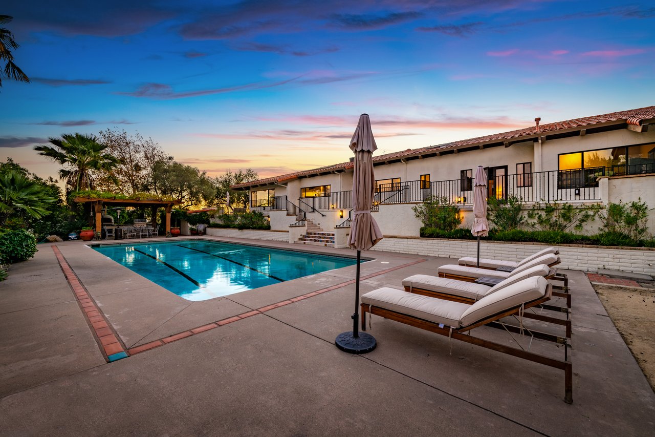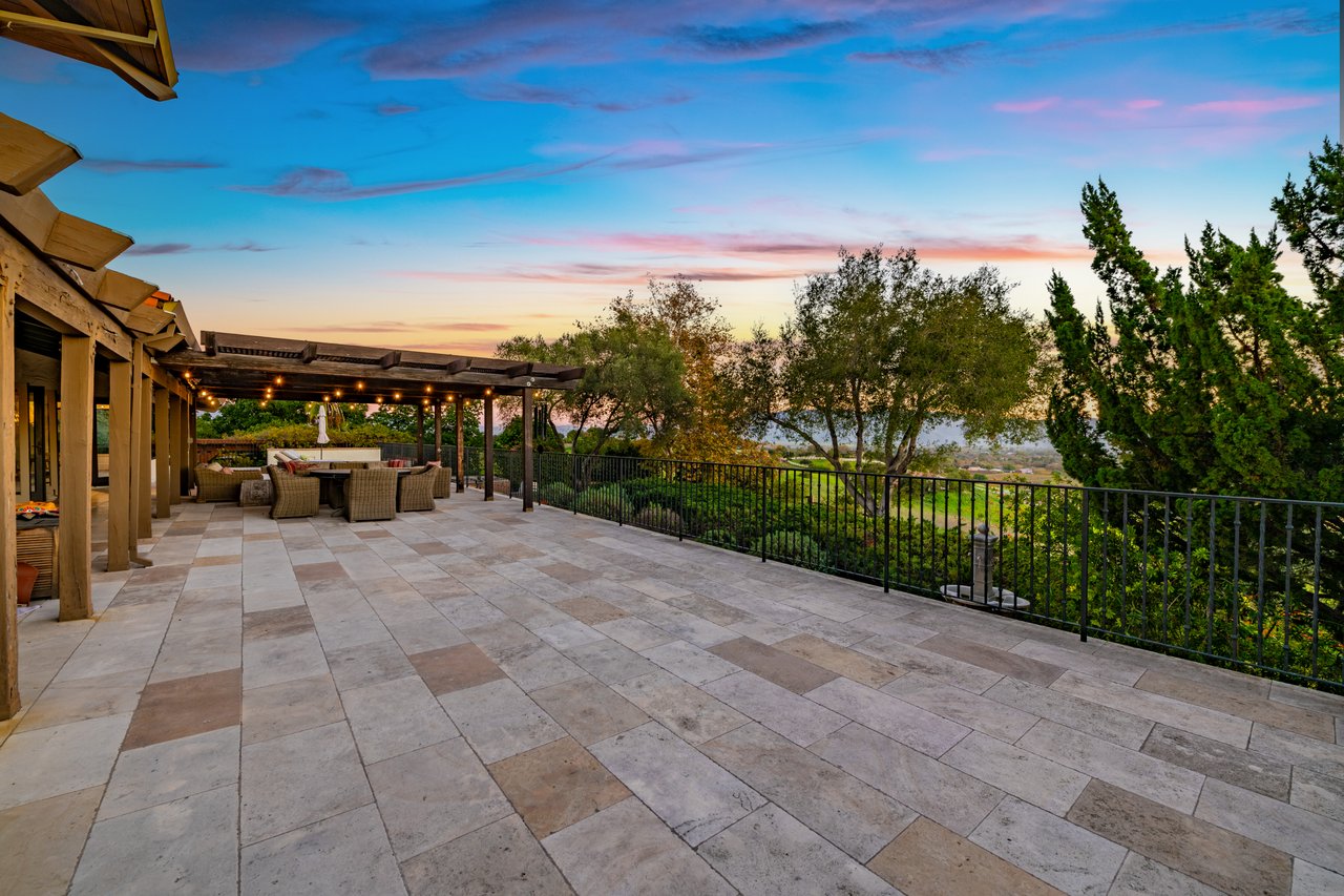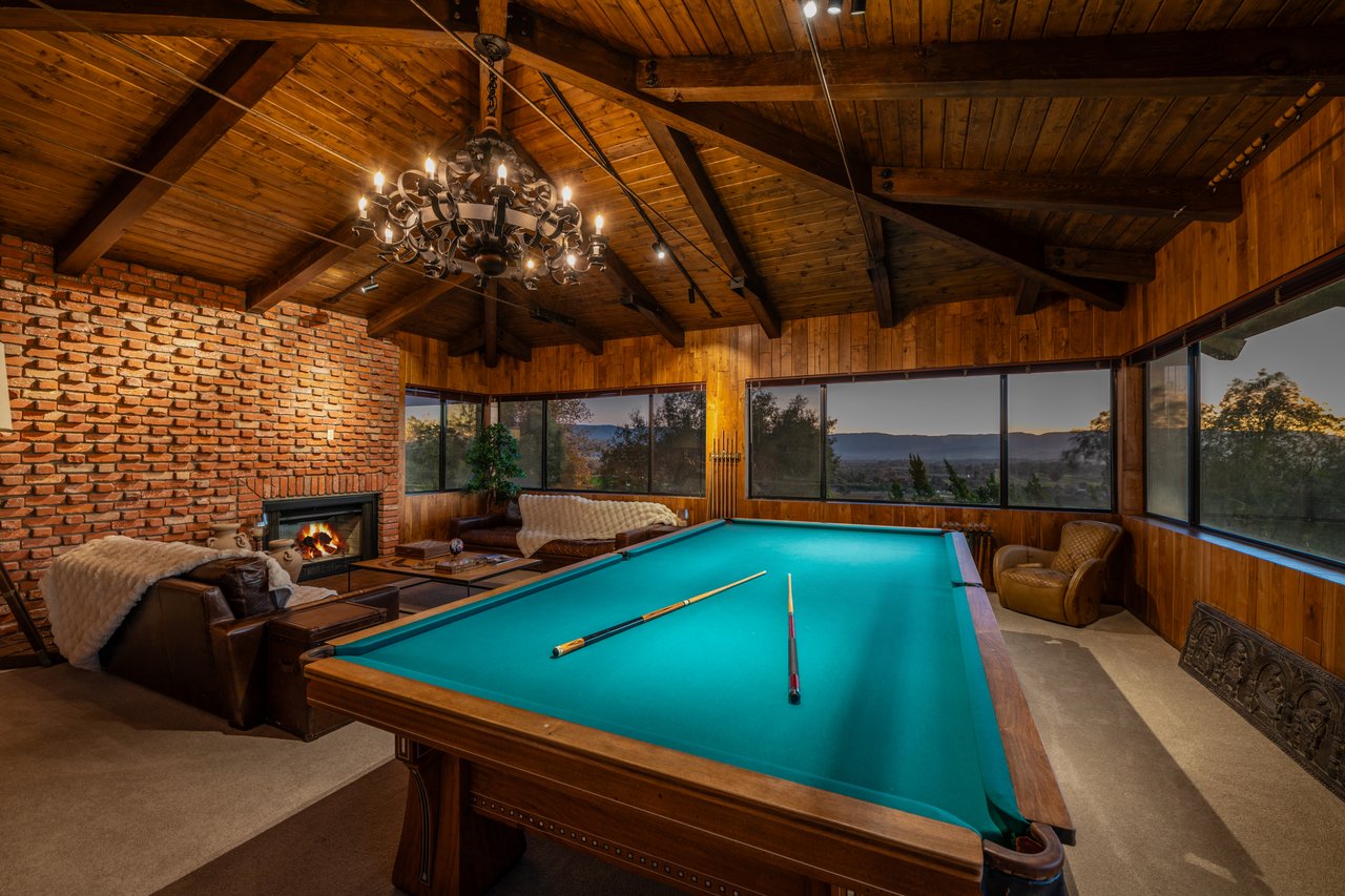 Privately gated and approached by a long, winding country road, this commanding hilltop estate is set within the prestigious enclave of Rancho Ynecita, encompassing approximately 19.5 acres with sweeping, unobstructed panoramic views across the Santa Ynez Valley and surrounding mountains. A dramatic arrival culminates at six garage bays with individual overhead doors at driveway level, including select double-deep spaces, RV accommodation, a dedicated garage workspace with wraparound workbench and built-in storage, extensive under-house storage, and elevator access from the garage to the main living level. The residence is primarily single-level in living, thoughtfully organized around a tranquil central courtyard that serves as the architectural heart of the home. Five French doorsthree from the living room and two from interior hallwaysopen to the courtyard, allowing the soothing sound of the fountain water feature to resonate throughout the interiors and establishing a refined indoor-outdoor dialogue. Recently and extensively remodeled, the home seamlessly blends timeless Spanish character with contemporary refinement, showcasing beautiful hardwood floors, soaring open-beam ceilings with oversized timbers, skylights, expansive windows, and walls of glass that invite abundant natural light. At the center of the home, the reimagined kitchen is both a statement and a gathering space. Italian marble surfaces define the room, anchored by an oversized waterfall island designed for entertaining, a dramatic 60-inch wrapped hood, and a full suite of Miele appliances. Four sets of French doors from the kitchen and living areas open directly onto a spectacular wraparound deck of approximately 1,000 square feet, finished in French limestone and offering true 360-degree-style vantage points over the vineyards and valley beyond. The floor plan is exceptionally well considered, offering dual true primary suites positioned on opposite wings for maximum privacy. Each primary suite features a sitting area and a spa-like bath, including one with a steam shower. Every bedroom is graced with large windows and double French doors opening directly onto the wraparound deck, reinforcing the home's connection to its setting. In total, the residence offers 6 bedrooms and 6.5 baths, including a half bath on the upper level and an additional full bath in the garage, ideal for service and pool use. Outdoor living is equally compelling. A lap-length swimming pool anchors the lower entertaining terrace, complemented by an outdoor kitchen with pizza oven, grill, trellis, and dedicated dining area. Approximately five acres of enclosed gardens surround the home, enriched by a rare microclimate that supports an exceptional orchard with roughly 30 mature, fruit-bearing avocado trees, along with lemon, orange, tangerine, apple, and Asian pear trees. Ancient oak trees and mature olive trees further define the landscape, while additional partially graded land offers flexibility for a tennis or paddle court, equestrian use, or other recreational pursuits. The property includes both a pool and garden work shed, as well as a separate work shed with running water and electricity, suitable for conversion to an office, art studio, or in-law unit. A second homesite, already equipped with water and electricity, is shovel-ready relative to typical parcels, offering a rare opportunity for future expansion. Located within the highly regarded Los Olivos Elementary School District and just minutes from the charming towns of Los Olivos and Santa Ynez, this exceptional estate combines privacy, scale, and refined country living with a lifestyle defined by walkability, serenity, and enduring natural beauty.