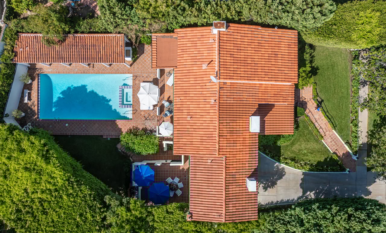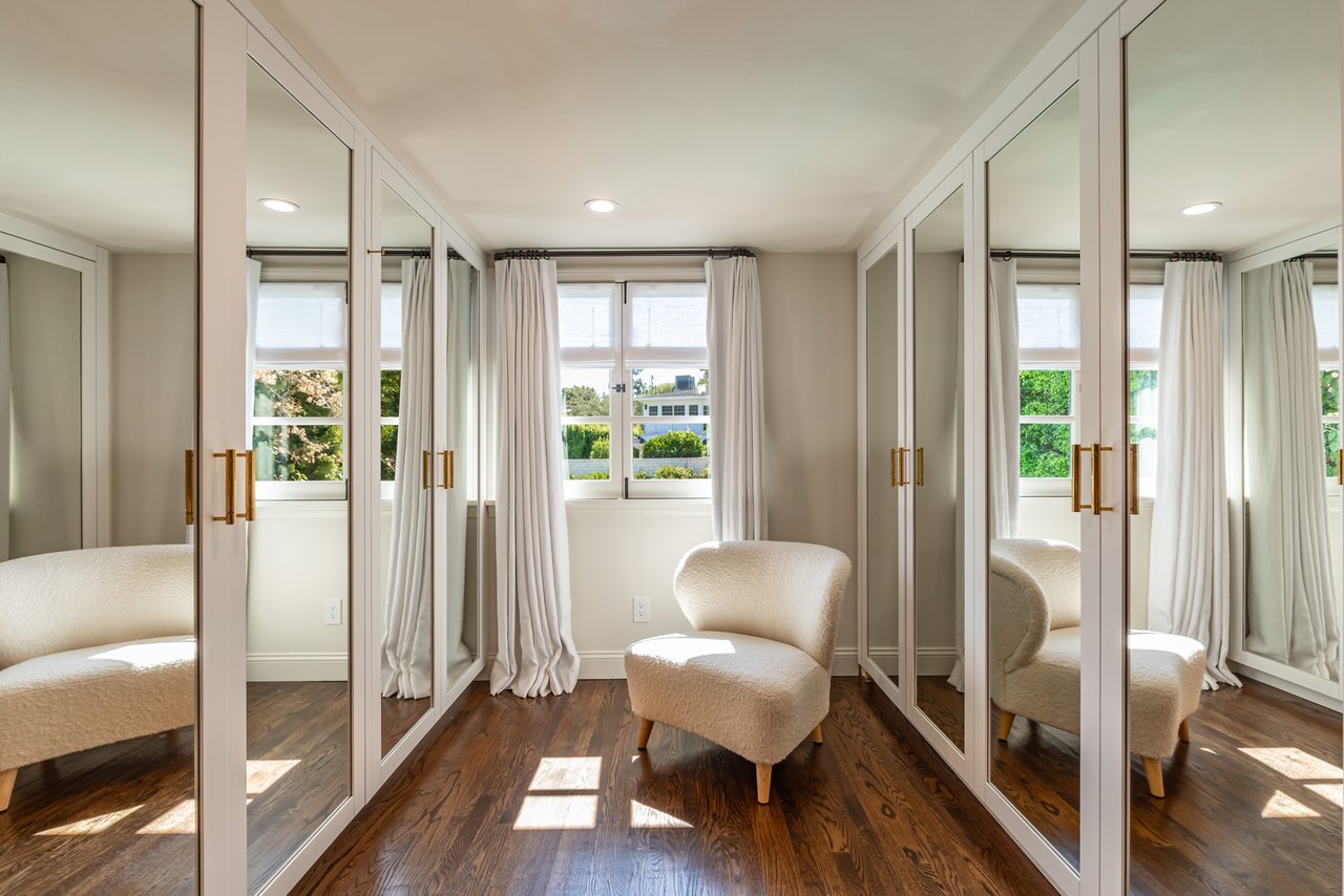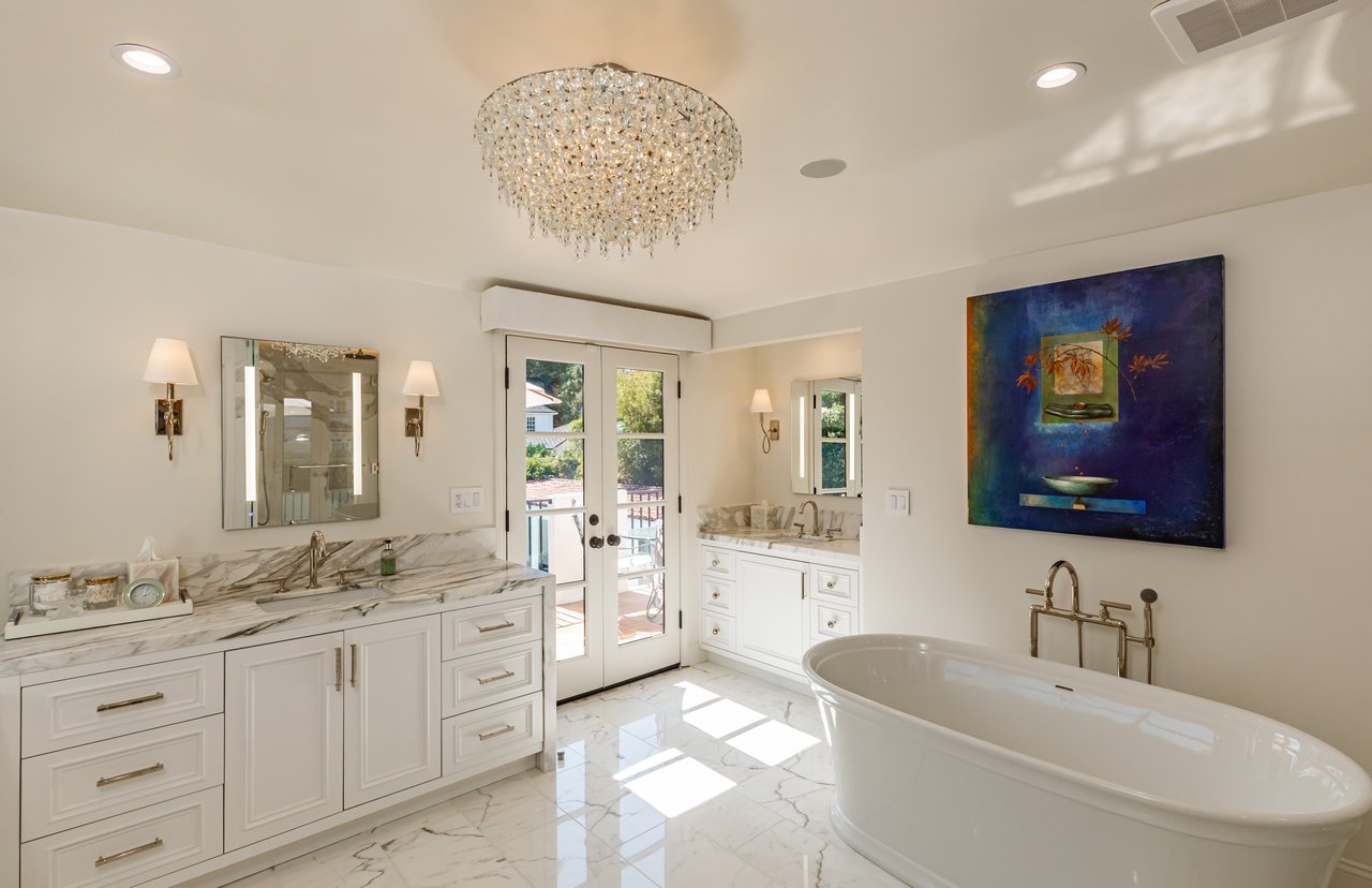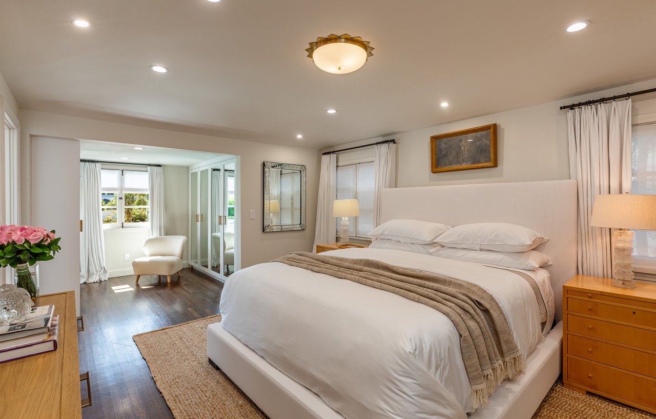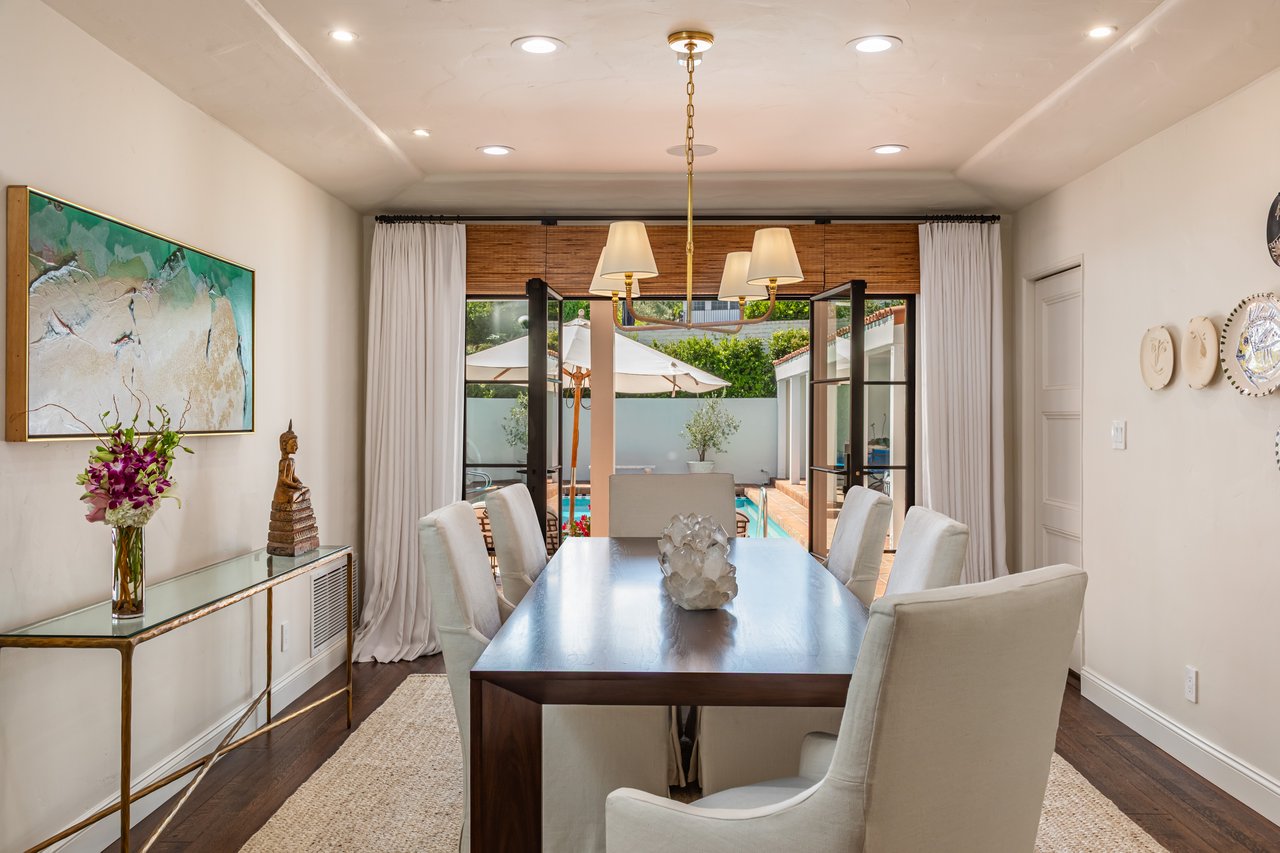 Located on prestigious Comstock Avenue in exclusive Little Holmby, this exquisite Spanish estate offers 4 bedrooms, 4 bathrooms and 2 powder rooms. Thoughtfully reimagined for modern living while preserving its architectural character, the residence celebrates timeless details with exposed wood-beamed ceilings, soft arches, wrought-iron accents and the warmth of natural materials like Saltillo tiling, wood and stone. A soaring two-story foyer with a dramatic staircase and artisan ironwork set the stage. Throughout, original elements meet elevated updates: hand-hewn beams, marble finishes and sunlit rooms. The main level features a versatile office with custom built-ins and a charming den/study with a corner fireplace. The pristine eat-in kitchen is anchored by terracotta tile floors, Calacatta marble countertops, generous storage and an adjoining breakfast room. The well-appointed, generous formal dining room, designed for entertaining, connects seamlessly to the terrace and pool through French doors, while the formal living room, framed by a grand fireplace and exposed wood beams exude sophistication. The spacious family room with soaring ceilings, Juliet balconies and dual sets of French doors creates effortless indoor-outdoor flow to expansive terraces for dining, lounging and entertaining. Upstairs, the ambient light-filled primary suite serves as a sanctuary with Juliet balconies, a fireplace, a secure custom walk-in closet with additional custom built-ins and a marble-clad bathroom featuring a soaking tub, standing shower and dual vanities. French doors open to an expansive terrace overlooking the lushly landscaped grounds. Two additional bedrooms complete the upper level, one with Juliet balconies, the other a junior suite with terrace access and bespoke storage.The lower level reveals a private guest bedroom suite with its own entrance, along with a laundry room, abundant storage, a two-car garage and a private gym with separate exterior entrance.Outdoors, towering hedges and mature trees, envelope the verdant grounds in privacy. Blooming flowers frame the sparkling swimming pool and spa, while a covered cabana with powder room, built-in barbecue and multiple alfresco dining and lounge spaces create a resort-like setting. With thoughtful modern amenities and effortless proximity to UCLA, Westwood Village, Beverly Hills, and Century City, this residence presents a rare opportunity to experience the beauty, privacy and prestige of Little Holmby living.
