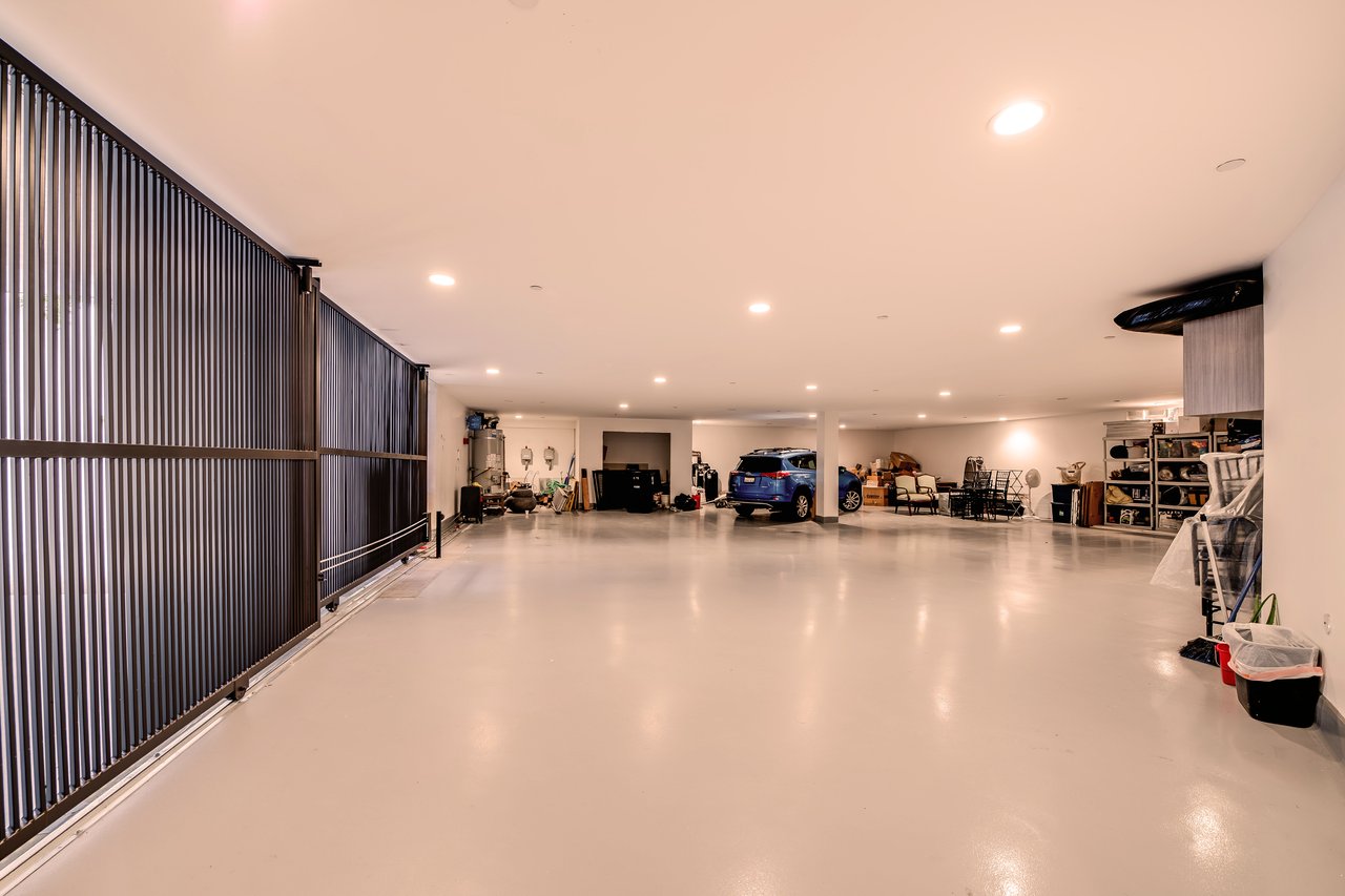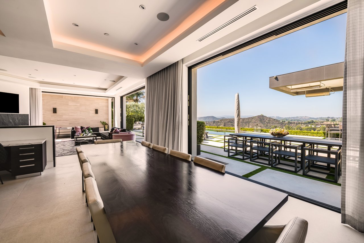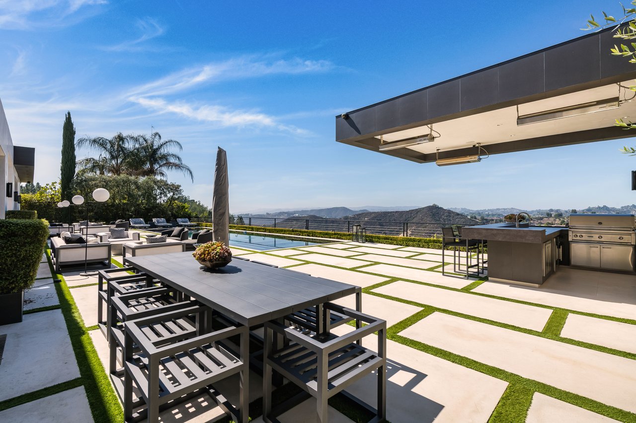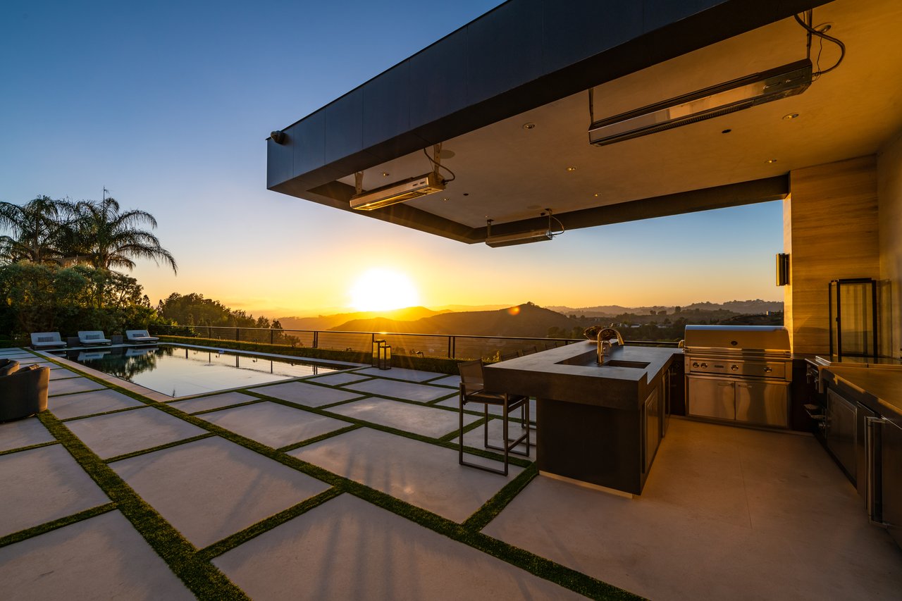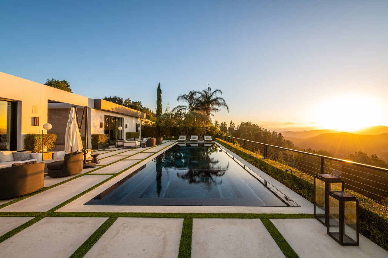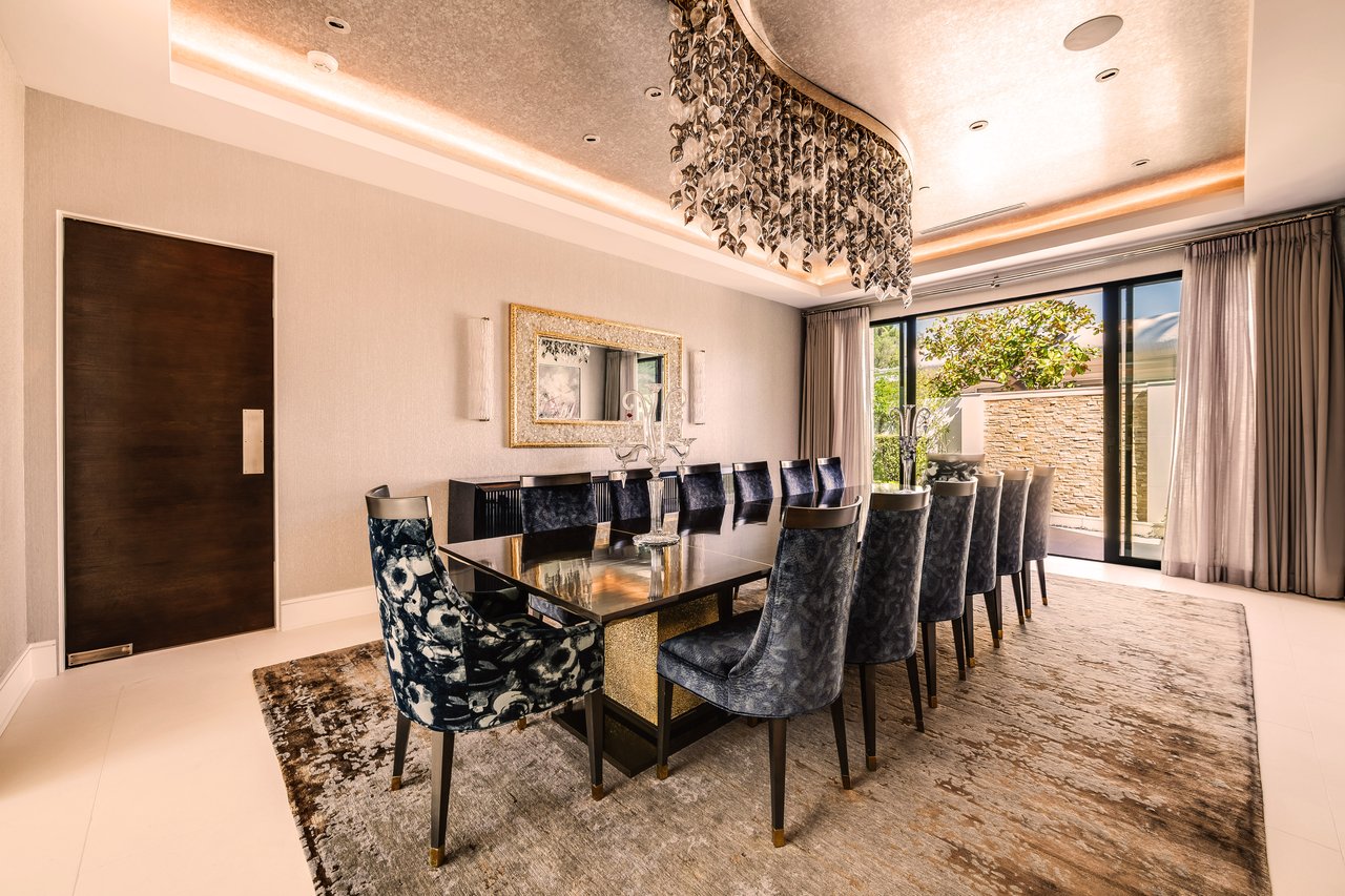 Nestled in the heart of the legendary Trousdale Estates of Beverly Hills, 565 Evelyn Place is a custom-built modern architectural triumph that fuses precision craftsmanship with warm livability. Completed in 2017, this residence was envisioned as a statement of timeless contemporary design sculpted lines, dramatic volumes, and a seamless indoor-outdoor flow that celebrates the Southern California lifestyle. From the moment you approach, the home commands attention. Expansive glass openings frame serene water features, while the landscape unfolds in a series of intimate gardens and gathering spaces. Inside, natural light pours through open volumes, highlighting a sophisticated materials palette of walnut, limestone, and custom Italian marbles. A state-of-the-art lighting program offers pre-set ambient scenes, while Conrad electric shades provide effortless privacy and control.At the center of the home is a breathtaking Poggenpohl kitchen, clad in rare Borghini Carrara marble and meticulously outfitted for both passionate cooks and professional entertaining. Two Miele dishwashers, three integrated refrigerators, a full 60-inch range with steamer oven, a built-in coffee system, and three sinks allow for seamless culinary preparation. A discreet butler's pantry and a fully equipped second kitchen downstairs support large-scale entertaining while preserving the kitchen's sculptural elegance. Every living space has been designed for both intimacy and spectacle. The home features three dramatic wet bars with ice makers, a library wrapped in hand-painted wallpaper and custom walnut millwork, and a series of lounges anchored by bespoke fireplaces some leathered marble, others sculpted from specialty stone. The floor plan opens effortlessly to lush gardens and resort-inspired outdoor living, where a full kitchen with BBQ, stovetop, and ice maker joins a fireplace, integrated heaters, and tranquil fountains. A separate courtside stone entertaining area invites long, sunlit afternoons and evenings under the stars. The primary suite is a private sanctuary, featuring walnut floors, dual steam showers, heated bathroom floors, and exquisitely detailed Italian marble baths. Thoughtful luxuries such as a dedicated suite refrigerator elevate comfort to the highest level. Throughout the home, technology quietly enhances everyday living with Crestron whole-house control of lighting, climate, sound, and security. Additional comforts include a central vacuum system, a private elevator, and a five-car garage finished with the same level of detail as the living spaces. A custom-designed gym completes the experience, while water features and curated landscaping lend a sense of tranquility and escape. Every detail of 565 Evelyn Place reflects a passion for design and an uncompromising standard of craftsmanship. This is more than a home, it is a modern estate built for those who value artistry, innovation, and the enduring prestige of one of Beverly Hills' most sought-after enclaves.