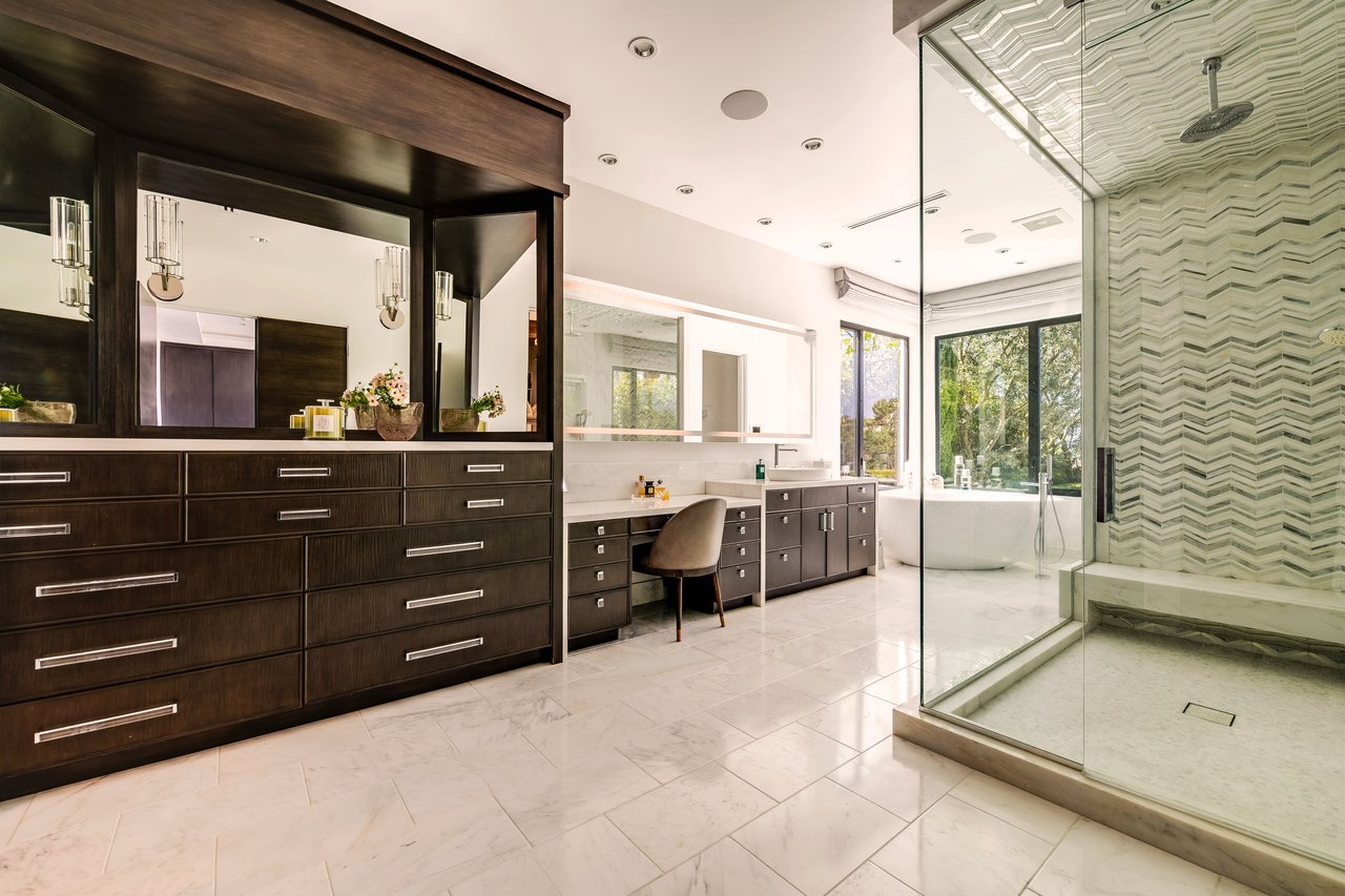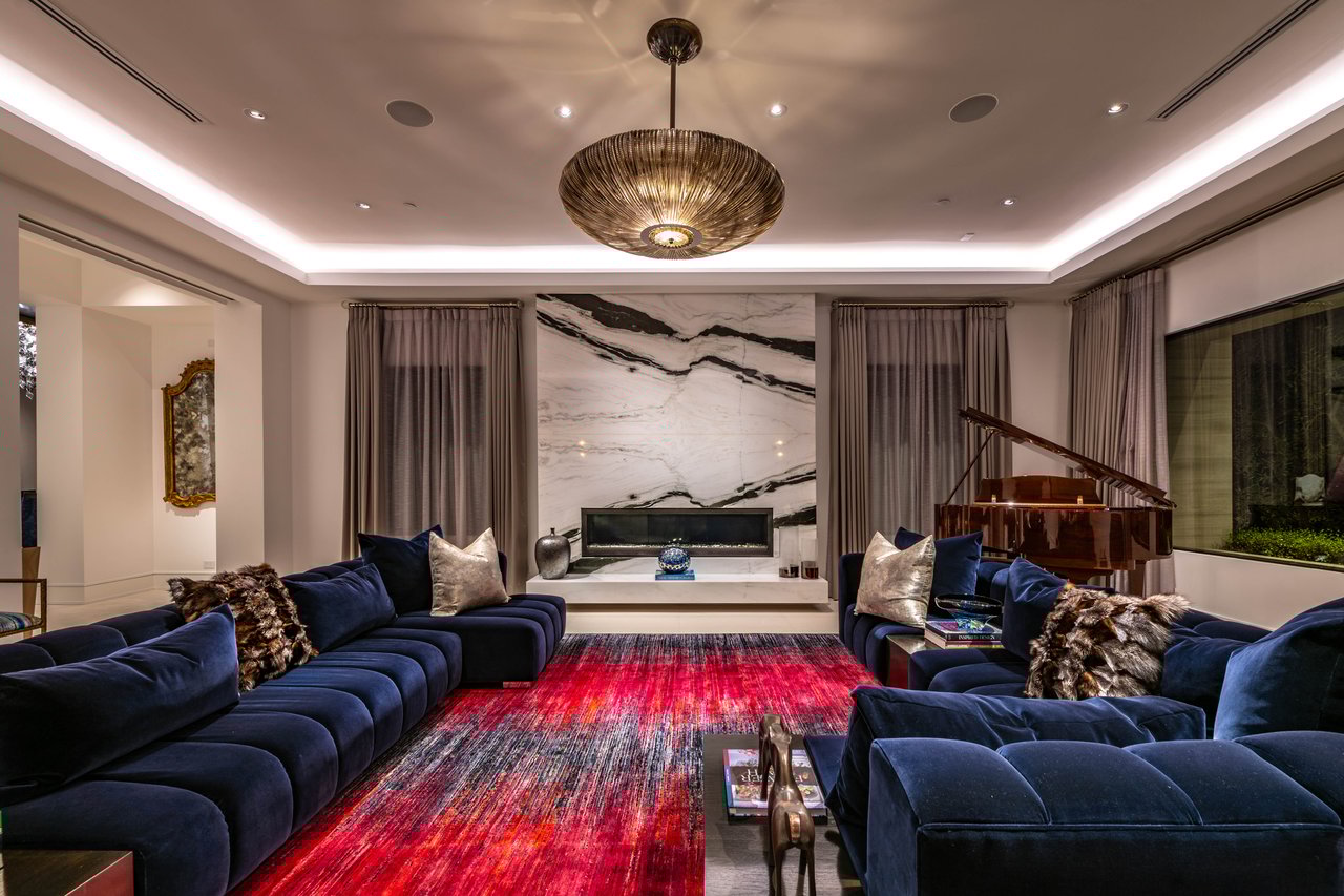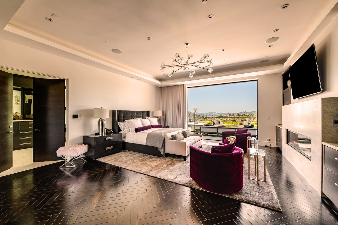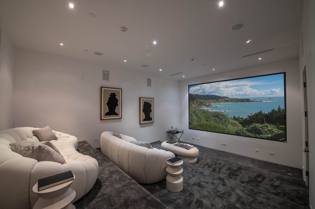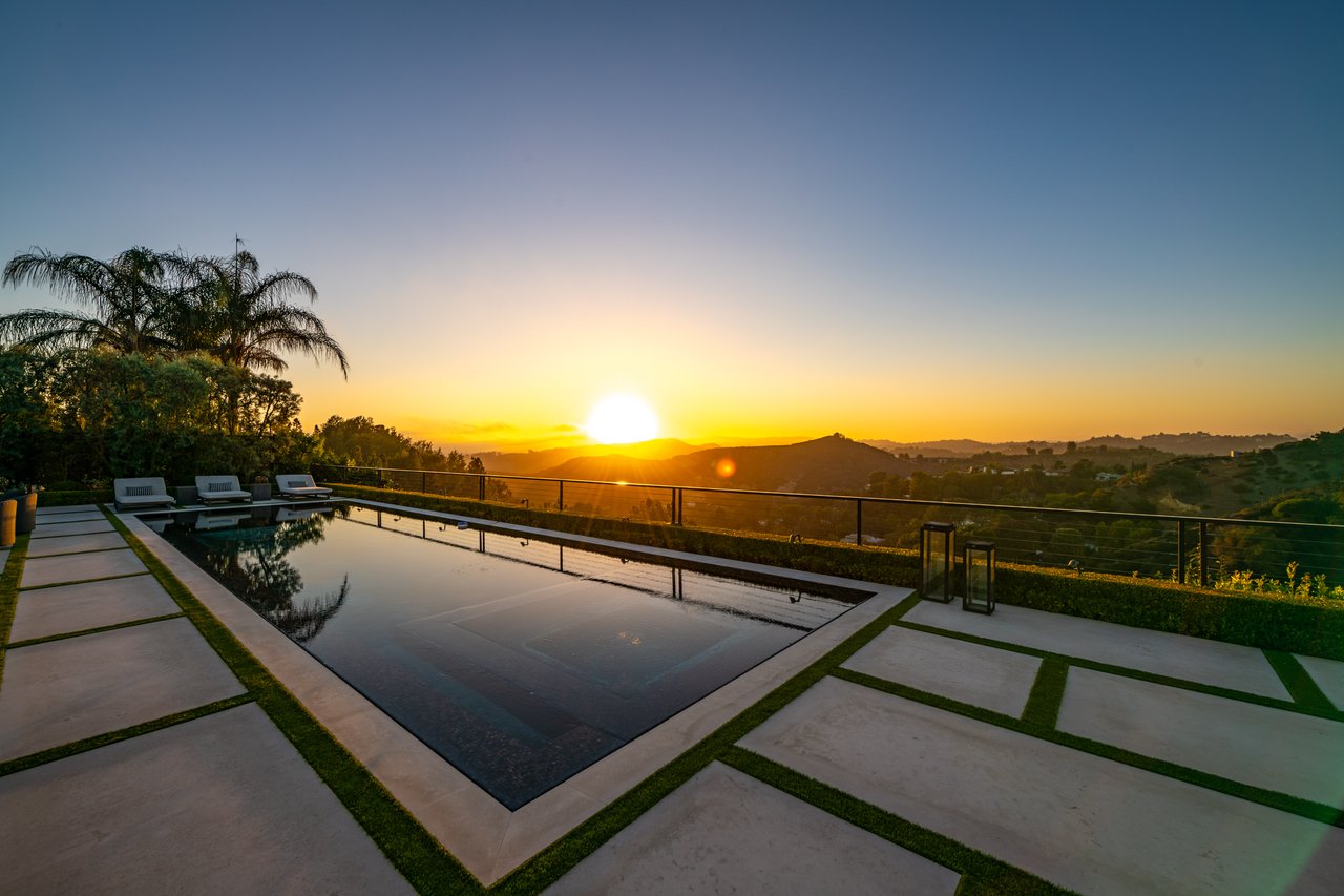 Nestled in the heart of the legendary Trousdale Estates of Beverly Hills, 565 Evelyn Place is a custom-built modern architectural triumph that fuses precision craftsmanship with warm livability. Completed in 2017, this residence was envisioned as a statement of timeless contemporary design sculpted lines, dramatic volumes, and a seamless indoor-outdoor flow that celebrates the Southern California lifestyle. From the moment you approach, the home commands attention. Expansive glass openings frame serene water features, while the landscape unfolds in a series of intimate gardens and gathering spaces. Inside, natural light pours through open volumes, highlighting a sophisticated materials palette of walnut, limestone, and custom Italian marbles. A state-of-the-art lighting program offers pre-set ambient scenes, while Conrad electric shades provide effortless privacy and control.At the center of the home is a breathtaking Poggenpohl kitchen, clad in rare Borghini Carrara marble and meticulously outfitted for both passionate cooks and professional entertaining. Two Miele dishwashers, three integrated refrigerators, a full 60-inch range with steamer oven, a built-in coffee system, and three sinks allow for seamless culinary preparation. A discreet butler's pantry and a fully equipped second kitchen downstairs support large-scale entertaining while preserving the kitchen's sculptural elegance. Every living space has been designed for both intimacy and spectacle. The home features three dramatic wet bars with ice makers, a library wrapped in hand-painted wallpaper and custom walnut millwork, and a series of lounges anchored by bespoke fireplaces some leathered marble, others sculpted from specialty stone. The floor plan opens effortlessly to lush gardens and resort-inspired outdoor living, where a full kitchen with BBQ, stovetop, and ice maker joins a fireplace, integrated heaters, and tranquil fountains. A separate courtside stone entertaining area invites long, sunlit afternoons and evenings under the stars. The primary suite is a private sanctuary, featuring walnut floors, dual steam showers, heated bathroom floors, and exquisitely detailed Italian marble baths. Thoughtful luxuries such as a dedicated suite refrigerator elevate comfort to the highest level. Throughout the home, technology quietly enhances everyday living with Crestron whole-house control of lighting, climate, sound, and security. Additional comforts include a central vacuum system, a private elevator, and a five-car garage finished with the same level of detail as the living spaces. A custom-designed gym completes the experience, while water features and curated landscaping lend a sense of tranquility and escape. Every detail of 565 Evelyn Place reflects a passion for design and an uncompromising standard of craftsmanship. This is more than a home, it is a modern estate built for those who value artistry, innovation, and the enduring prestige of one of Beverly Hills' most sought-after enclaves.