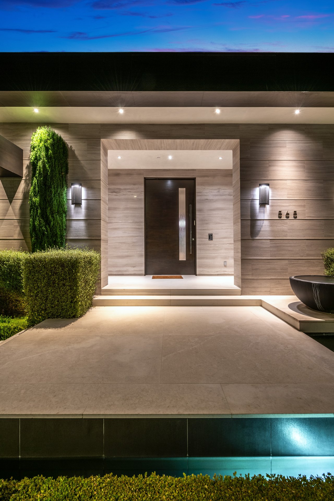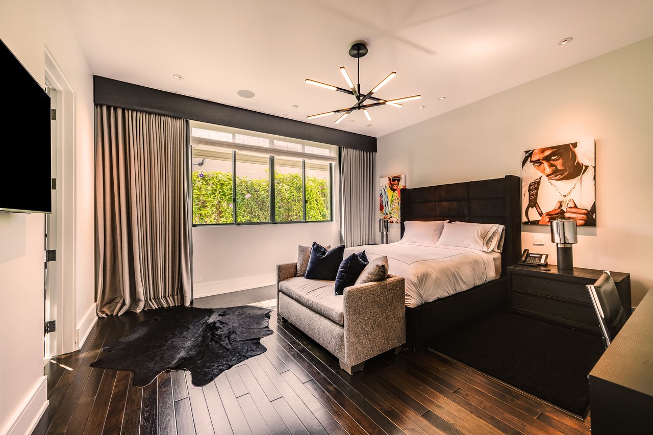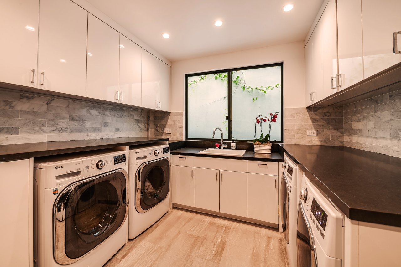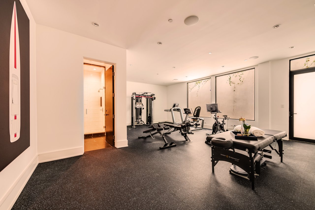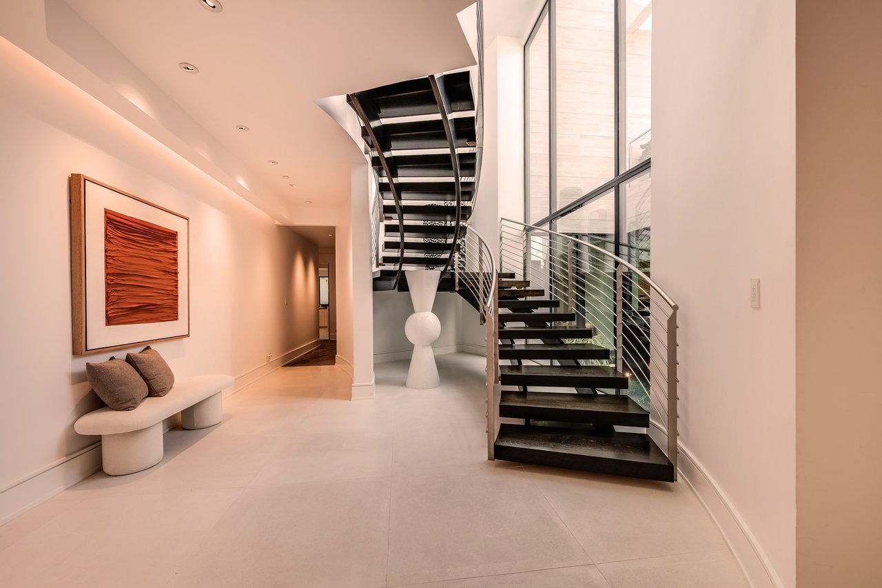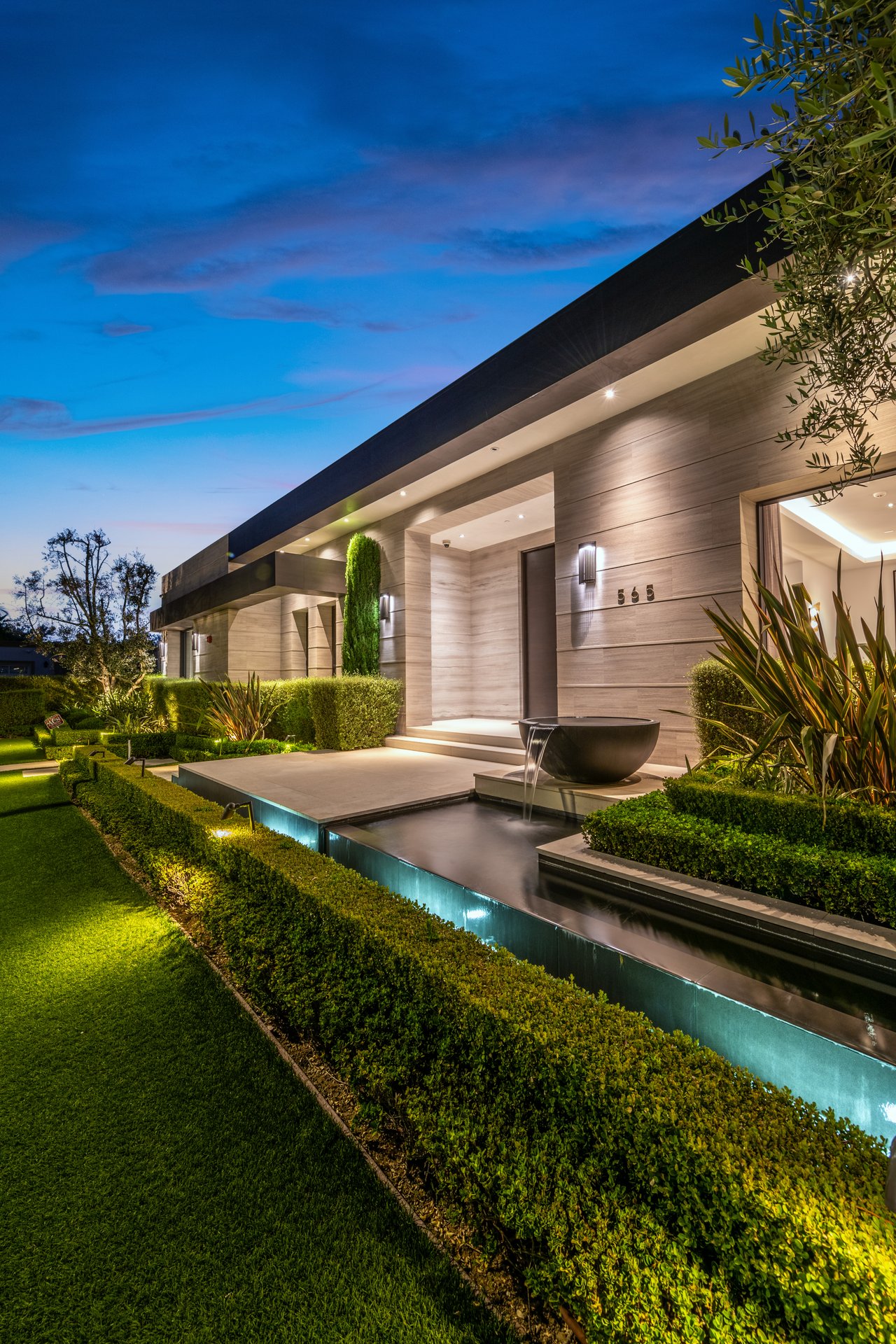Nestled in the heart of the legendary Trousdale Estates of Beverly Hills, 565 Evelyn Place is a custom-built modern architectural triumph that fuses precision craftsmanship with warm livability. Completed in 2017, this residence was envisioned as a statement of timeless contemporary design sculpted lines, dramatic volumes, and a seamless indoor-outdoor flow that celebrates the Southern California lifestyle. From the moment you approach, the home commands attention. Expansive glass openings frame serene water features, while the landscape unfolds in a series of intimate gardens and gathering spaces. Inside, natural light pours through open volumes, highlighting a sophisticated materials palette of walnut, limestone, and custom Italian marbles. A state-of-the-art lighting program offers pre-set ambient scenes, while Conrad electric shades provide effortless privacy and control.At the center of the home is a breathtaking Poggenpohl kitchen, clad in rare Borghini Carrara marble and meticulously outfitted for both passionate cooks and professional entertaining. Two Miele dishwashers, three integrated refrigerators, a full 60-inch range with steamer oven, a built-in coffee system, and three sinks allow for seamless culinary preparation. A discreet butler's pantry and a fully equipped second kitchen downstairs support large-scale entertaining while preserving the kitchen's sculptural elegance. Every living space has been designed for both intimacy and spectacle. The home features three dramatic wet bars with ice makers, a library wrapped in hand-painted wallpaper and custom walnut millwork, and a series of lounges anchored by bespoke fireplaces some leathered marble, others sculpted from specialty stone. The floor plan opens effortlessly to lush gardens and resort-inspired outdoor living, where a full kitchen with BBQ, stovetop, and ice maker joins a fireplace, integrated heaters, and tranquil fountains. A separate courtside stone entertaining area invites long, sunlit afternoons and evenings under the stars. The primary suite is a private sanctuary, featuring walnut floors, dual steam showers, heated bathroom floors, and exquisitely detailed Italian marble baths. Thoughtful luxuries such as a dedicated suite refrigerator elevate comfort to the highest level. Throughout the home, technology quietly enhances everyday living with Crestron whole-house control of lighting, climate, sound, and security. Additional comforts include a central vacuum system, a private elevator, and a five-car garage finished with the same level of detail as the living spaces. A custom-designed gym completes the experience, while water features and curated landscaping lend a sense of tranquility and escape. Every detail of 565 Evelyn Place reflects a passion for design and an uncompromising standard of craftsmanship. This is more than a home, it is a modern estate built for those who value artistry, innovation, and the enduring prestige of one of Beverly Hills' most sought-after enclaves.