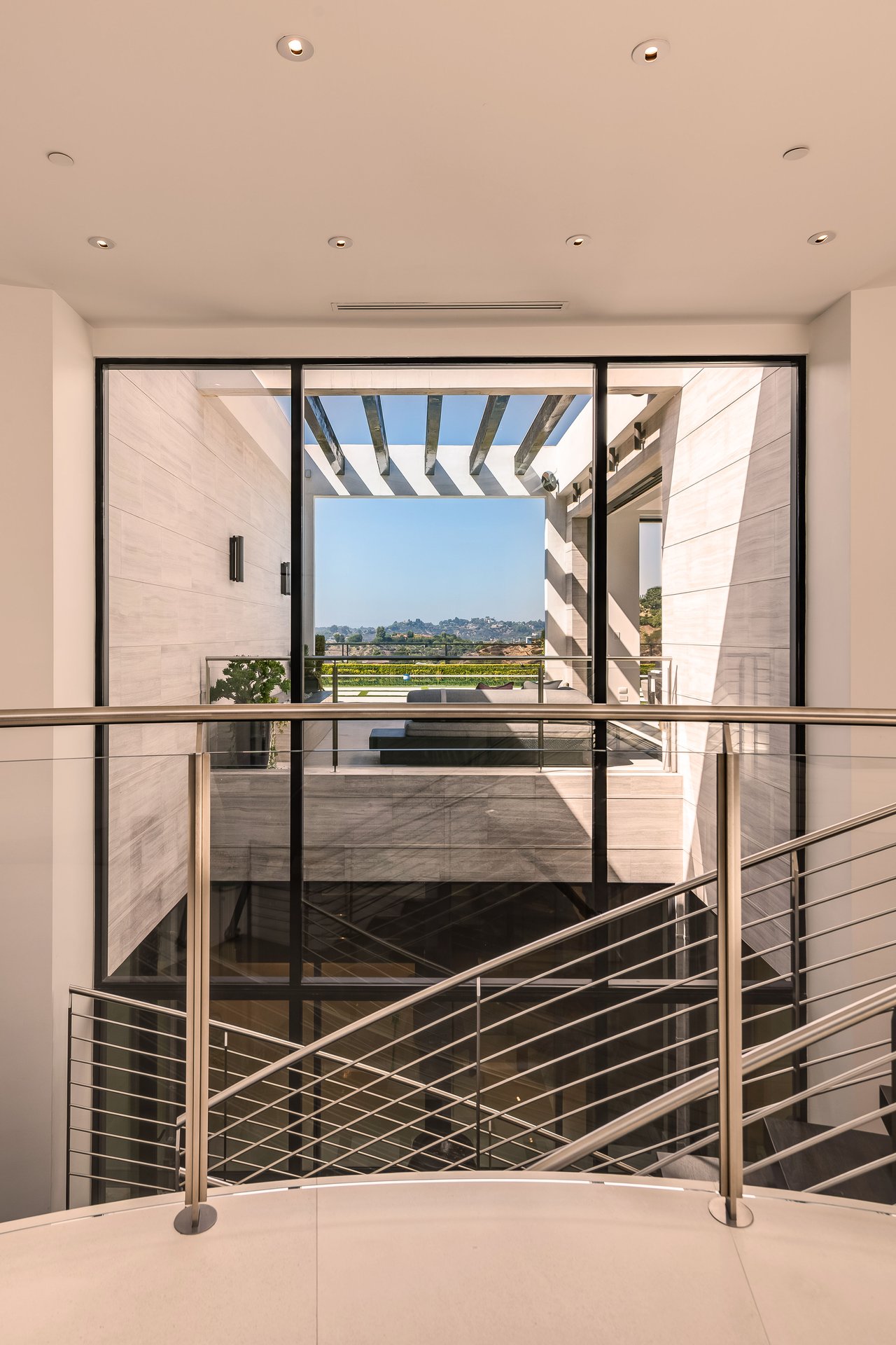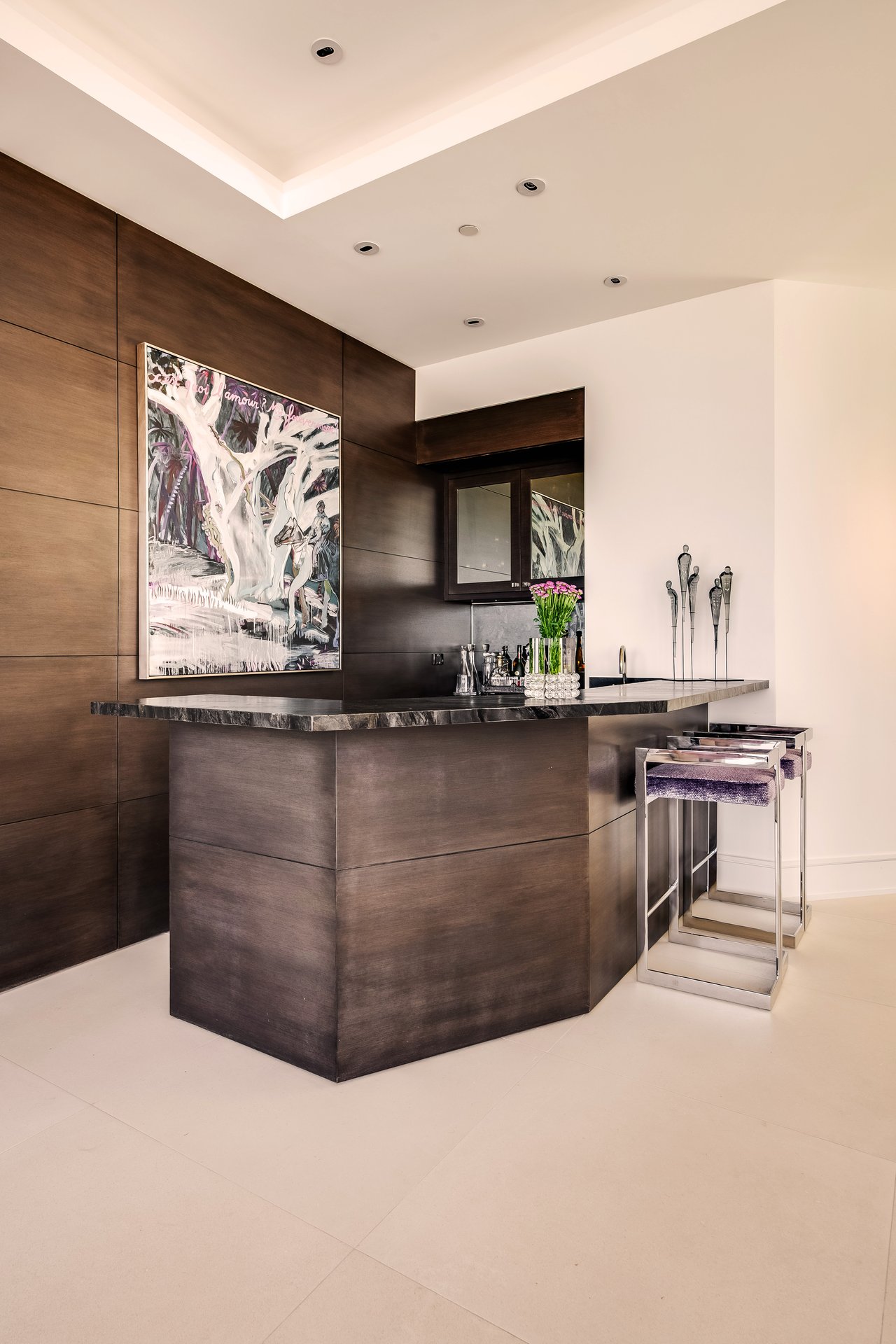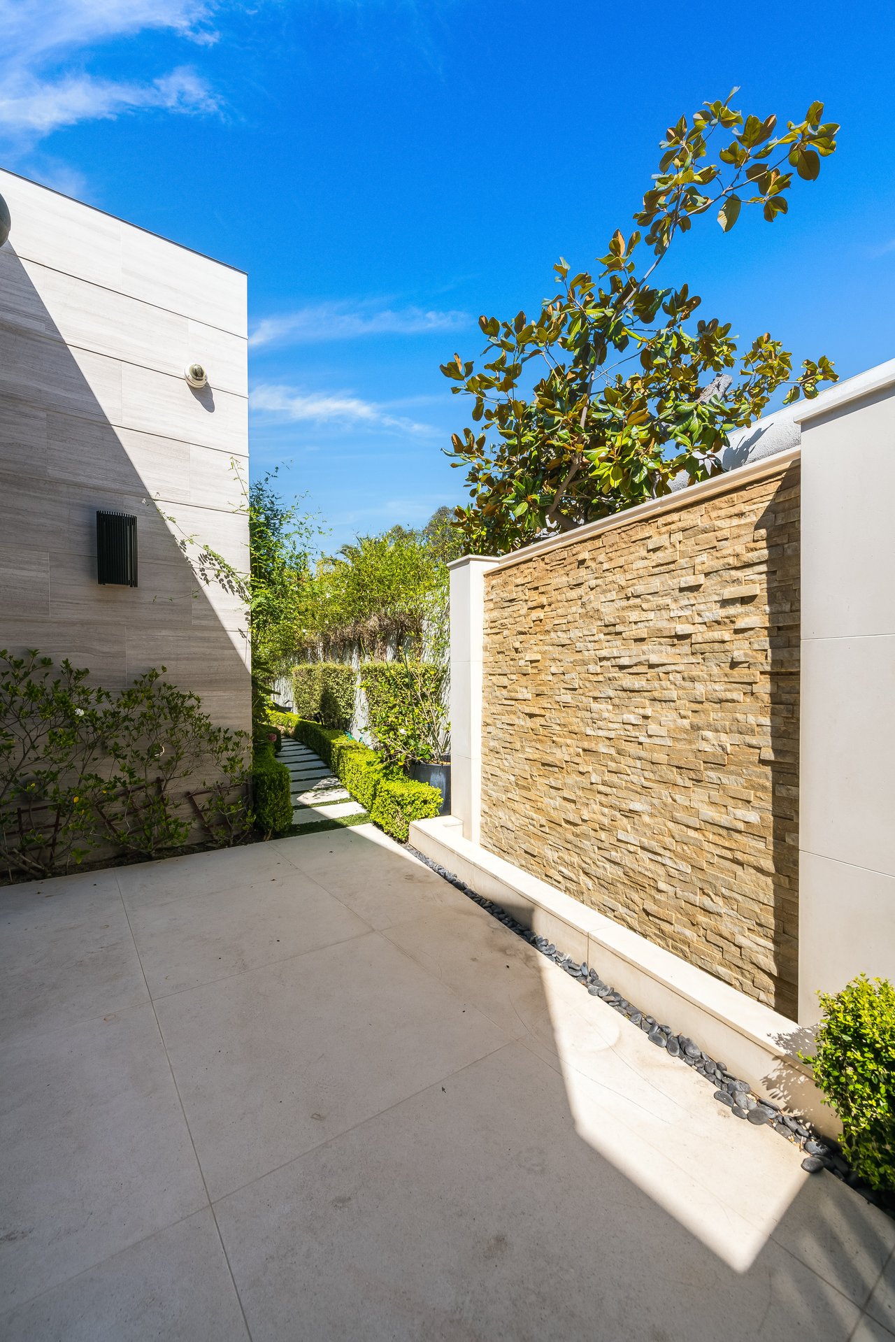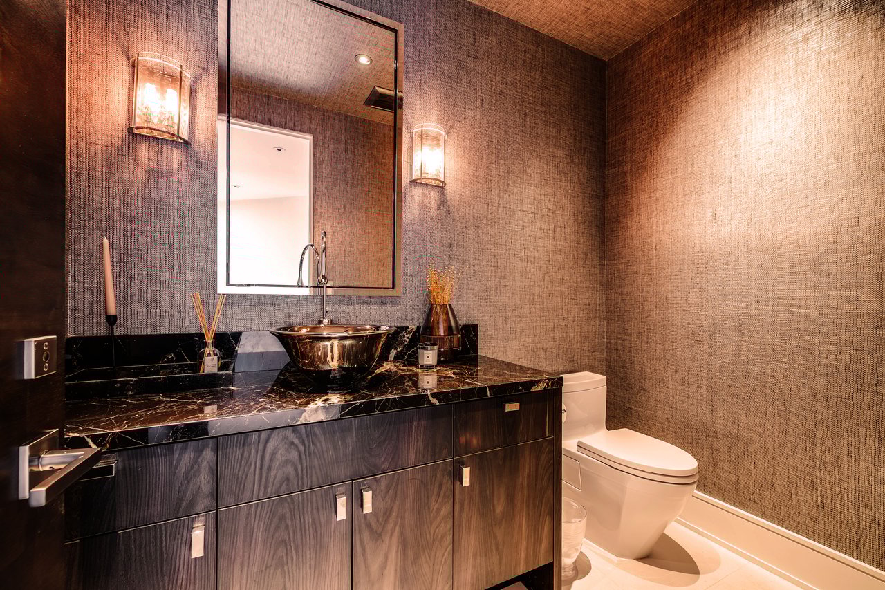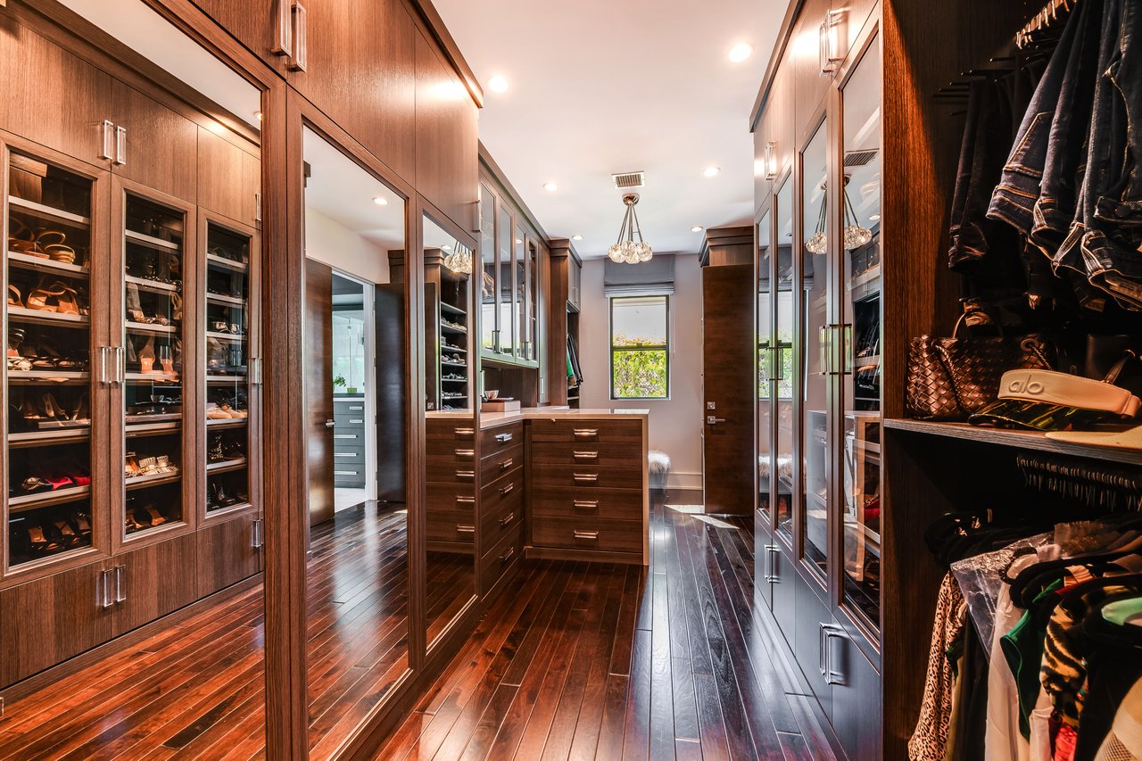 Nestled in the heart of the legendary Trousdale Estates of Beverly Hills, 565 Evelyn Place is a custom-built modern architectural triumph that fuses precision craftsmanship with warm livability. Completed in 2017, this residence was envisioned as a statement of timeless contemporary design sculpted lines, dramatic volumes, and a seamless indoor-outdoor flow that celebrates the Southern California lifestyle. From the moment you approach, the home commands attention. Expansive glass openings frame serene water features, while the landscape unfolds in a series of intimate gardens and gathering spaces. Inside, natural light pours through open volumes, highlighting a sophisticated materials palette of walnut, limestone, and custom Italian marbles. A state-of-the-art lighting program offers pre-set ambient scenes, while Conrad electric shades provide effortless privacy and control.At the center of the home is a breathtaking Poggenpohl kitchen, clad in rare Borghini Carrara marble and meticulously outfitted for both passionate cooks and professional entertaining. Two Miele dishwashers, three integrated refrigerators, a full 60-inch range with steamer oven, a built-in coffee system, and three sinks allow for seamless culinary preparation. A discreet butler's pantry and a fully equipped second kitchen downstairs support large-scale entertaining while preserving the kitchen's sculptural elegance. Every living space has been designed for both intimacy and spectacle. The home features three dramatic wet bars with ice makers, a library wrapped in hand-painted wallpaper and custom walnut millwork, and a series of lounges anchored by bespoke fireplaces some leathered marble, others sculpted from specialty stone. The floor plan opens effortlessly to lush gardens and resort-inspired outdoor living, where a full kitchen with BBQ, stovetop, and ice maker joins a fireplace, integrated heaters, and tranquil fountains. A separate courtside stone entertaining area invites long, sunlit afternoons and evenings under the stars. The primary suite is a private sanctuary, featuring walnut floors, dual steam showers, heated bathroom floors, and exquisitely detailed Italian marble baths. Thoughtful luxuries such as a dedicated suite refrigerator elevate comfort to the highest level. Throughout the home, technology quietly enhances everyday living with Crestron whole-house control of lighting, climate, sound, and security. Additional comforts include a central vacuum system, a private elevator, and a five-car garage finished with the same level of detail as the living spaces. A custom-designed gym completes the experience, while water features and curated landscaping lend a sense of tranquility and escape. Every detail of 565 Evelyn Place reflects a passion for design and an uncompromising standard of craftsmanship. This is more than a home, it is a modern estate built for those who value artistry, innovation, and the enduring prestige of one of Beverly Hills' most sought-after enclaves.