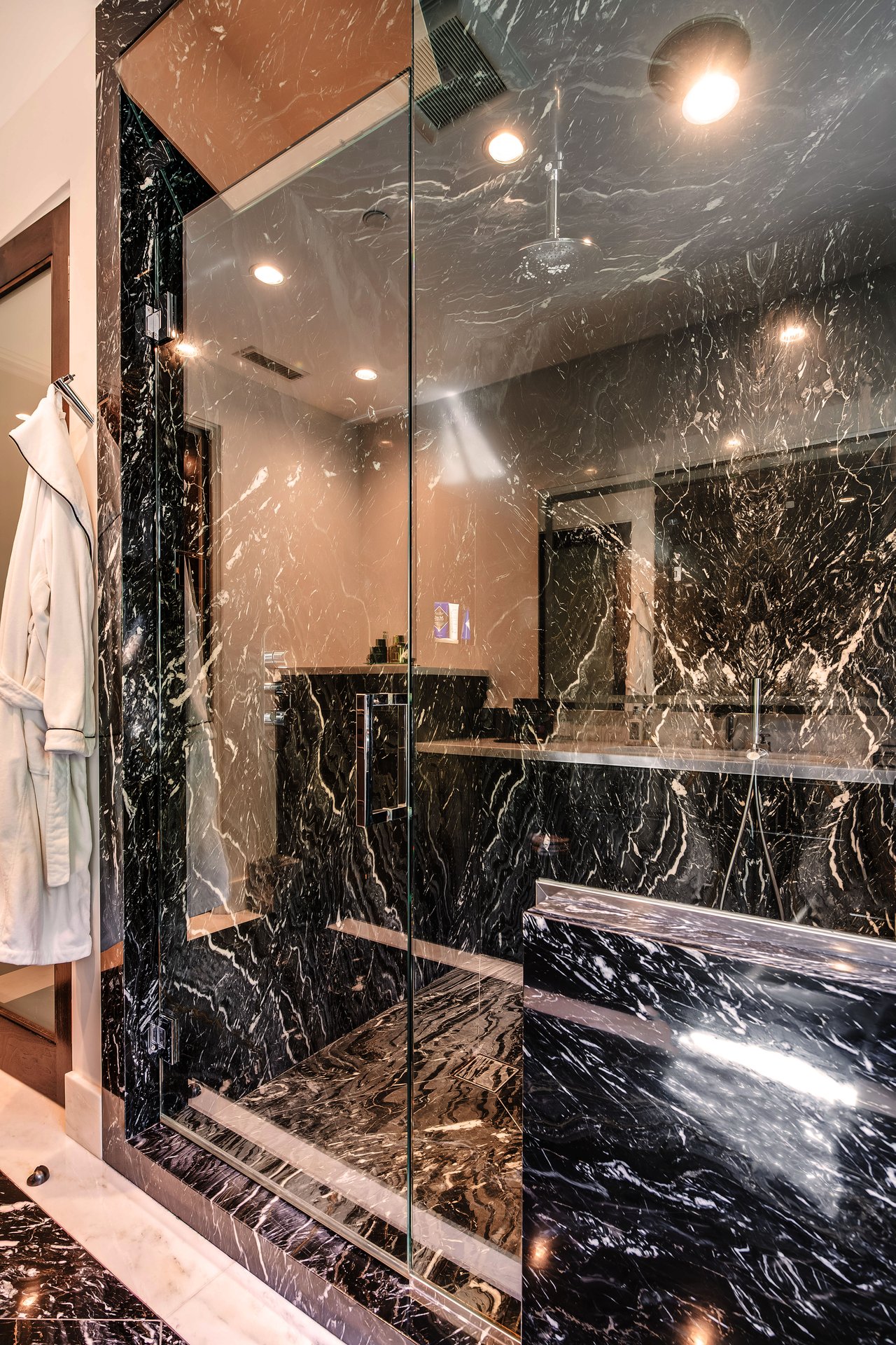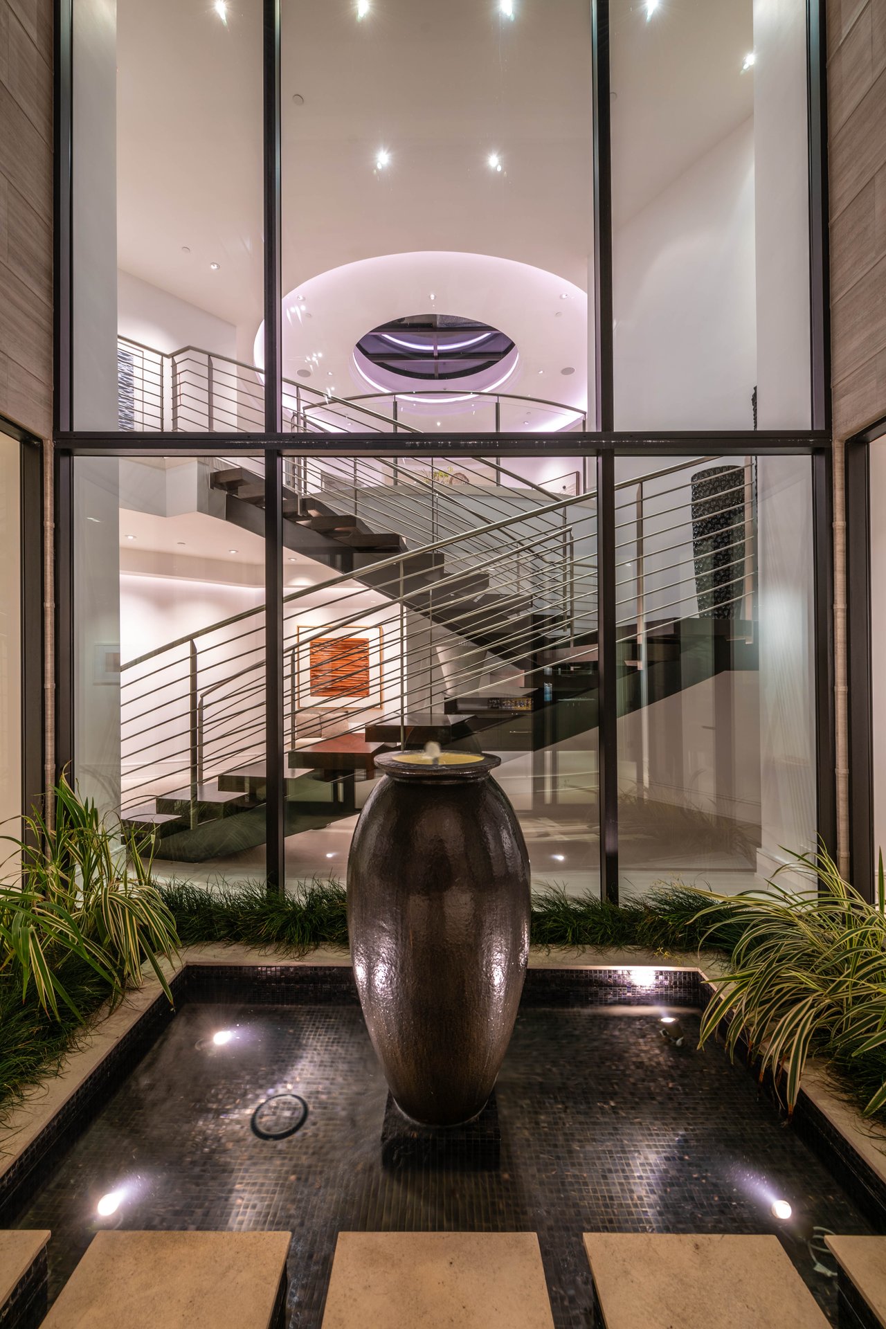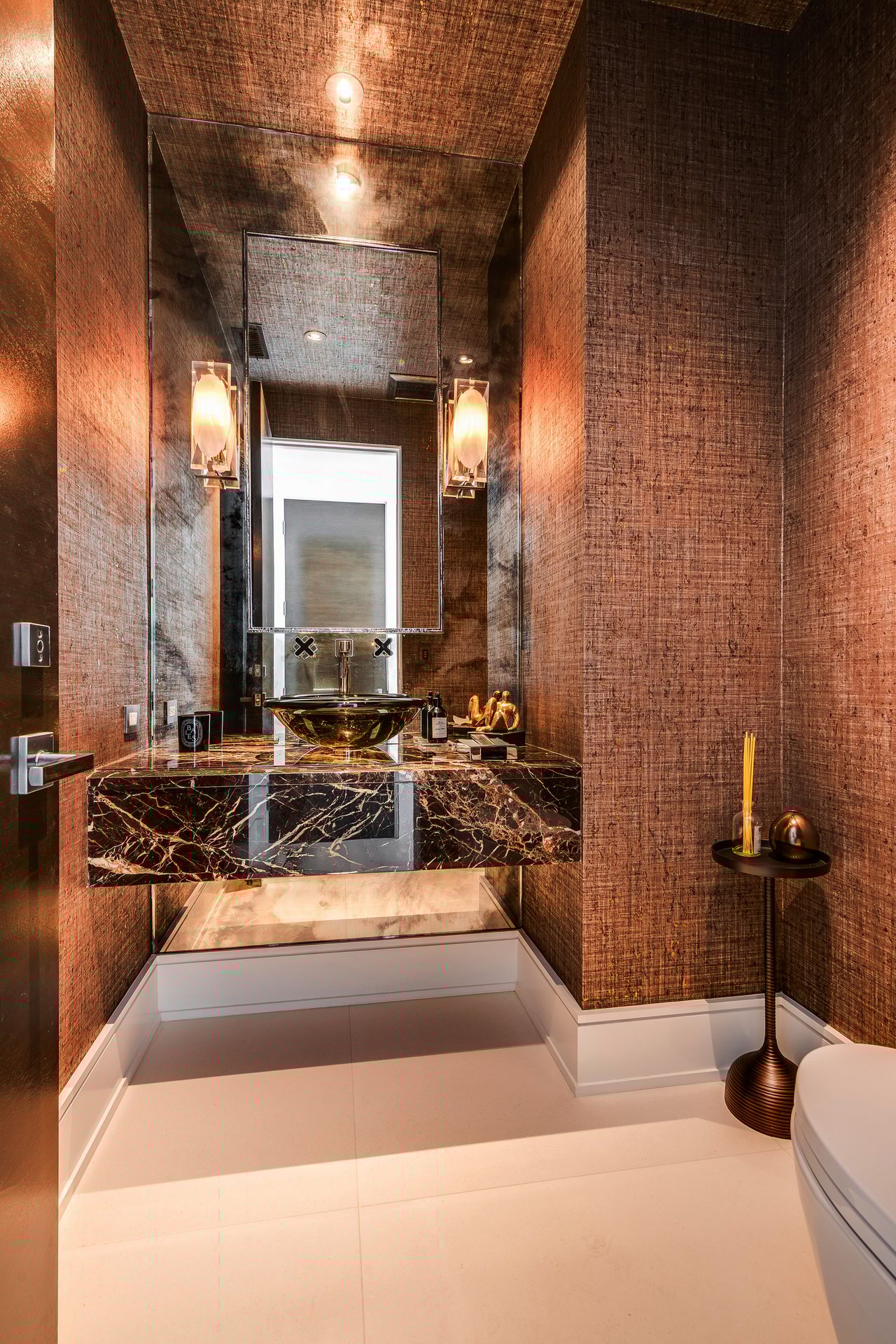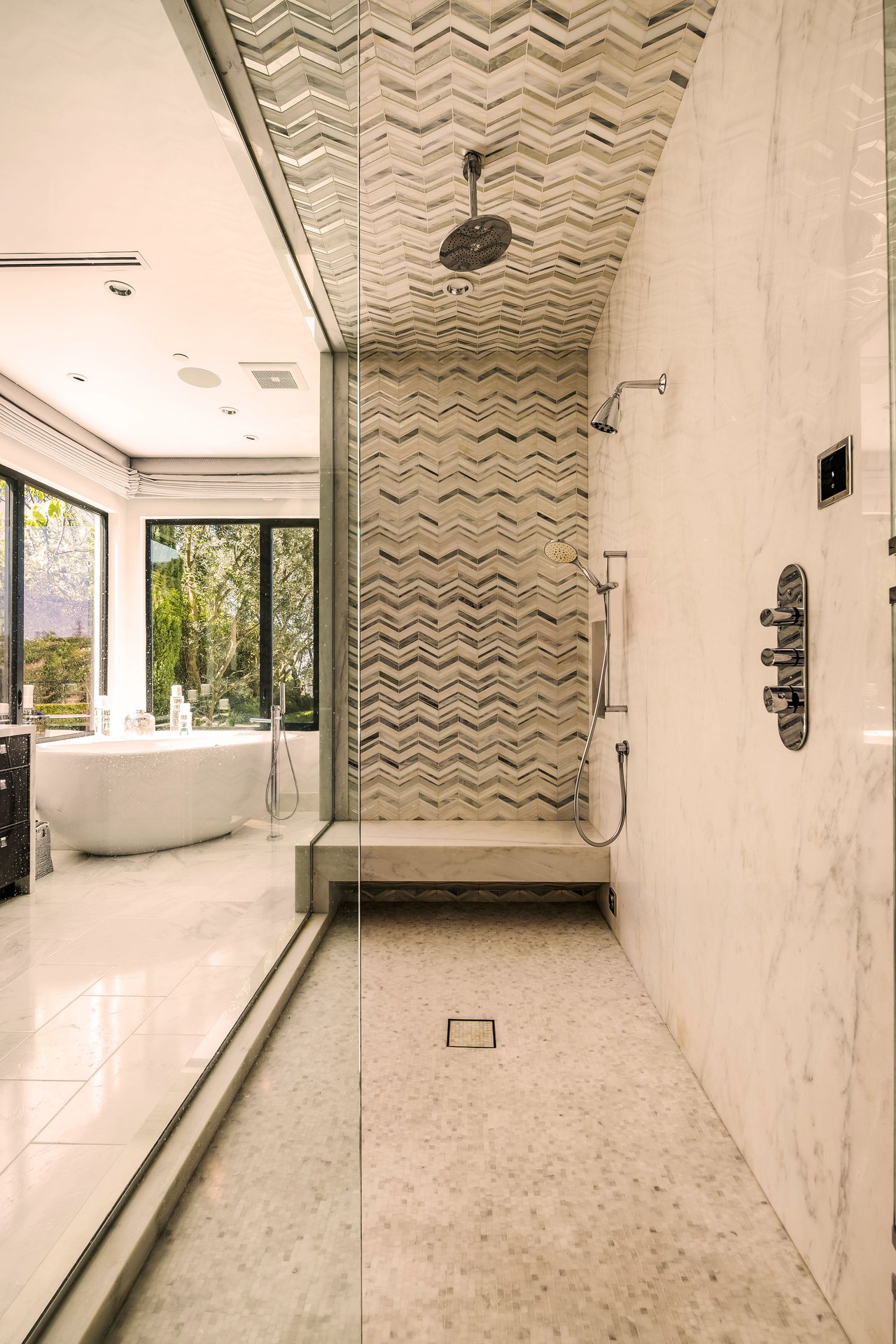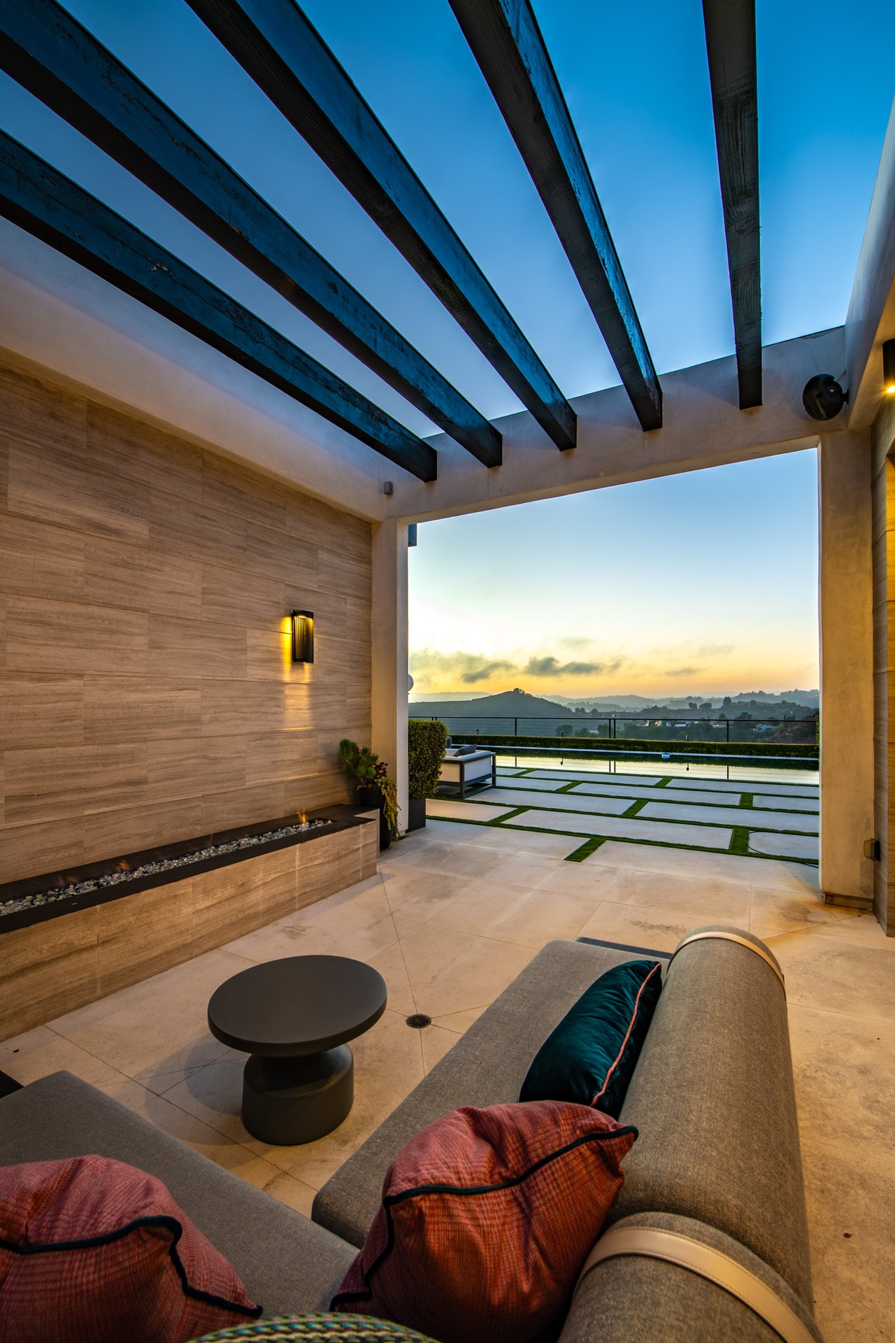 Nestled in the heart of the legendary Trousdale Estates of Beverly Hills, 565 Evelyn Place is a custom-built modern architectural triumph that fuses precision craftsmanship with warm livability. Completed in 2017, this residence was envisioned as a statement of timeless contemporary design sculpted lines, dramatic volumes, and a seamless indoor-outdoor flow that celebrates the Southern California lifestyle. From the moment you approach, the home commands attention. Expansive glass openings frame serene water features, while the landscape unfolds in a series of intimate gardens and gathering spaces. Inside, natural light pours through open volumes, highlighting a sophisticated materials palette of walnut, limestone, and custom Italian marbles. A state-of-the-art lighting program offers pre-set ambient scenes, while Conrad electric shades provide effortless privacy and control.At the center of the home is a breathtaking Poggenpohl kitchen, clad in rare Borghini Carrara marble and meticulously outfitted for both passionate cooks and professional entertaining. Two Miele dishwashers, three integrated refrigerators, a full 60-inch range with steamer oven, a built-in coffee system, and three sinks allow for seamless culinary preparation. A discreet butler's pantry and a fully equipped second kitchen downstairs support large-scale entertaining while preserving the kitchen's sculptural elegance. Every living space has been designed for both intimacy and spectacle. The home features three dramatic wet bars with ice makers, a library wrapped in hand-painted wallpaper and custom walnut millwork, and a series of lounges anchored by bespoke fireplaces some leathered marble, others sculpted from specialty stone. The floor plan opens effortlessly to lush gardens and resort-inspired outdoor living, where a full kitchen with BBQ, stovetop, and ice maker joins a fireplace, integrated heaters, and tranquil fountains. A separate courtside stone entertaining area invites long, sunlit afternoons and evenings under the stars. The primary suite is a private sanctuary, featuring walnut floors, dual steam showers, heated bathroom floors, and exquisitely detailed Italian marble baths. Thoughtful luxuries such as a dedicated suite refrigerator elevate comfort to the highest level. Throughout the home, technology quietly enhances everyday living with Crestron whole-house control of lighting, climate, sound, and security. Additional comforts include a central vacuum system, a private elevator, and a five-car garage finished with the same level of detail as the living spaces. A custom-designed gym completes the experience, while water features and curated landscaping lend a sense of tranquility and escape. Every detail of 565 Evelyn Place reflects a passion for design and an uncompromising standard of craftsmanship. This is more than a home, it is a modern estate built for those who value artistry, innovation, and the enduring prestige of one of Beverly Hills' most sought-after enclaves.