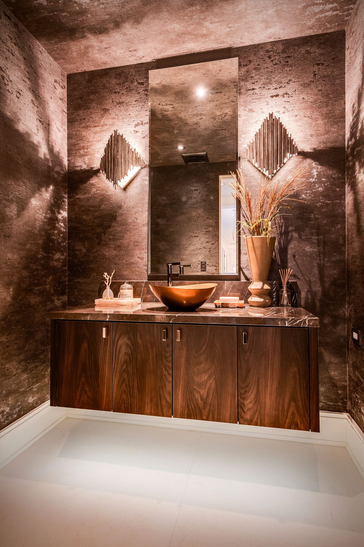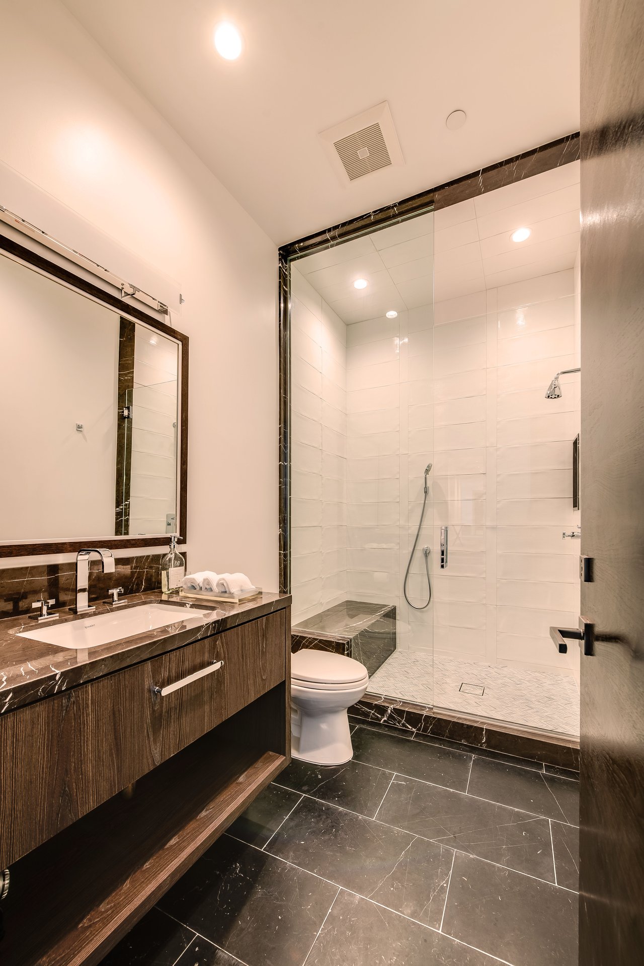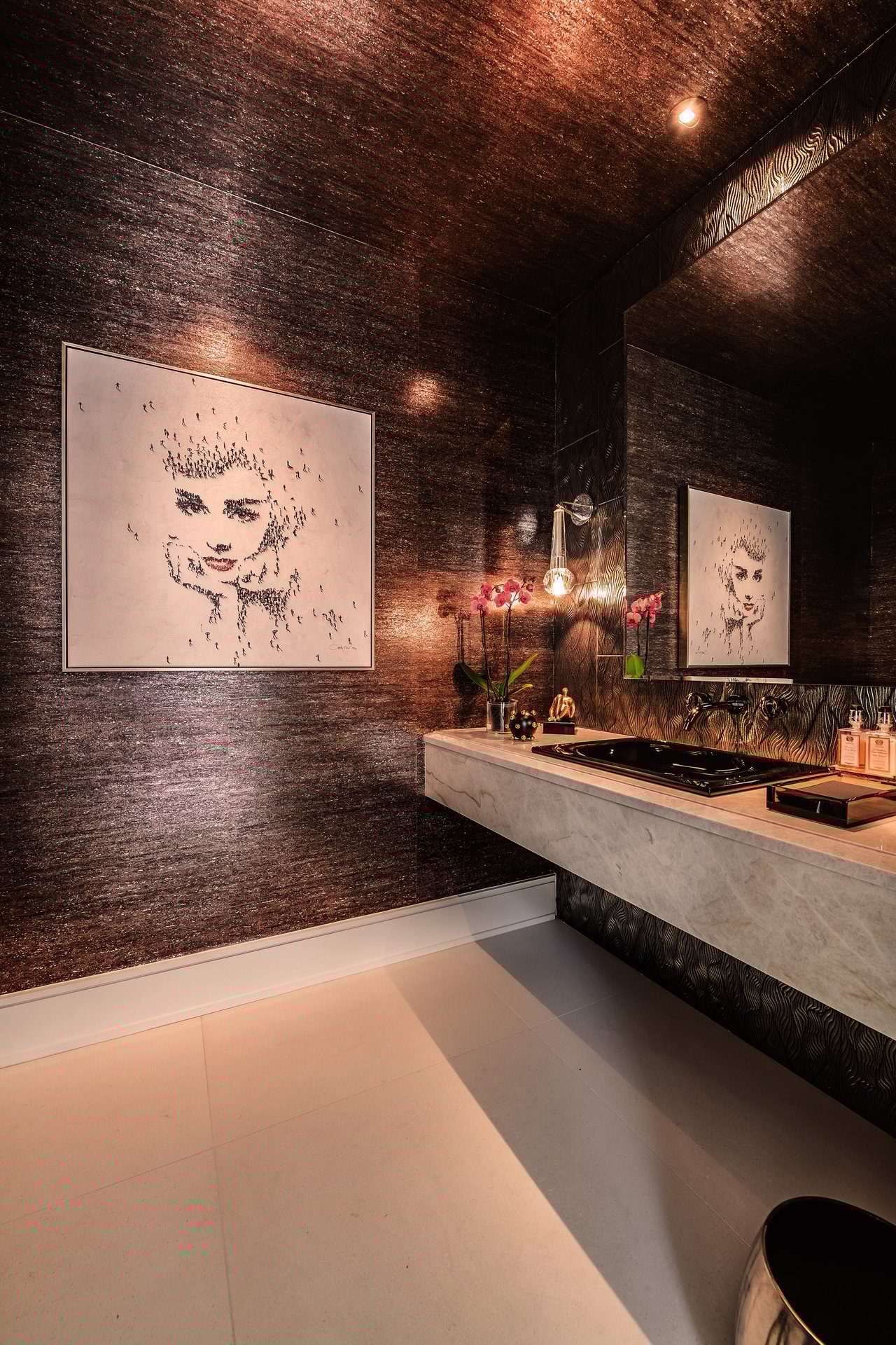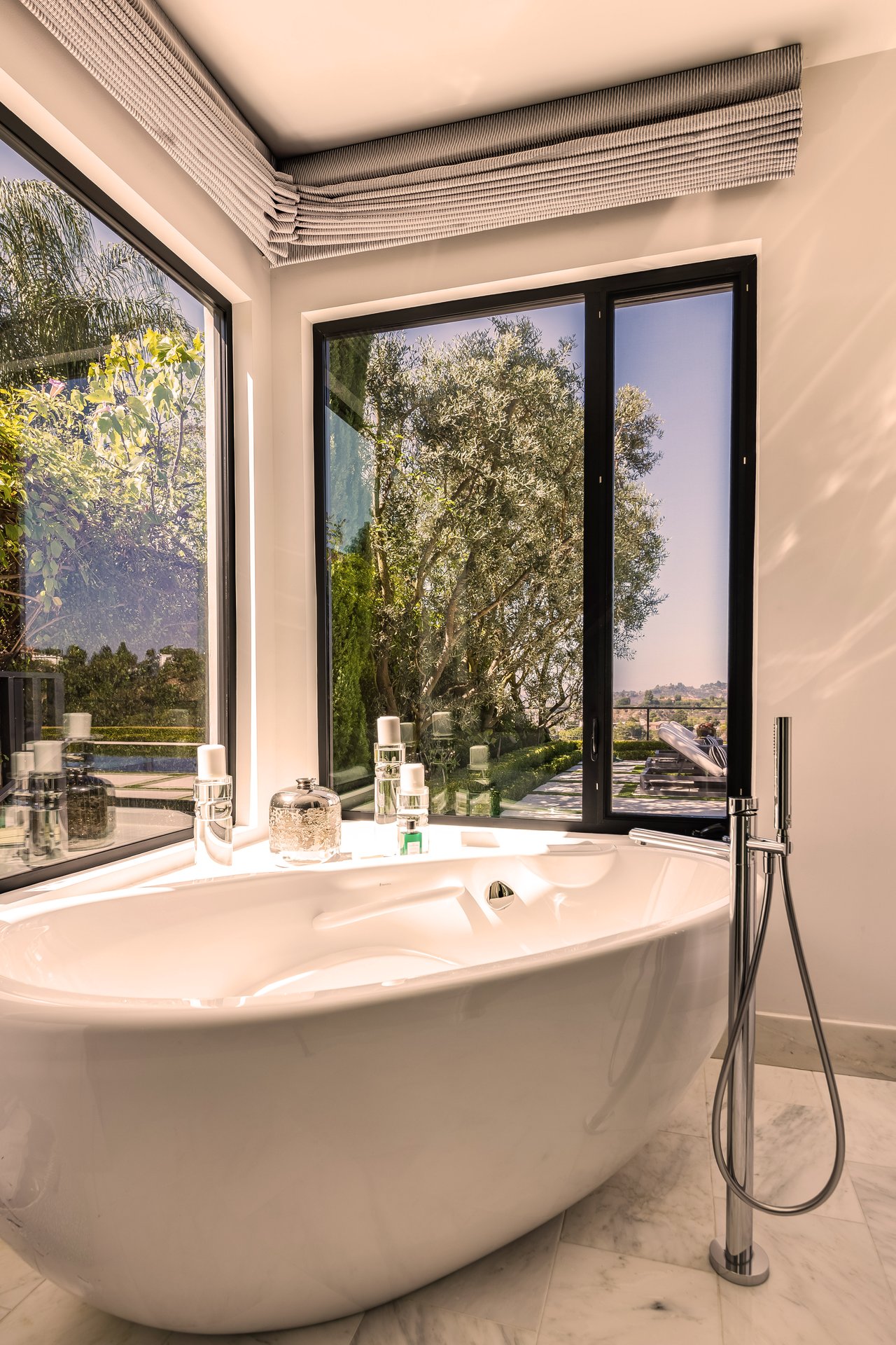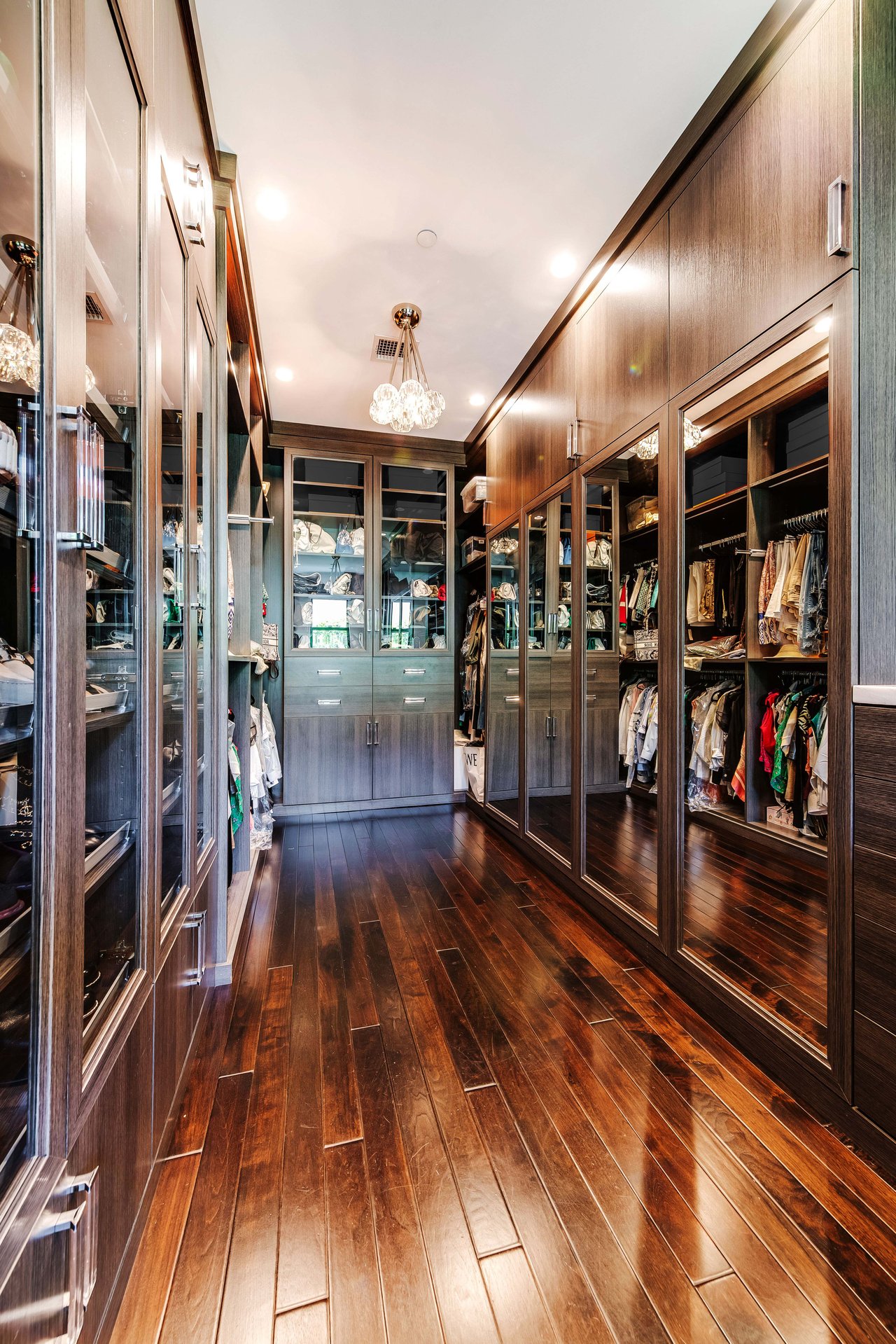 Nestled in the heart of the legendary Trousdale Estates of Beverly Hills, 565 Evelyn Place is a custom-built modern architectural triumph that fuses precision craftsmanship with warm livability. Completed in 2017, this residence was envisioned as a statement of timeless contemporary design sculpted lines, dramatic volumes, and a seamless indoor-outdoor flow that celebrates the Southern California lifestyle. From the moment you approach, the home commands attention. Expansive glass openings frame serene water features, while the landscape unfolds in a series of intimate gardens and gathering spaces. Inside, natural light pours through open volumes, highlighting a sophisticated materials palette of walnut, limestone, and custom Italian marbles. A state-of-the-art lighting program offers pre-set ambient scenes, while Conrad electric shades provide effortless privacy and control.At the center of the home is a breathtaking Poggenpohl kitchen, clad in rare Borghini Carrara marble and meticulously outfitted for both passionate cooks and professional entertaining. Two Miele dishwashers, three integrated refrigerators, a full 60-inch range with steamer oven, a built-in coffee system, and three sinks allow for seamless culinary preparation. A discreet butler's pantry and a fully equipped second kitchen downstairs support large-scale entertaining while preserving the kitchen's sculptural elegance. Every living space has been designed for both intimacy and spectacle. The home features three dramatic wet bars with ice makers, a library wrapped in hand-painted wallpaper and custom walnut millwork, and a series of lounges anchored by bespoke fireplaces some leathered marble, others sculpted from specialty stone. The floor plan opens effortlessly to lush gardens and resort-inspired outdoor living, where a full kitchen with BBQ, stovetop, and ice maker joins a fireplace, integrated heaters, and tranquil fountains. A separate courtside stone entertaining area invites long, sunlit afternoons and evenings under the stars. The primary suite is a private sanctuary, featuring walnut floors, dual steam showers, heated bathroom floors, and exquisitely detailed Italian marble baths. Thoughtful luxuries such as a dedicated suite refrigerator elevate comfort to the highest level. Throughout the home, technology quietly enhances everyday living with Crestron whole-house control of lighting, climate, sound, and security. Additional comforts include a central vacuum system, a private elevator, and a five-car garage finished with the same level of detail as the living spaces. A custom-designed gym completes the experience, while water features and curated landscaping lend a sense of tranquility and escape. Every detail of 565 Evelyn Place reflects a passion for design and an uncompromising standard of craftsmanship. This is more than a home, it is a modern estate built for those who value artistry, innovation, and the enduring prestige of one of Beverly Hills' most sought-after enclaves.