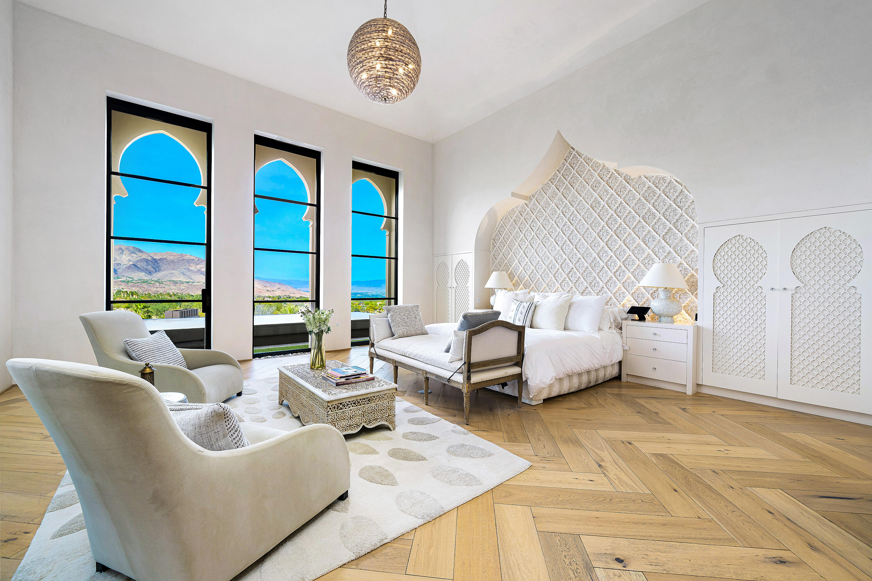Welcome to Casbah Cove -- a Moroccan-inspired architectural masterpiece featuring a retractable glass roof system to be showcased on the winter cover of Unique Homes Magazine. Perched high within the prestigious gates of BIGHORN Golf Club, this extraordinary estate blends global sophistication with the serenity of the desert landscape. Designed for the most discerning buyer, the home offers complete privacy, timeless design, and breathtaking views of the surrounding mountains and sparkling city lights.The moment you step inside, you feel transported -- surrounded by warmth, beauty, and soul. Every curve, every tile, every beam of light feels intentional, like the home itself is telling a story. It is a place that captures your heart the moment you see it. Every space reveals thoughtful design and artistry, making it feel as though you're living inside a piece of art.At the heart of the residence lies a dramatic open-air courtyard crowned by an automated retractable glass roof, allowing you to dine, relax, or entertain under the stars with the touch of a button. The seamless connection between indoor and outdoor living continues with two resort-style swimming pools -- a 75-foot lap pool and a circular lounging pool -- plus two spas, tranquil water features, and multiple terraces perfect for both sun and shade.The main home features three spacious ensuite bedrooms and a versatile bonus room, while a detached guest house offers a private fourth suite for visitors. Additional highlights include a custom wine cellar, a spa-inspired steam shower, a gourmet kitchen designed for both grand entertaining and intimate gatherings, and multiple fireplaces for year-round ambiance.Ideally located moments from BIGHORN's Canyon Steakhouse and minutes from El Paseo's luxury shopping, fine dining, and art galleries. Residents enjoy access to championship golf, a state-of-the-art wellness center, a world-class spa, concierge services, and an active social lifestyle.Casbah Cove is more