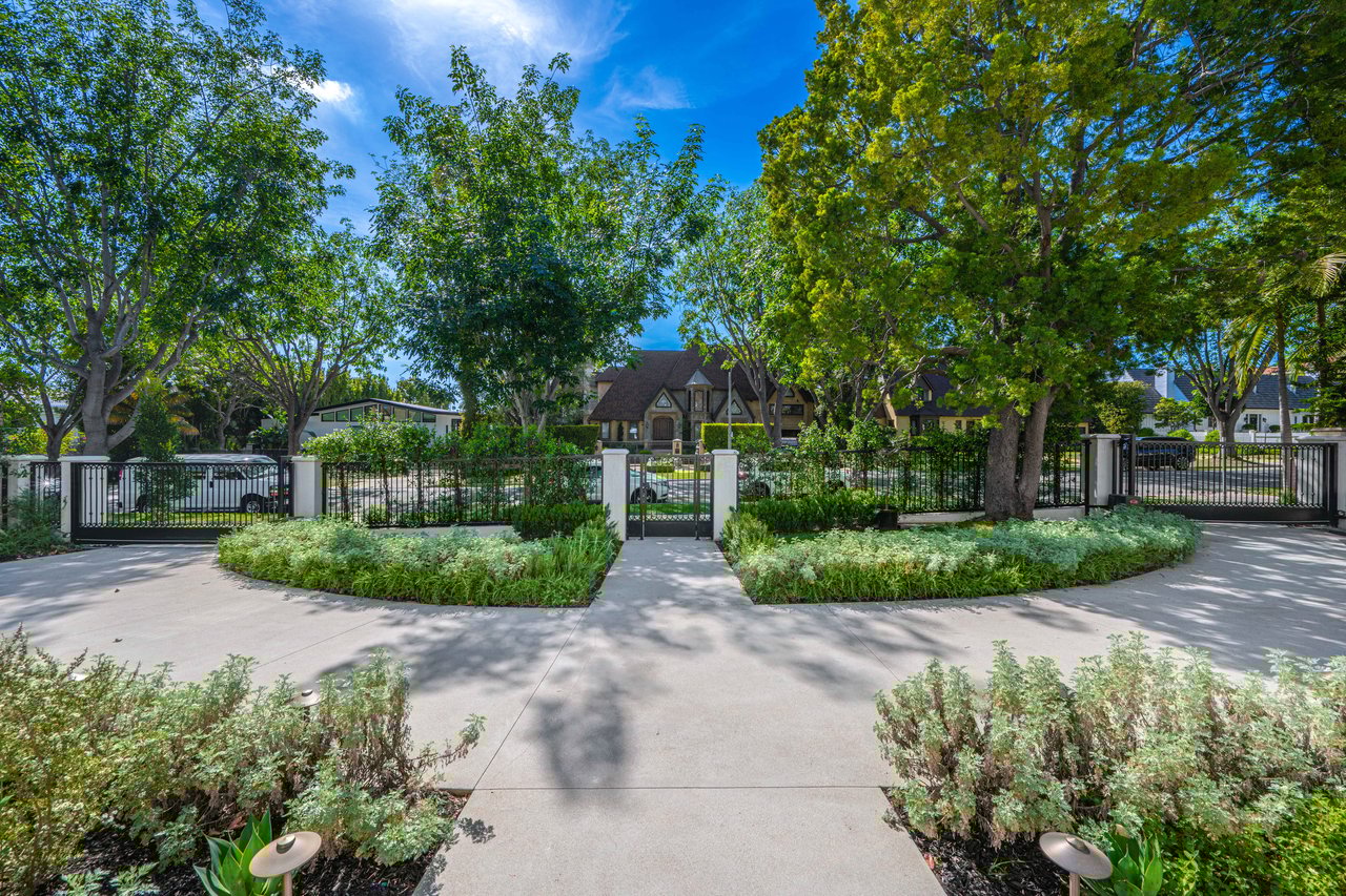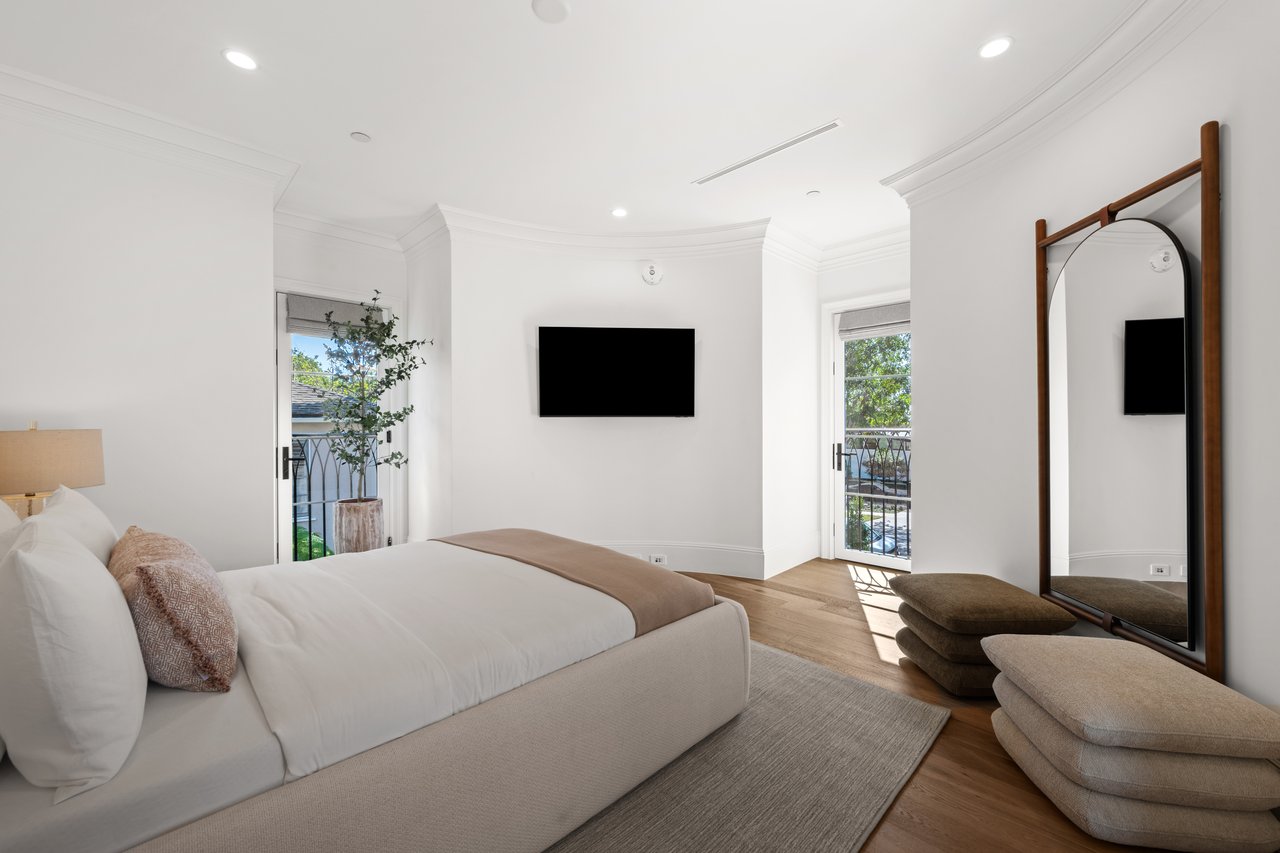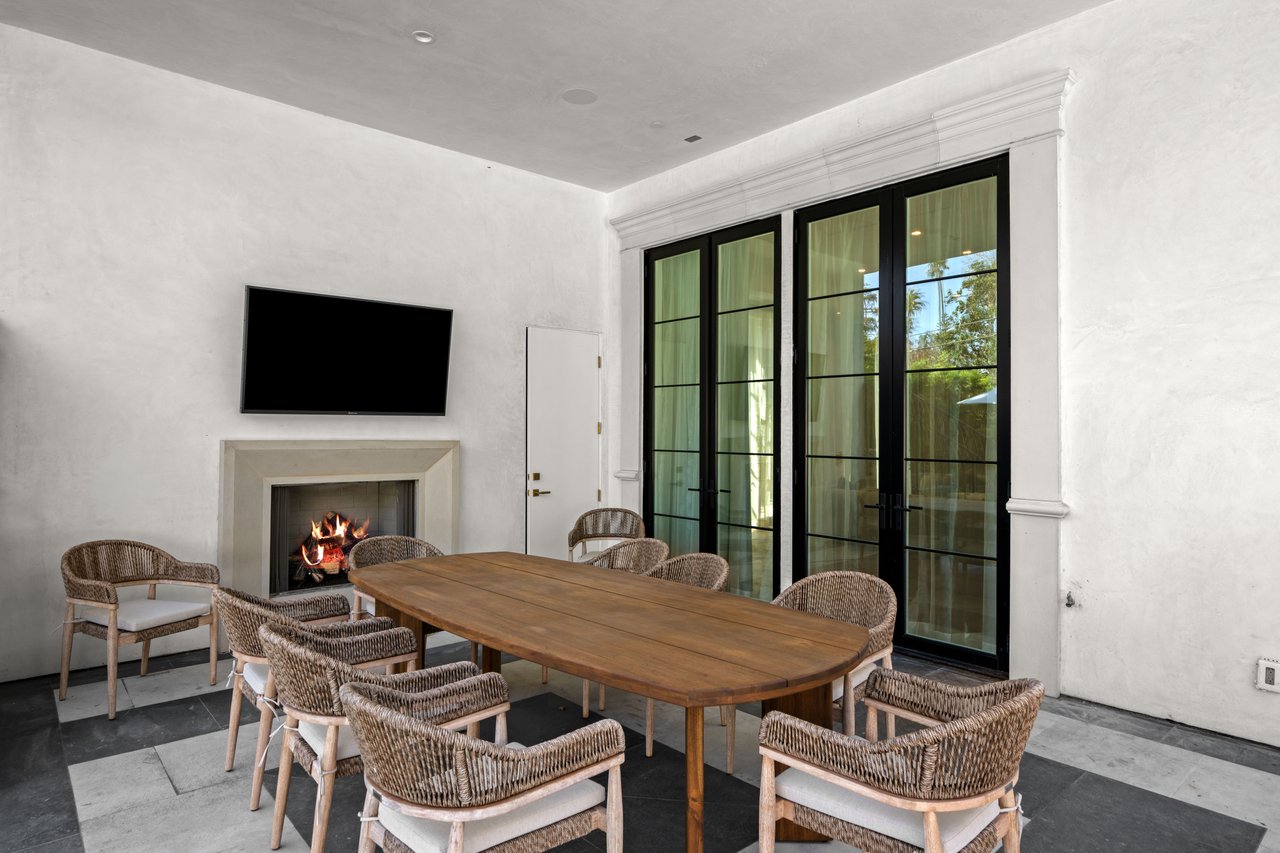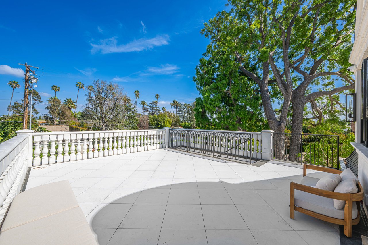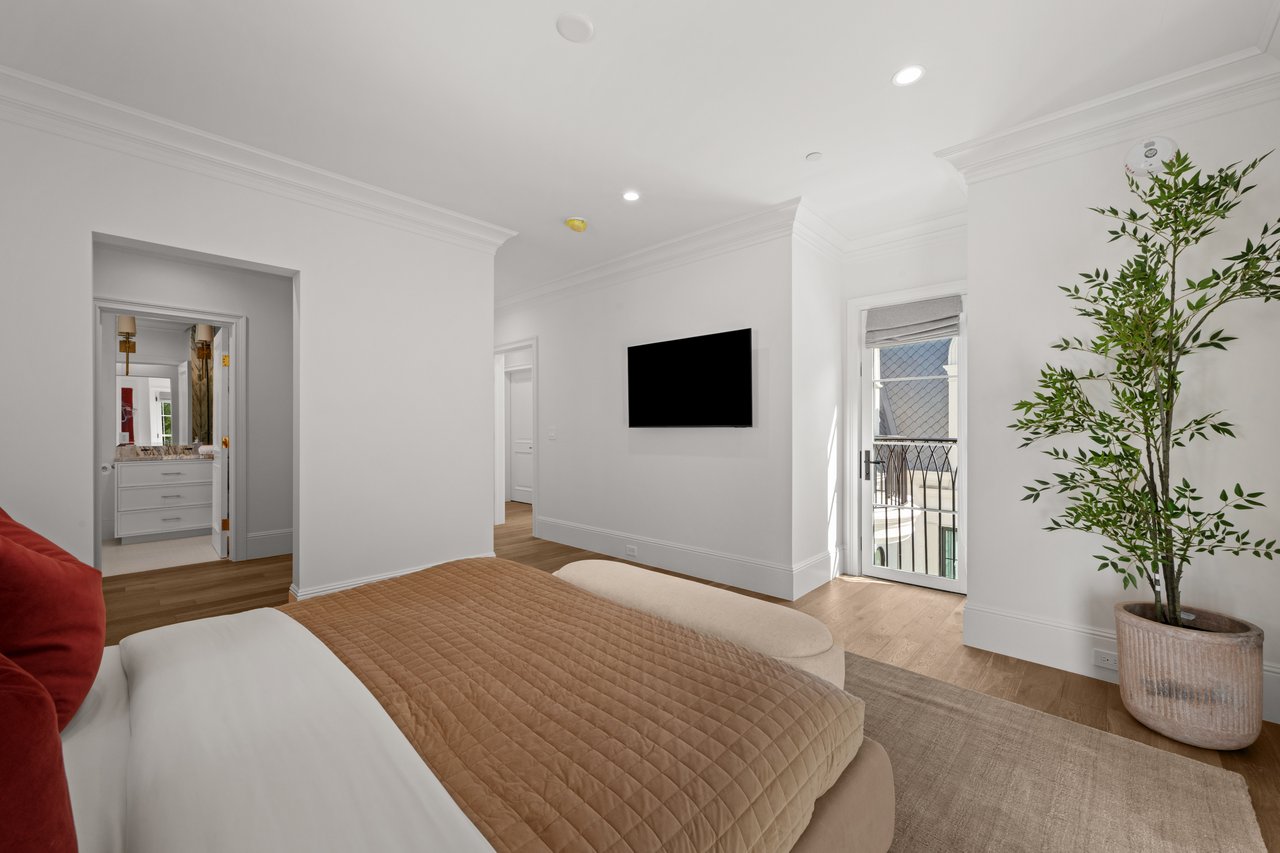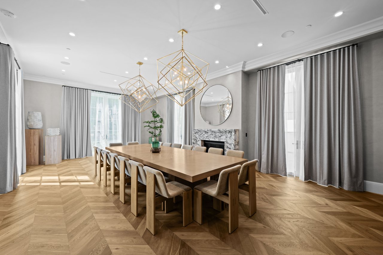 Newly built and fully furnished, this extraordinary Beverly Hills estate spans over 14,000 square feet across three levels, offering 8 bedrooms, 12 bathrooms, a private elevator, and a gated subterranean 10-car garage. A dramatic bridge entry creates a striking sense of arrival, while also allowing natural light to cascade into the lower level below. Defined by architectural elegance and exceptional custom craftsmanship, the home features select white oak flooring, Venetian plaster walls, bespoke lighting, a grand staircase, and a dramatic skylight. The formal dining room and showpiece kitchen are finished in exquisite Calacatta Viola stone, with the kitchen further appointed with Sub-Zero refrigeration, Wolf appliances, a Waterstone faucet, and custom cabinetry throughout. Thoughtfully designed for both refined entertaining and comfortable daily living, the residence includes a formal living room with bar, a den with a see-through fireplace, a richly finished paneled office, theater, and expansive lower-level entertainment spaces. All eight bedrooms offer en-suite baths and closets, including a stunning primary suite with dual bathrooms, dual walk-in closets, and a large private patio. Outdoors, a beautifully symmetrical infinity pool and jacuzzi align with the home’s central axis, complemented by an outdoor fireplace and beautifully designed terraces. With a second pool and jacuzzi on the lower level, curated furnishings, original art, and bespoke finishes throughout, this is a rare offering of scale, warmth, and modern luxury in one of Beverly Hills’ most coveted settings.