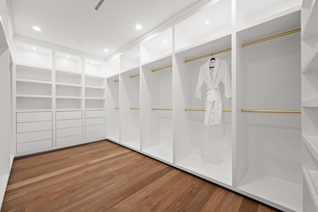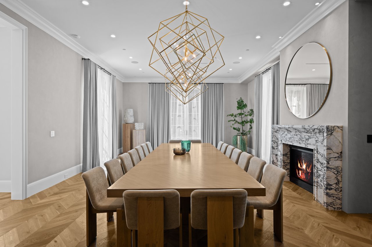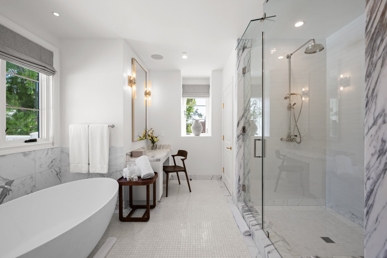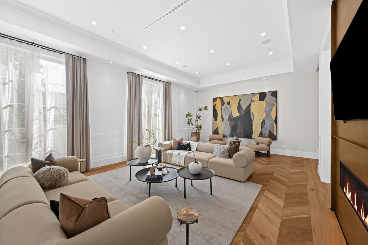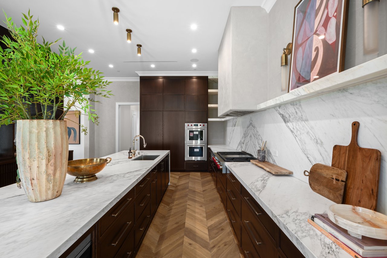Newly built and fully furnished, this extraordinary Beverly Hills estate spans over 14,000 square feet across three levels, offering 8 bedrooms, 12 bathrooms, a private elevator, and a gated subterranean 10-car garage. A dramatic bridge entry creates a striking sense of arrival, while also allowing natural light to cascade into the lower level below. Defined by architectural elegance and exceptional custom craftsmanship, the home features select white oak flooring, Venetian plaster walls, bespoke lighting, a grand staircase, and a dramatic skylight. The formal dining room and showpiece kitchen are finished in exquisite Calacatta Viola stone, with the kitchen further appointed with Sub-Zero refrigeration, Wolf appliances, a Waterstone faucet, and custom cabinetry throughout. Thoughtfully designed for both refined entertaining and comfortable daily living, the residence includes a formal living room with bar, a den with a see-through fireplace, a richly finished paneled office, theater, and expansive lower-level entertainment spaces. All eight bedrooms offer en-suite baths and closets, including a stunning primary suite with dual bathrooms, dual walk-in closets, and a large private patio. Outdoors, a beautifully symmetrical infinity pool and jacuzzi align with the home’s central axis, complemented by an outdoor fireplace and beautifully designed terraces. With a second pool and jacuzzi on the lower level, curated furnishings, original art, and bespoke finishes throughout, this is a rare offering of scale, warmth, and modern luxury in one of Beverly Hills’ most coveted settings.