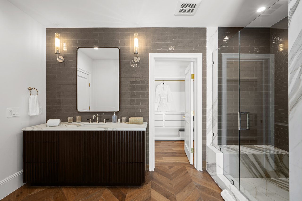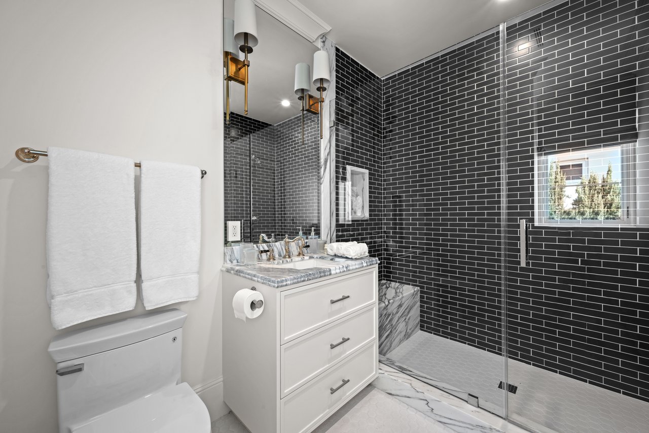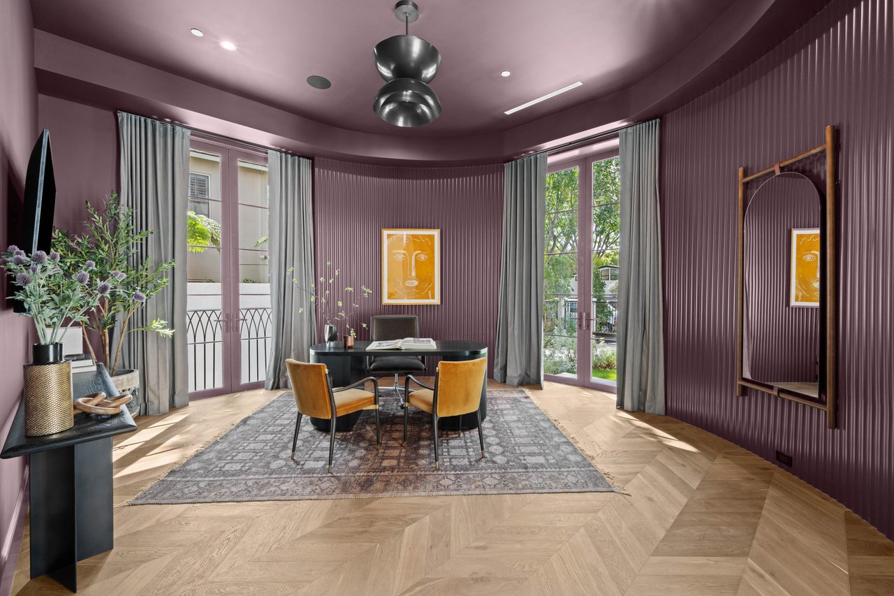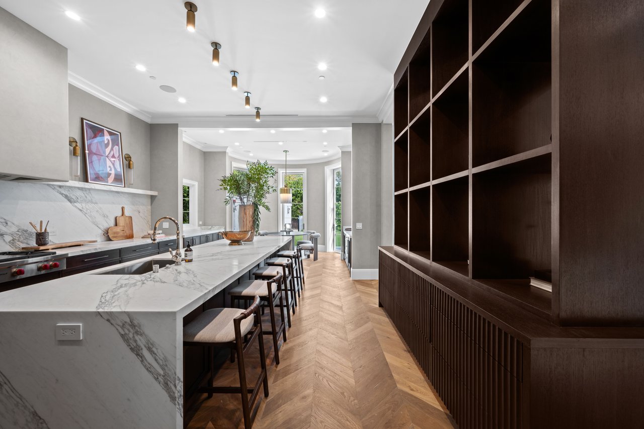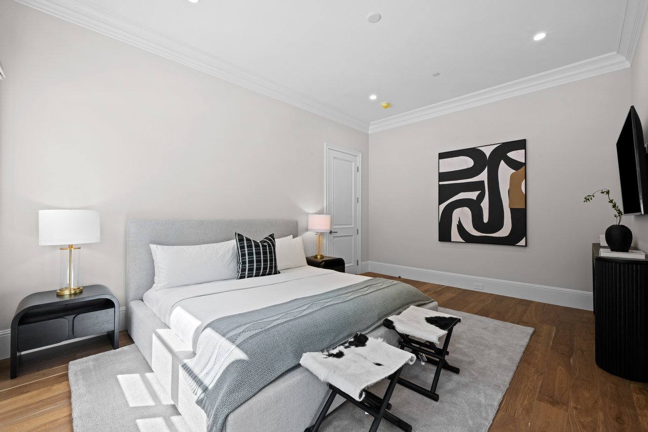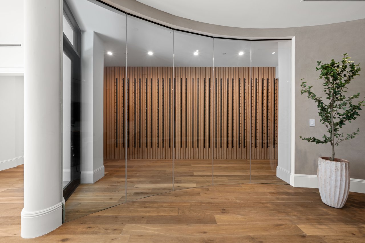 Newly built and fully furnished, this extraordinary Beverly Hills estate spans over 14,000 square feet across three levels, offering 8 bedrooms, 12 bathrooms, a private elevator, and a gated subterranean 10-car garage. A dramatic bridge entry creates a striking sense of arrival, while also allowing natural light to cascade into the lower level below. Defined by architectural elegance and exceptional custom craftsmanship, the home features select white oak flooring, Venetian plaster walls, bespoke lighting, a grand staircase, and a dramatic skylight. The formal dining room and showpiece kitchen are finished in exquisite Calacatta Viola stone, with the kitchen further appointed with Sub-Zero refrigeration, Wolf appliances, a Waterstone faucet, and custom cabinetry throughout. Thoughtfully designed for both refined entertaining and comfortable daily living, the residence includes a formal living room with bar, a den with a see-through fireplace, a richly finished paneled office, theater, and expansive lower-level entertainment spaces. All eight bedrooms offer en-suite baths and closets, including a stunning primary suite with dual bathrooms, dual walk-in closets, and a large private patio. Outdoors, a beautifully symmetrical infinity pool and jacuzzi align with the home’s central axis, complemented by an outdoor fireplace and beautifully designed terraces. With a second pool and jacuzzi on the lower level, curated furnishings, original art, and bespoke finishes throughout, this is a rare offering of scale, warmth, and modern luxury in one of Beverly Hills’ most coveted settings.