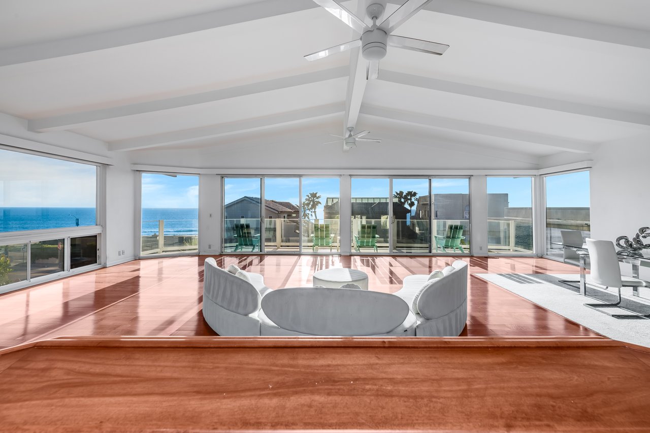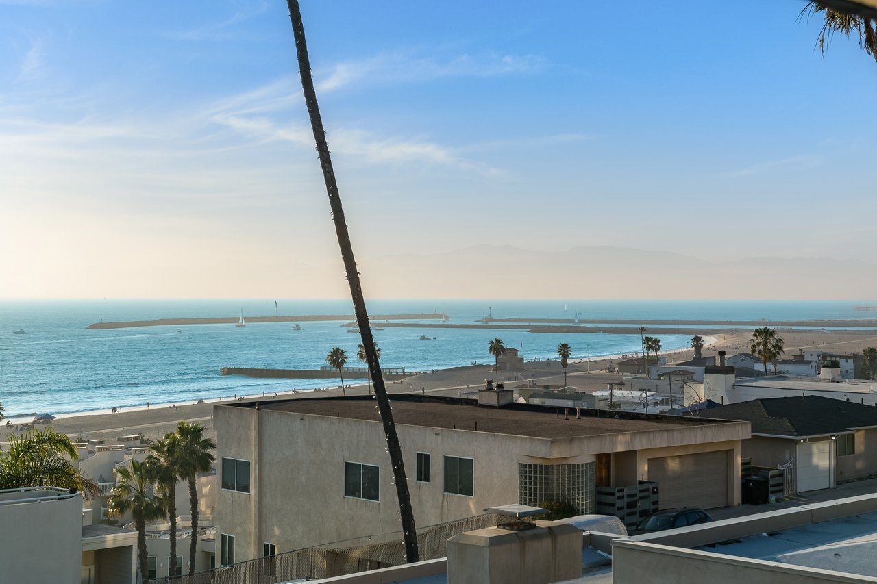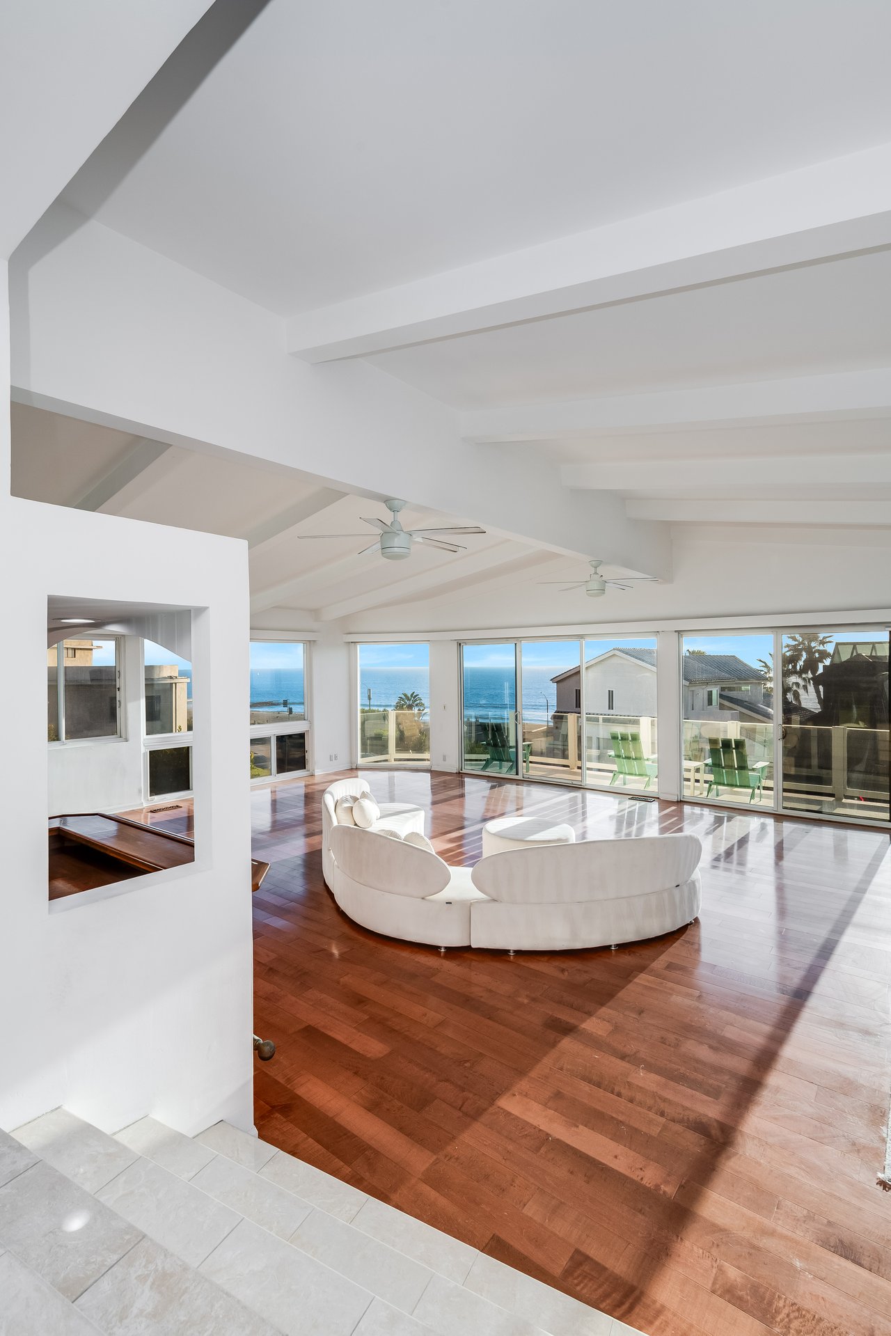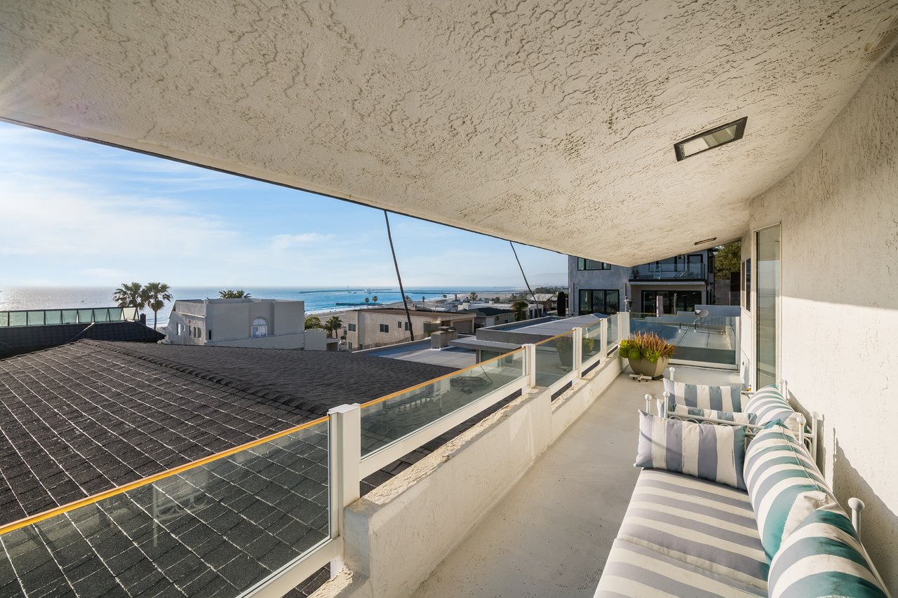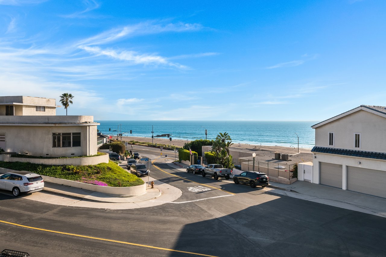 This exceptional modern beach residence captures some of the most breathtaking white-water ocean views in Playa del Rey, offering the ultimate expression of coastal luxury. Spanning multiple levels, the home features 6 bedrooms and 5 bathrooms, along with a private guest suite complete with its own entrance, living room, bedroom, and bath, ideal for visitors or extended stays. The main living level is designed for both grand entertaining and relaxed everyday living, showcasing an expansive open-concept living and dining area framed by a dramatic wall of sliding glass doors that seamlessly bring the ocean indoors. Vaulted ceilings and abundant natural light enhance the space, while an elegant built-in bar adds a refined touch for entertaining. The adjacent gourmet kitchen is beautifully appointed with granite countertops, white custom cabinetry, a spacious butler's pantry, and a charming breakfast area, all complemented by stunning ocean views. This level also includes a comfortable family room and three generously sized bedrooms with well-appointed baths. A spacious laundry room with granite countertops and a sink adds convenience and functionality. The upper level is dedicated to a spectacular primary suite retreat, featuring a fireplace, walls of glass opening to a private balcony, and sweeping unobstructed ocean views. The luxurious en-suite primary bath offers double vanities, a jacuzzi tub, and additional views. On the lower level, a two-car garage with abundant storage is accompanied by a versatile bonus room and bath currently set up as a gym. With expansive living areas, seamless indoor-outdoor flow, and extraordinary coastal vistas throughout, the residence presents a rare opportunity to reimagine and elevate a home of this scale and setting into a truly exceptional coastal retreat.