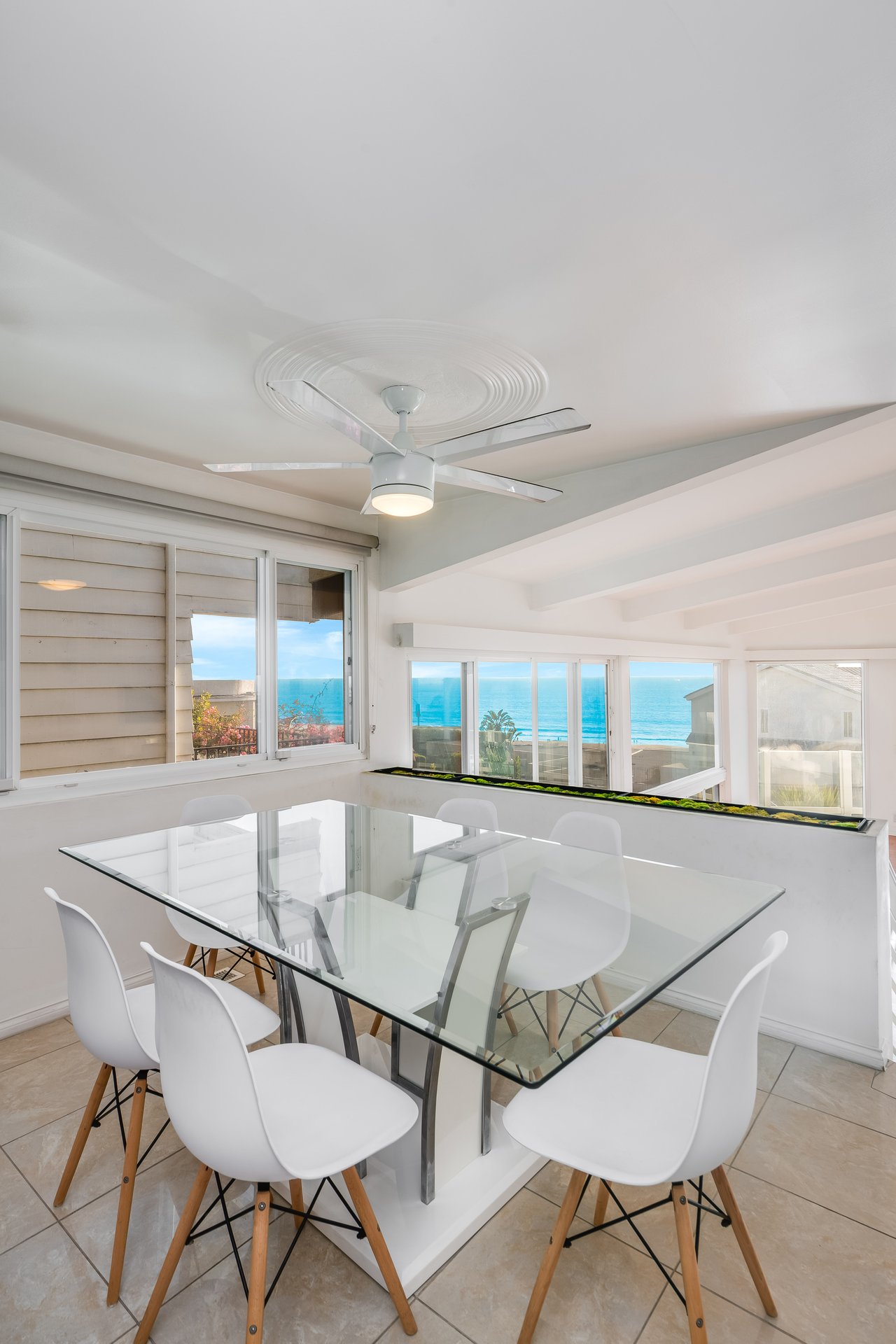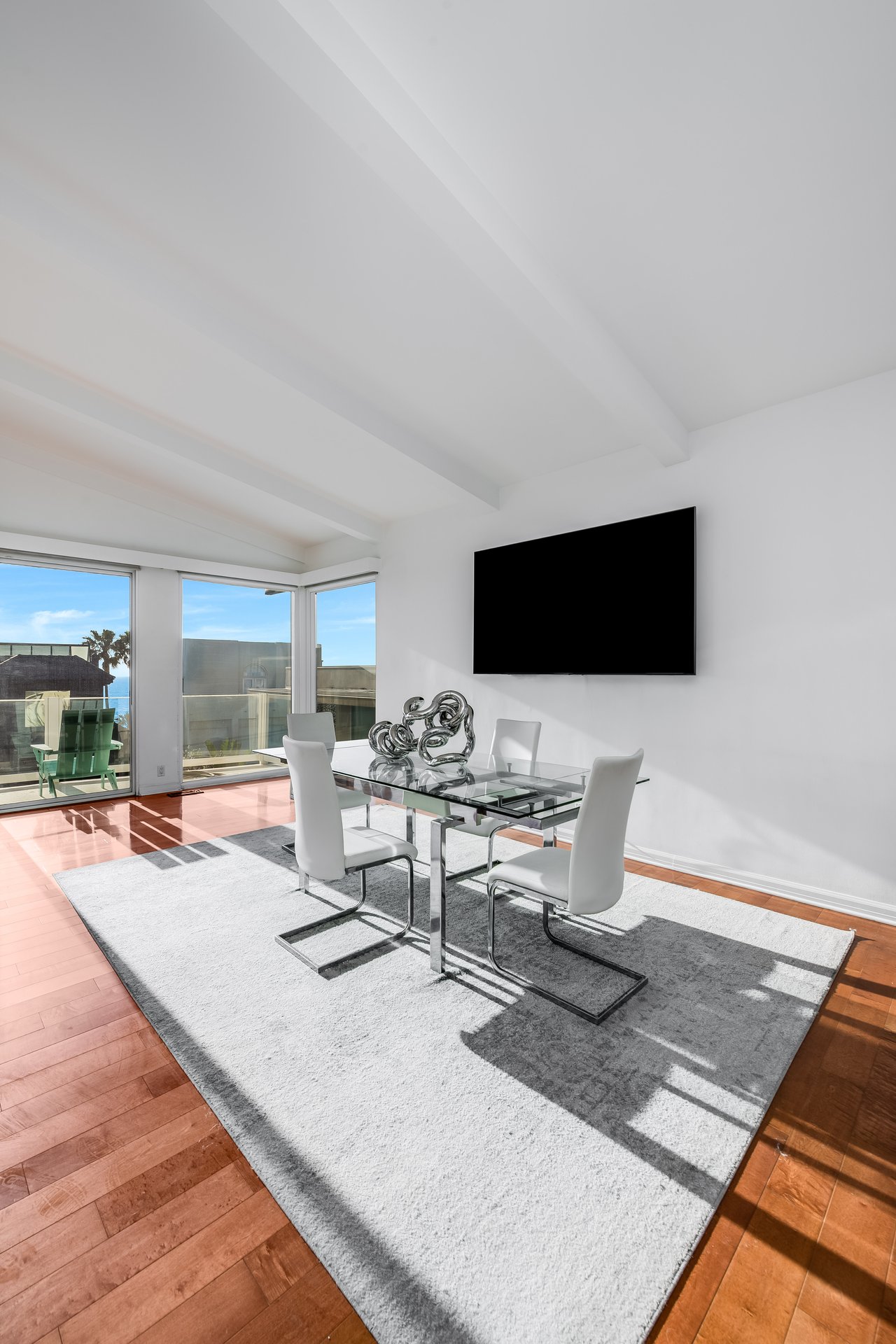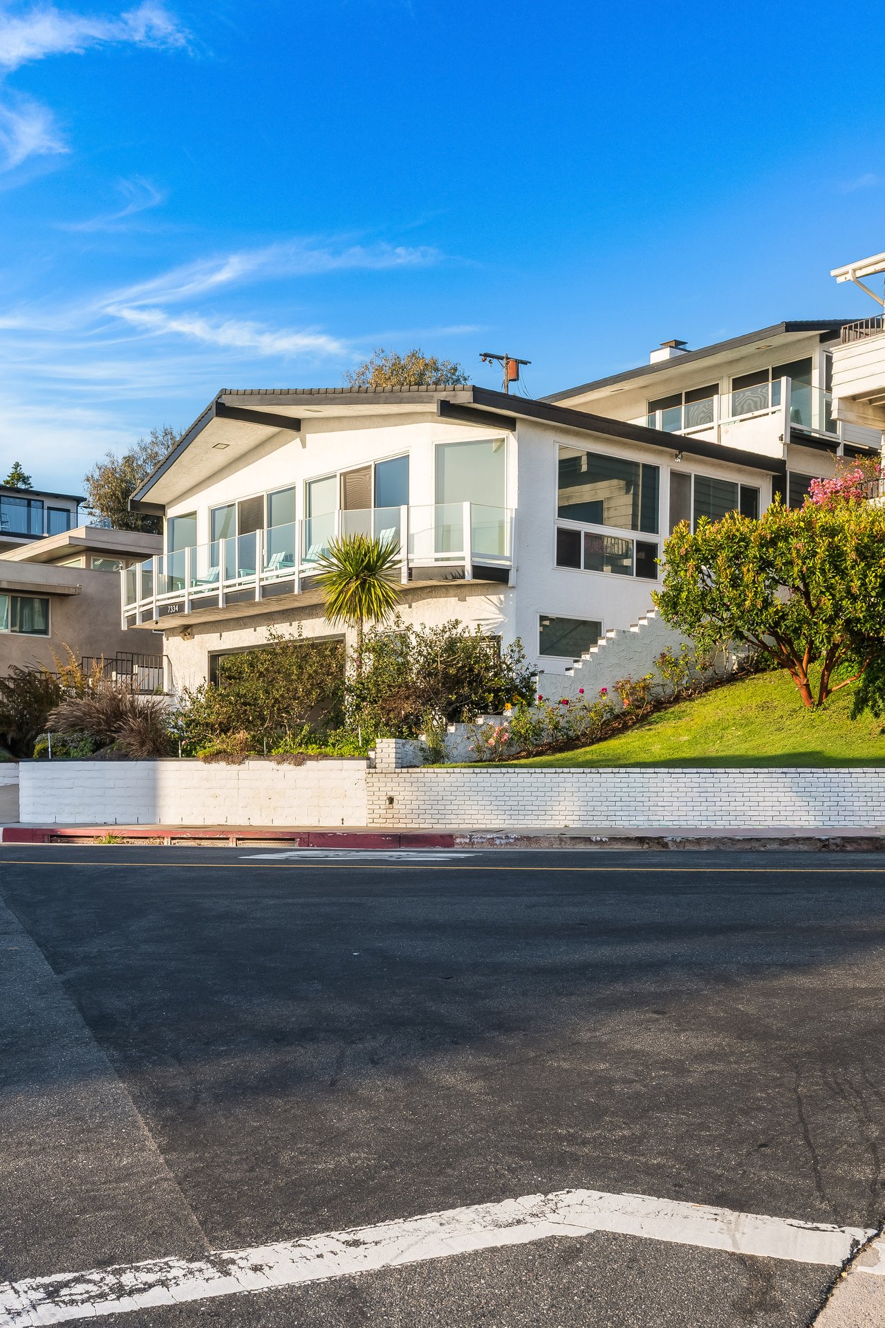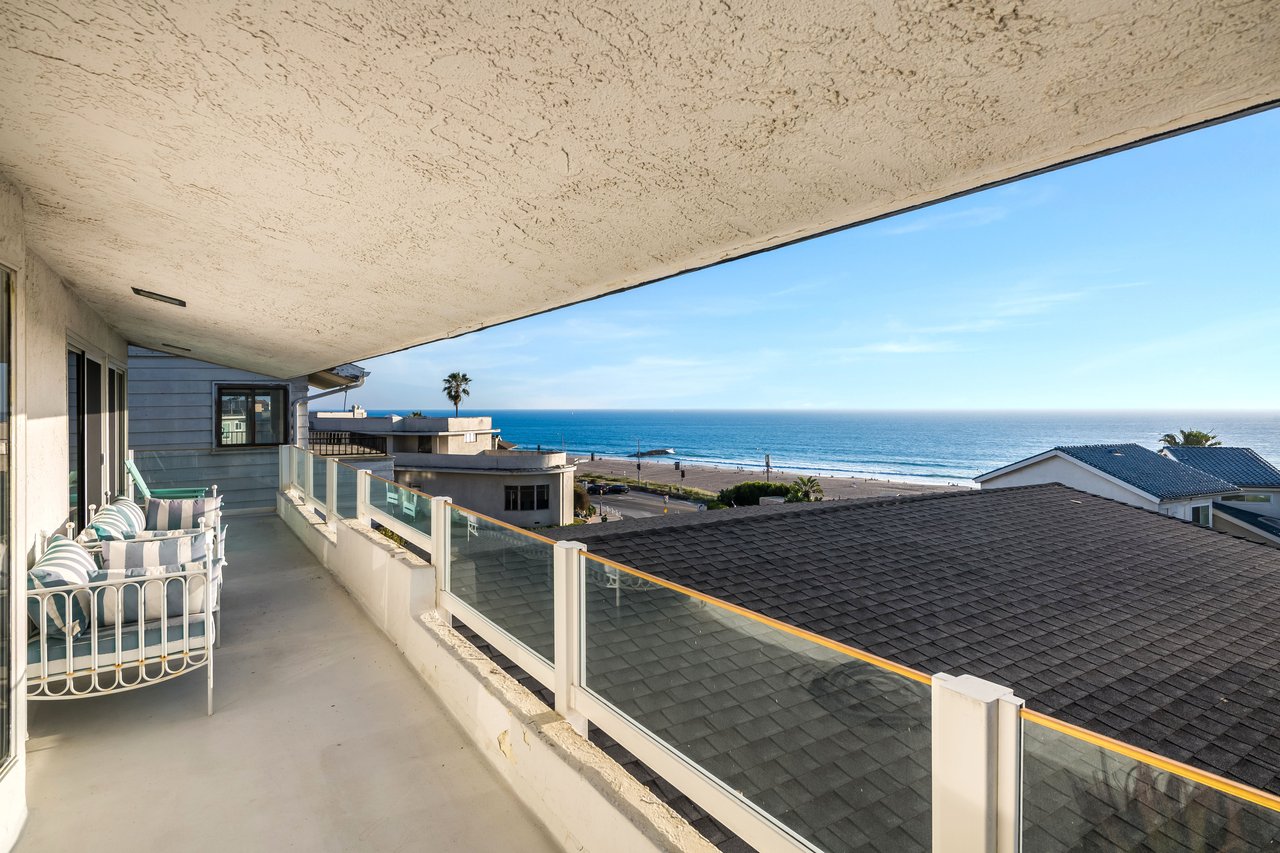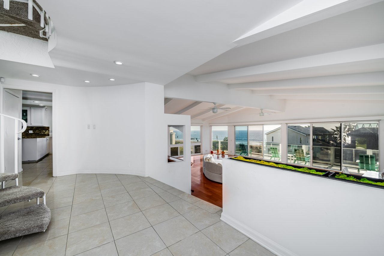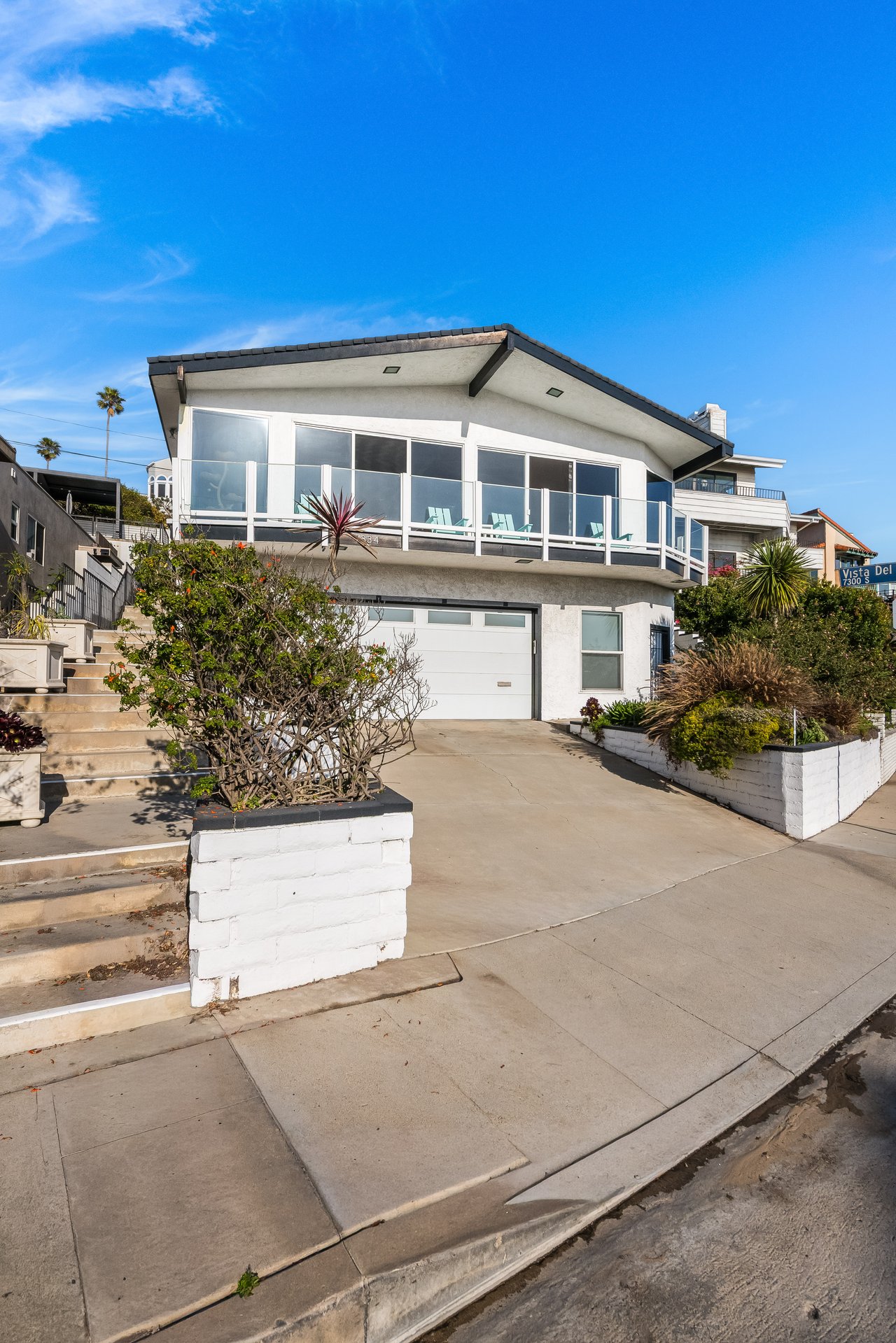 This exceptional modern beach residence captures some of the most breathtaking white-water ocean views in Playa del Rey, offering the ultimate expression of coastal luxury. Spanning multiple levels, the home features 6 bedrooms and 5 bathrooms, along with a private guest suite complete with its own entrance, living room, bedroom, and bath, ideal for visitors or extended stays. The main living level is designed for both grand entertaining and relaxed everyday living, showcasing an expansive open-concept living and dining area framed by a dramatic wall of sliding glass doors that seamlessly bring the ocean indoors. Vaulted ceilings and abundant natural light enhance the space, while an elegant built-in bar adds a refined touch for entertaining. The adjacent gourmet kitchen is beautifully appointed with granite countertops, white custom cabinetry, a spacious butler's pantry, and a charming breakfast area, all complemented by stunning ocean views. This level also includes a comfortable family room and three generously sized bedrooms with well-appointed baths. A spacious laundry room with granite countertops and a sink adds convenience and functionality. The upper level is dedicated to a spectacular primary suite retreat, featuring a fireplace, walls of glass opening to a private balcony, and sweeping unobstructed ocean views. The luxurious en-suite primary bath offers double vanities, a jacuzzi tub, and additional views. On the lower level, a two-car garage with abundant storage is accompanied by a versatile bonus room and bath currently set up as a gym. With expansive living areas, seamless indoor-outdoor flow, and extraordinary coastal vistas throughout, the residence presents a rare opportunity to reimagine and elevate a home of this scale and setting into a truly exceptional coastal retreat.
