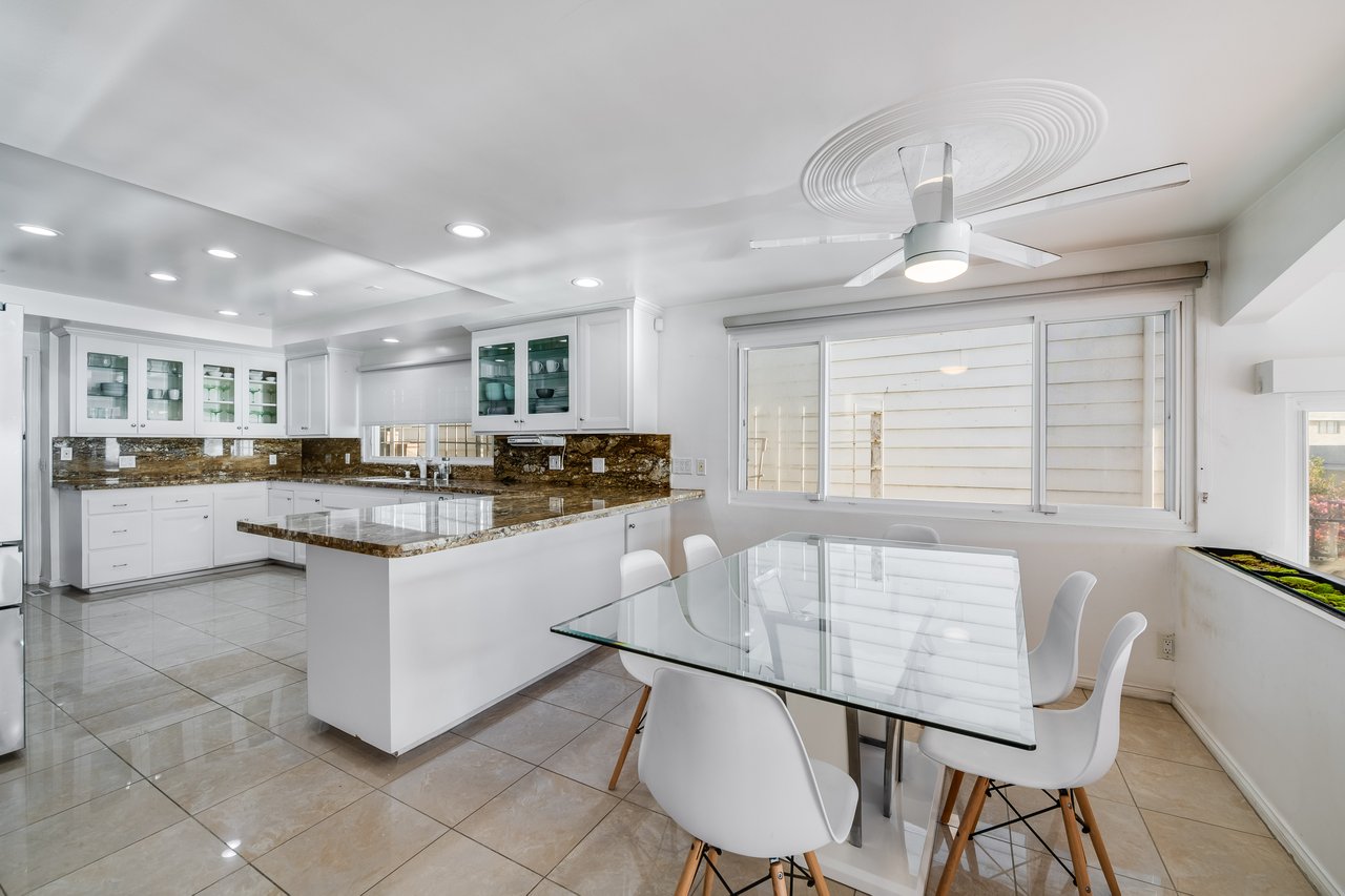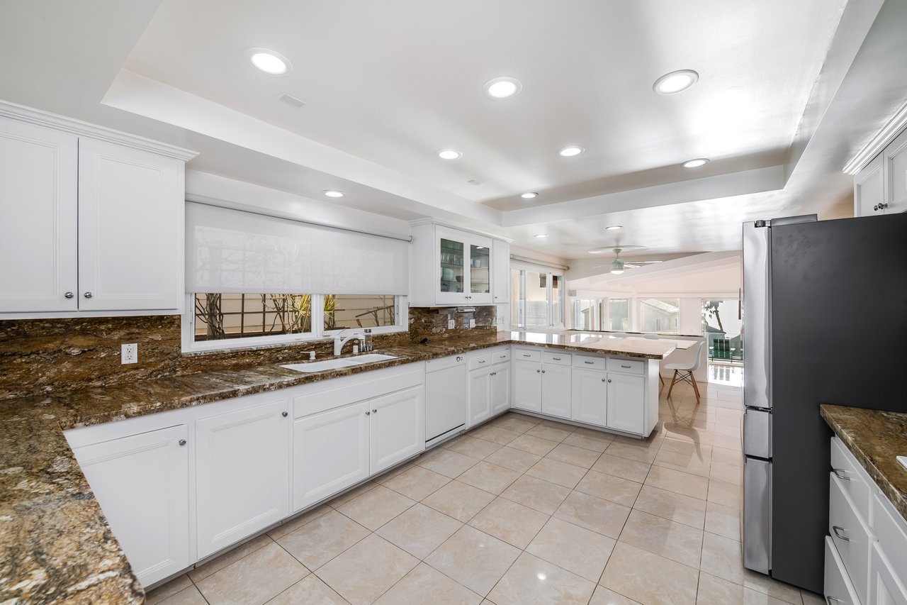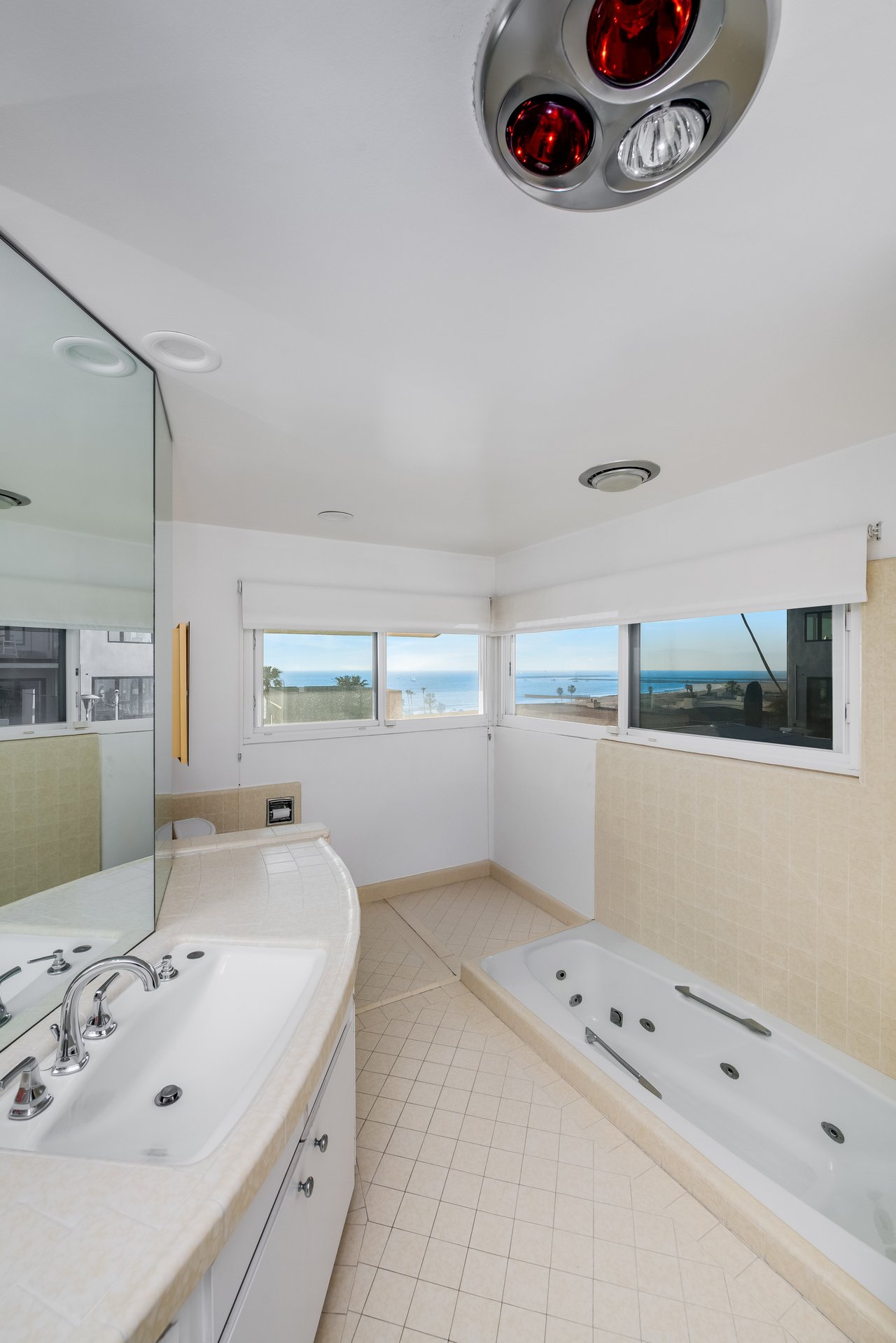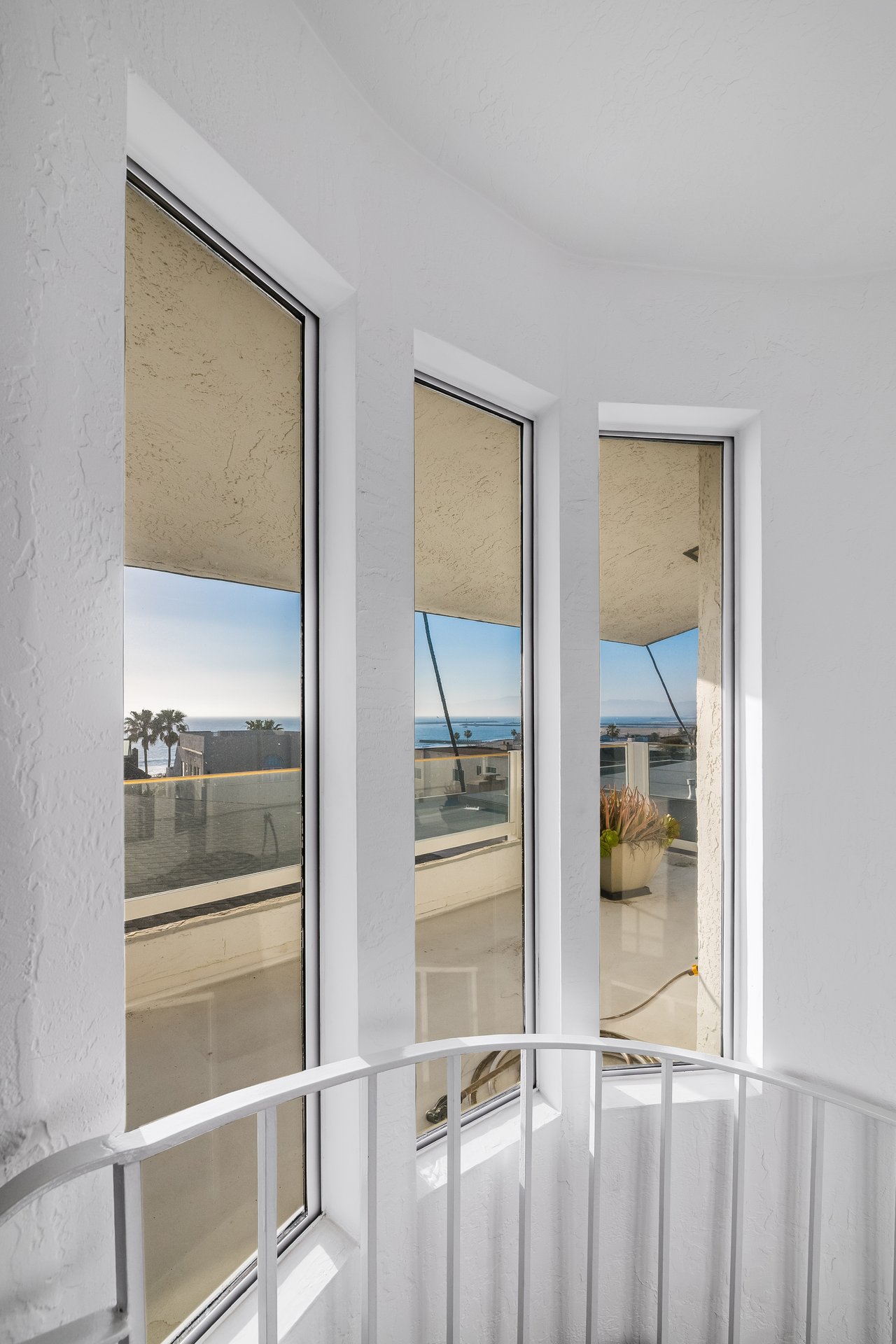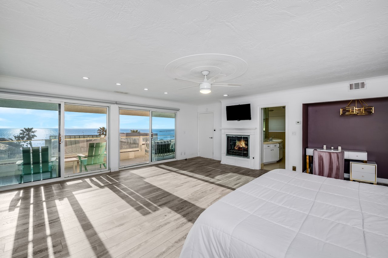 This exceptional modern beach residence captures some of the most breathtaking white-water ocean views in Playa del Rey, offering the ultimate expression of coastal luxury. Spanning multiple levels, the home features 6 bedrooms and 5 bathrooms, along with a private guest suite complete with its own entrance, living room, bedroom, and bath, ideal for visitors or extended stays. The main living level is designed for both grand entertaining and relaxed everyday living, showcasing an expansive open-concept living and dining area framed by a dramatic wall of sliding glass doors that seamlessly bring the ocean indoors. Vaulted ceilings and abundant natural light enhance the space, while an elegant built-in bar adds a refined touch for entertaining. The adjacent gourmet kitchen is beautifully appointed with granite countertops, white custom cabinetry, a spacious butler's pantry, and a charming breakfast area, all complemented by stunning ocean views. This level also includes a comfortable family room and three generously sized bedrooms with well-appointed baths. A spacious laundry room with granite countertops and a sink adds convenience and functionality. The upper level is dedicated to a spectacular primary suite retreat, featuring a fireplace, walls of glass opening to a private balcony, and sweeping unobstructed ocean views. The luxurious en-suite primary bath offers double vanities, a jacuzzi tub, and additional views. On the lower level, a two-car garage with abundant storage is accompanied by a versatile bonus room and bath currently set up as a gym. With expansive living areas, seamless indoor-outdoor flow, and extraordinary coastal vistas throughout, the residence presents a rare opportunity to reimagine and elevate a home of this scale and setting into a truly exceptional coastal retreat.