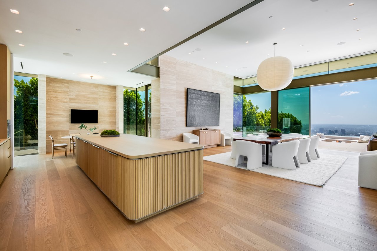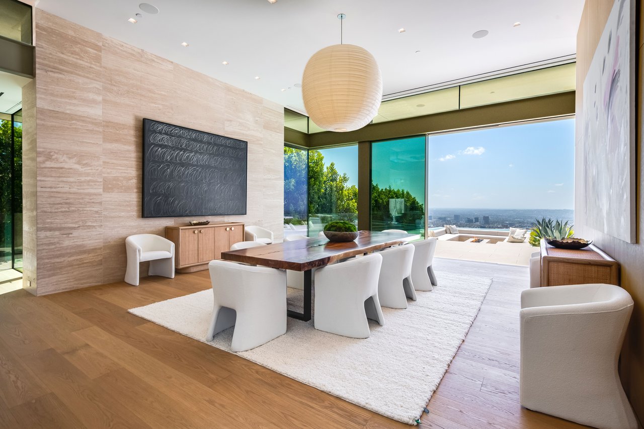 Indulge all of your senses in this brand-new Contemporary marvel located in the prestigious Bird Streets. Showcasing supreme quality with the finest materials, this estate embodies luxurious Los Angeles living and is the ultimate view estate with unobstructed jetliner vistas from Downtown Los Angeles to the Pacific Ocean. A masterful creation by Paul McClean architecture, built by Dugally Oberfeld, and interior design and finishes by Marmol Radziner, this home features every conceivable amenity. Spanning apx. 15,200 of living space with 5 bedrooms and 9 bathrooms, there is ample space for friends, family, staff, and entertaining. Offering privacy and security, a gated driveway leads to a subterranean 6-car garage. Enter into the walled and gated front courtyard desert oasis and cross the bridge spanning above the lower level pool. Equipped with state-of-the-art smart home technology and custom automated walls of glass that amplify the incredible views throughout. The main level offers a gorgeous living room with fireplace, spacious dining room, two powder rooms, "entertaining" kitchen with eat-in island and breakfast area, additional "prep" kitchen with Wolf and Subzero appliances, two powder rooms, two guest bedrooms suites, and the beautiful primary bedroom suite with walls of glass opening to the incredible views, custom walk-in closet, sumptuous marble bathroom and sauna. The living room, dining room, and primary bedroom flow into the main level exterior space featuring an expansive terrace, sunken firepit with built-in seating and wrap-around zero-edged pool and spa. Descend the floating staircase or take the elevator to the lower level which offers a spectacular entertainer's haven and wellness retreat. Features include a second pool with sunken firepit and built-in seating, huge family room with built-in bar and fireplace, glass wine display, game/billiard room, large covered patio with spa, theater/media room, gym, and wellness retreat with massage room, shower and sauna. Additional living space on the lower level includes two guest bedroom suites, powder room, and laundry room. Discover this ultimate hillside oasis just moments from the excitement of Sunset Blvd and the best of Los Angeles dining, shopping, entertainment, and nightlife. Lease available fully furnished.